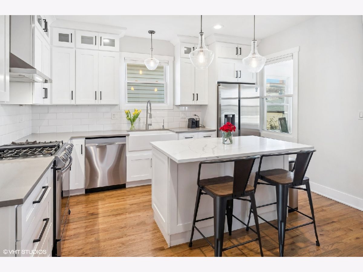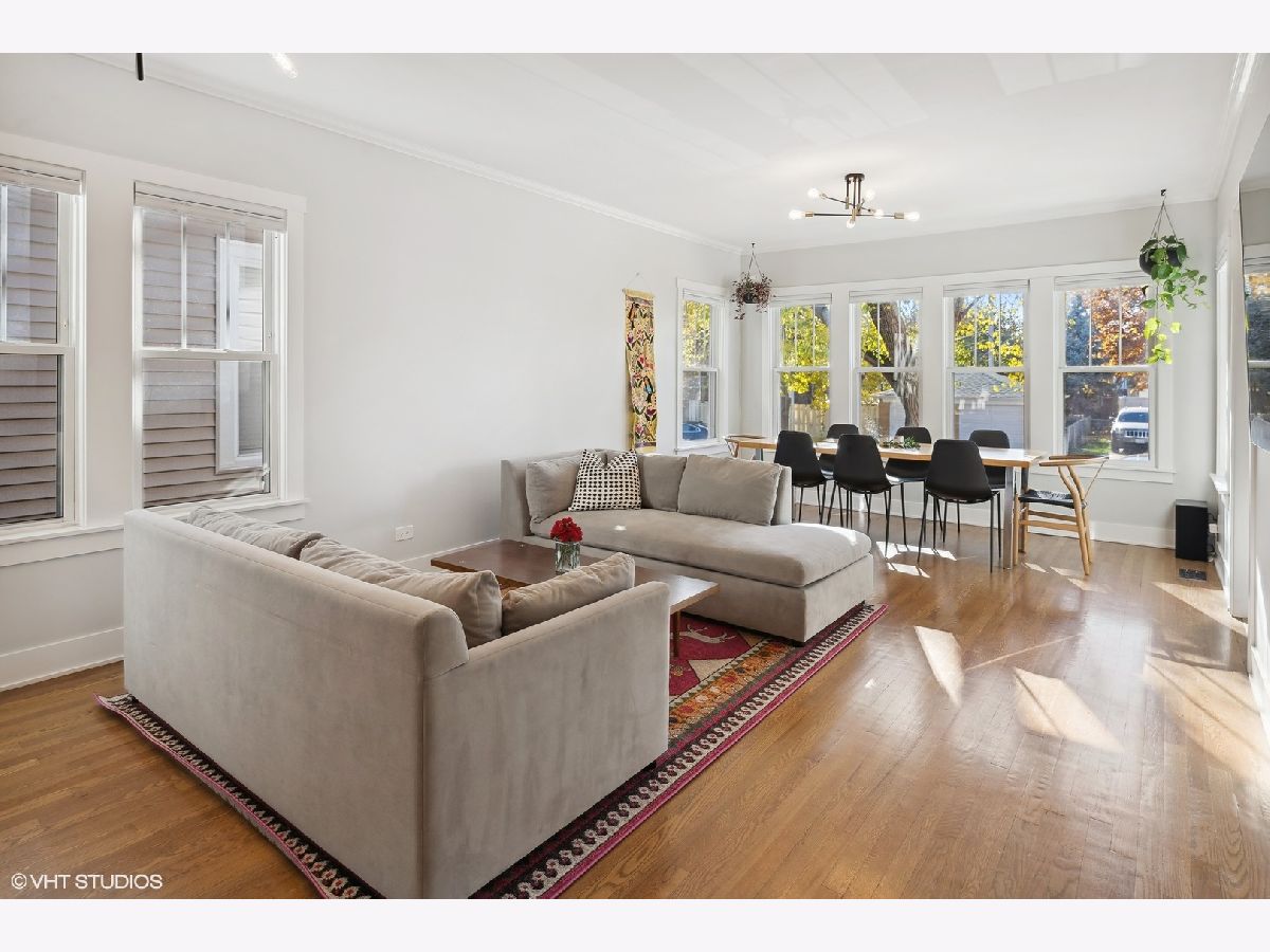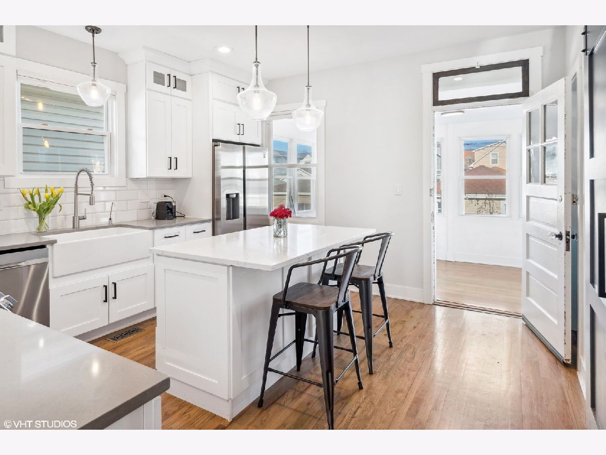 Welcome to this beautiful 5 bedroom/3 bath single-family home on a 30' EXTRA-WIDE lot in picturesque Portage Park! This bungalow was thoughtfully rehabbed in 2021 and is a perfect blend of modern amenities and timeless style. Charming curb appeal sets the stage for what awaits inside. Upon entering, you're met with beautifully refinished original oak floors and a massive combined living and dining room. South-facing windows flood the space with natural light. The bright and airy kitchen is a chef's delight with quartz countertops, extra-tall shaker cabinets, subway tile, farm sink, Samsung SmartThings appliances, motion-controlled faucet, and a separate pantry with dry bar for additional storage. Just off the kitchen, a stylish barn door leads to a versatile bedroom, playroom, or office. A generously sized second bedroom with a full bath, and a three-season room round out this level. Upstairs, the large primary bedroom is a retreat with two huge walk-in closets. A large second bedroom also boasts a walk-in closet. The luxurious shared bath features a double vanity and spa-like double shower. The lower level has high ceilings, a generous rec room for play or movie nights, and a 5th bedroom with a full bath - perfect for guests or as a home office. The full laundry room includes a utility sink and even more storage. An additional bonus space can be customized as a home gym or easily converted into an extra bedroom. Step outside to relax and entertain in the large landscaped backyard with deck and brand-new jacuzzi tub. Among the home's many upgrades, additional insulation was added in 2022 for energy efficiency, and a new whole home water filtration system and sewer backup prevention system were added in 2023. This property also includes a 2-car garage with new garage pad for added convenience. Located in vibrant Portage Park, this residence is one block from Gray Elementary and a stone's throw from the soon-to-be redeveloped Six Corners District, grocery stores, restaurants, multiple parks, community pool, multiple bus lines, metra, and expressway. This fantastic home truly offers a lifestyle of convenience and enjoyment!
