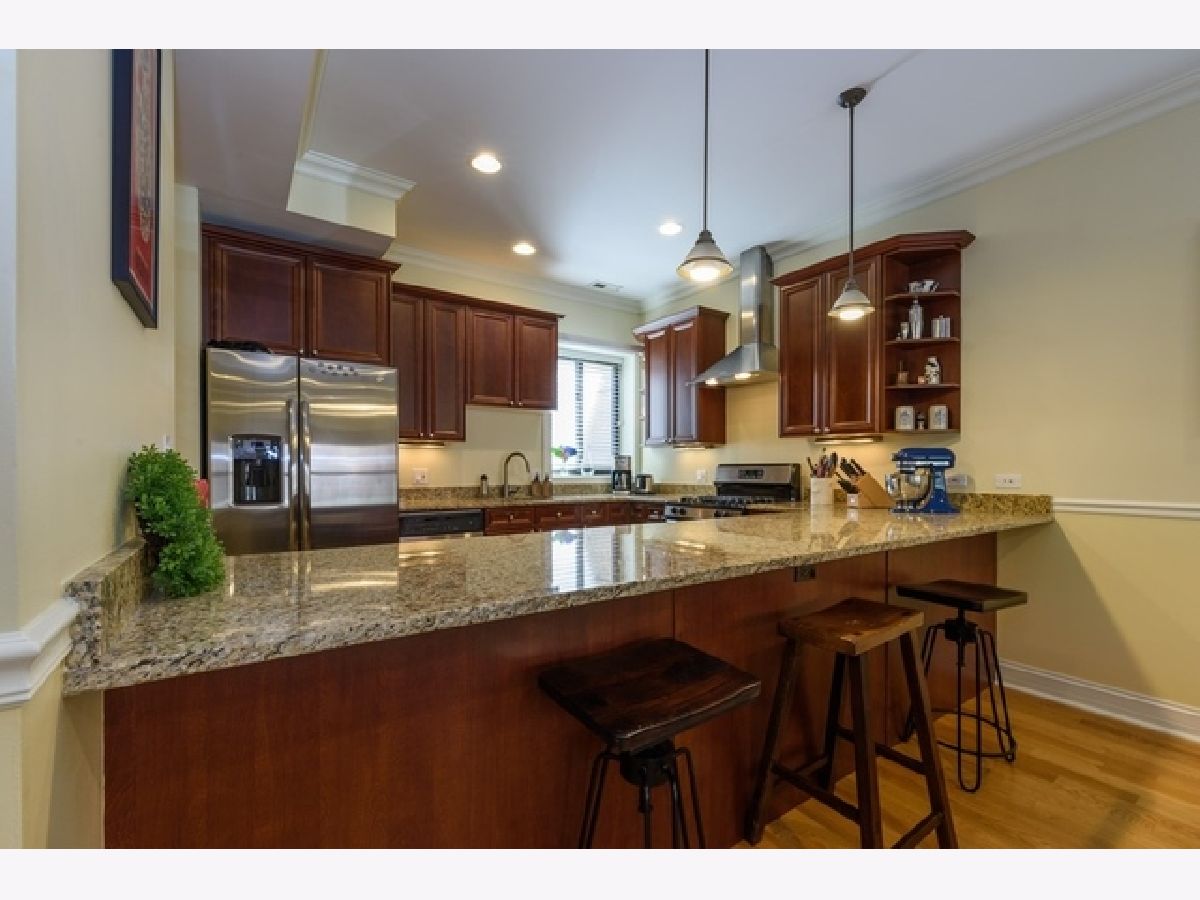 This is it! 5 star condo in handsome Edgewater 10-flat. This 2 bedroom, 2 bath home features hardwood floors throughout, exposed brick walls, high ceilings, custom mill-work including crown and chair rail moldings, solid core doors and side-by-side laundry. The enormous kitchen boasts dark cherry cabinets with under-mounted lights, stainless steel appliances, a wine refrigerator, and endless granite counters and breakfast bar for your entertaining ease. The expansive living room and dining room can easily accommodate a large formal dining room set and over-sized furniture. The spacious master suite includes a huge organized walk-in closet, adjacent bath with a large travertine shower and double sink vanity. Grill and relax on the front deck overlooking the lovely landscaped gardens. One parking space and storage is included, and can be accessed via the nicest common areas you will see in a vintage building. Fabulous location is one block to the Berwyn L stop and Jewel and a few blocks to Mariano's, Foster Beach and all the shops and restaurants of Andersonville.