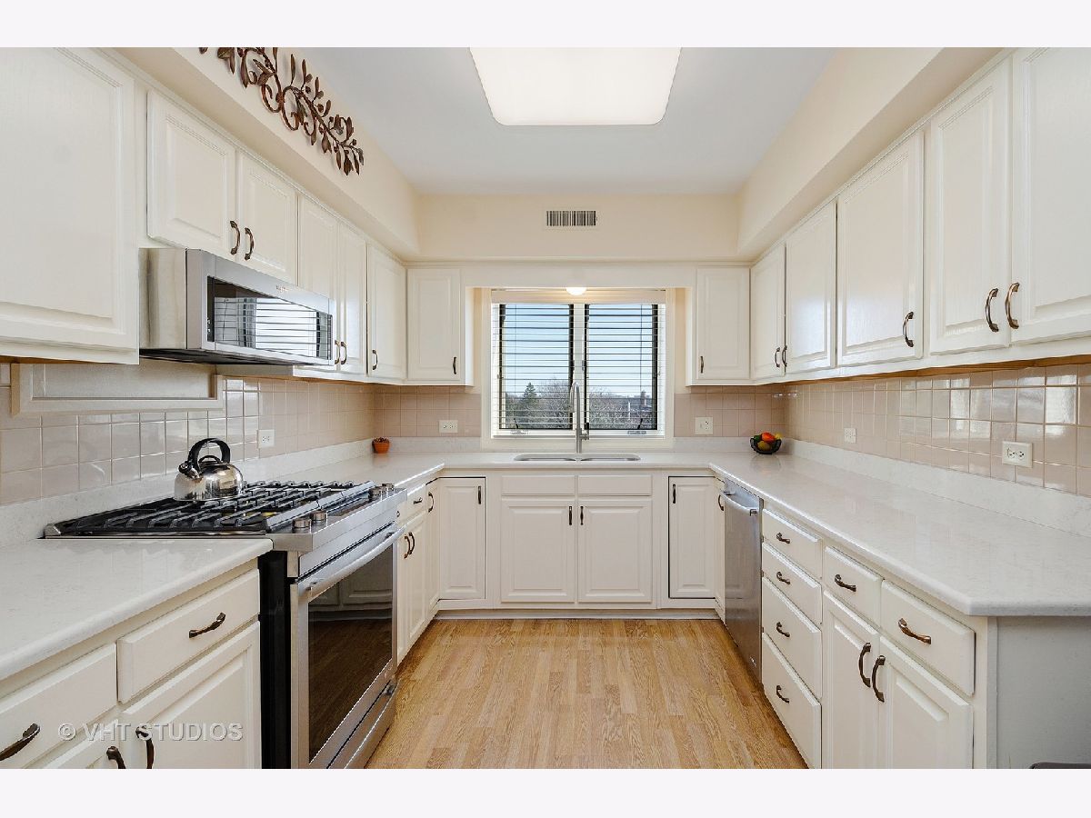 Impeccably maintained and rarely available Glenmoor model at beautiful Rivers Edge of Sauganash. Fantastic corner unit that is the largest 2 bedroom 2 bath in the complex. Top floor unit has beautiful unobstructed views from every window. This unit offers new HVAC & A/C condenser, new roof, & newly tuck pointed. In addition all appliances were replaced just a few years ago. Eat-in Kitchen has Quartz countertops and JennAir appliances. Separate laundry room with LG front loading washer/dryer with an additional mini washer. Closets are all Elfa organized, unit has flexicore heated floors. All the windows & sliding glass doors are aluminum clad. Unit includes one indoor parking space and storage unit. Gas as well as Basic cable included in assessments. Walking distance to Jewel-Osco, buses, Gompers park, bike and walking trails & I-94.