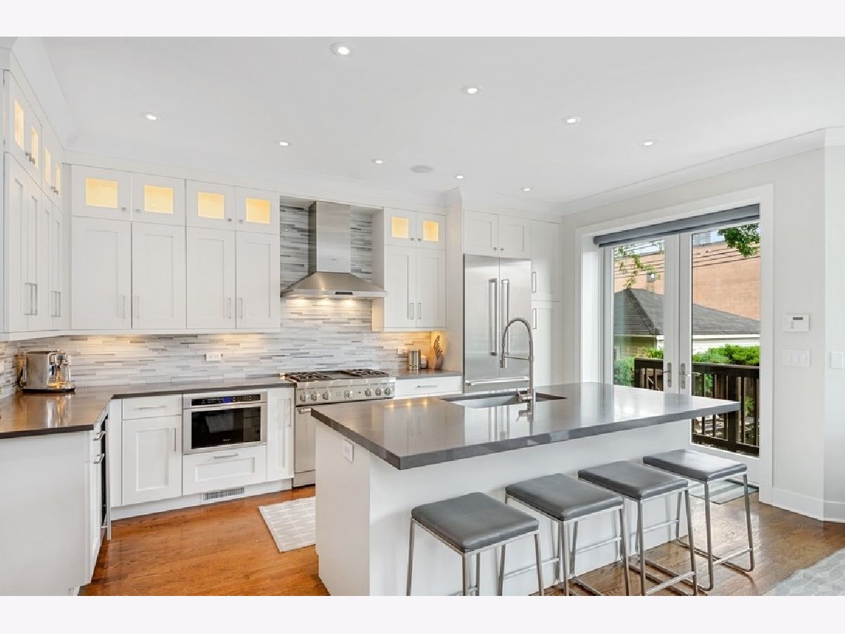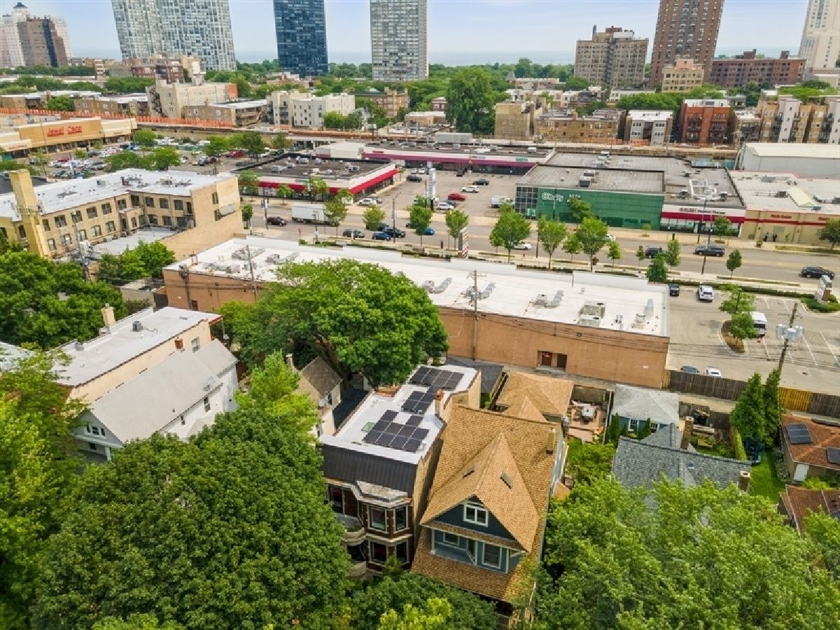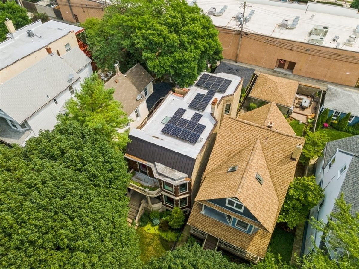 Lakewood Balmoral Historic District offers this Absolutely stunning hi tech 6 year old gut rehab with 3 bedrooms and an office up and 2 bedrooms in the dug out lower level plus 3.1 baths. Solar panels provide 75% of the power needed for the home as well as the 220v ChargePoint electric car charger in the 2-car garage. Steel beam construction on the 1st and 2nd levels allow interior walls to be optional. Elegant floor to ceiling stone fireplace anchors the living room. Open kitchen/family room has generous Quartz counters, stainless Uline wine fridge and Thermador appliances. Glass double doors lead to a deck and patio with an outdoor Masterforge kitchen, and beautiful landscaping. All power lines are buried and outdoor speakers are nestled in the ground around the patio. The lower level holds an entertainment room, 156 bottle wine room, full bath and large bedroom with walk in closet. Smaller 5th bedroom used as a gym. 300amp service, 2019 dual zoned Lennox HVAC and newer water heater. Insulated with spray foam, and waterproofed with a drain tile system, back flow valve, sump and ejector pump, this lower level will remain warm and dry! Dramatic 2nd floor skylighted gallery opens to 3 generous bedrooms including a huge primary suite with walk in closet and soundproof Quiet Rock walls separating the attached bath featuring a soaking tub, separate steam shower and WC, plus luxurious heated floors. Indirect lighting outlines the hallway to your second full bath, and an office or extra bedroom, side by side Electrolux washer/dryer, and second HVAC. Smart home digital systems control light, Sonos music, and security systems. Tear off roof in 2014-15 is silvered, modified bitumen, with decorative steel panels facing the street. All plumbing was replaced and 300 amp electric service installed with all new wire throughout the home. IMPORTANT the solar company, SunPower, credits the energy savings each month to Com Ed. Average electric cost per month is $53.00 and annually is $636. Seller will supply documentation. Ideal location between the lakefront beaches, bike path, and Andersonville shops, restaurants and entertainment. Five minute walk to the red line el with express buses just beyond. Peirce elementary school district, with wonderful private schools close by. The neighborhood's motto is 'Historically Friendly' and offers lots of activities for all ages to meet neighbors and enjoy this special place!