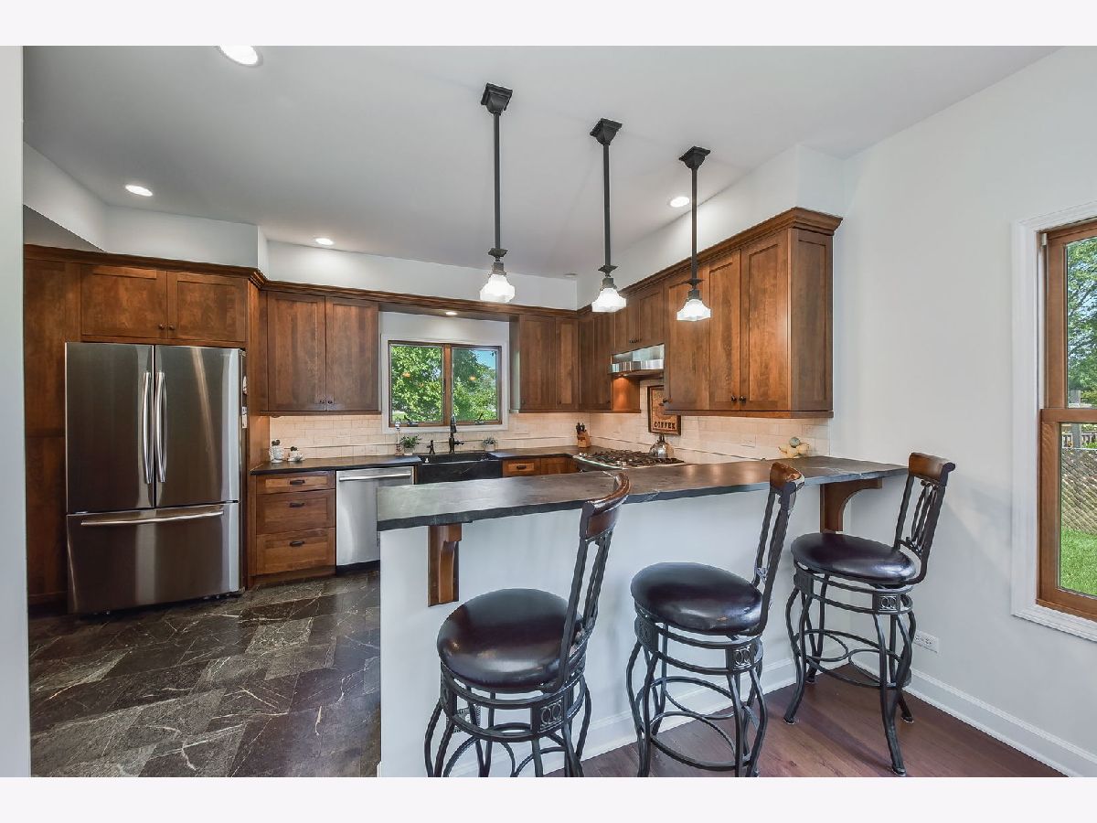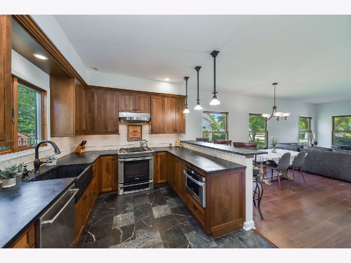 Welcome Home to 523 Parkside featuring 4 Bedrooms, 2 1/2 bathrooms & a fabulous sun room overlooking a large open area that will never be built on! For the buyer who loves to entertain and who appreciates high-end custom features you won't find in other homes, this is the one! The kitchen was completely redone, walls removed, opened up, and completed with a designer who created no wasted space, custom cabinetry throughout, soapstone countertops and floors, (heated floor in the kitchen area!) Tons of storage, a fabulous breakfast bar with pendant lighting, stainless steel appliances, a custom window seat with storage, built-in pantry with roll-out shelves, and more! Stunning light fixtures, hand-scraped hickory hardwood floors that can be resanded in your favorite stain, all new paint, and new carpet on the 2nd level. The primary bedroom features an en-suite with a second vanity area in the private bathroom. The huge walk-in closet is awesome! Marvin-clad windows, furnace & a/c 2015, attractive architectural roof shingle, updated siding, Cloplay garage door, black aluminum fence with an opening to the back to access open green space! Rare find, fun in the summer, and sledding in the winter! Two-blocks to Glenbard North High School, 3 blocks to Cloverdale Elementary School, and close to the Coral Cove waterpark. See the list of updates and upgrades, the buyer wins on this one! Welcome home to easy living- no need to spend time working on the house on the weekends, this one is ready to just move in and enjoy! Welcome home!