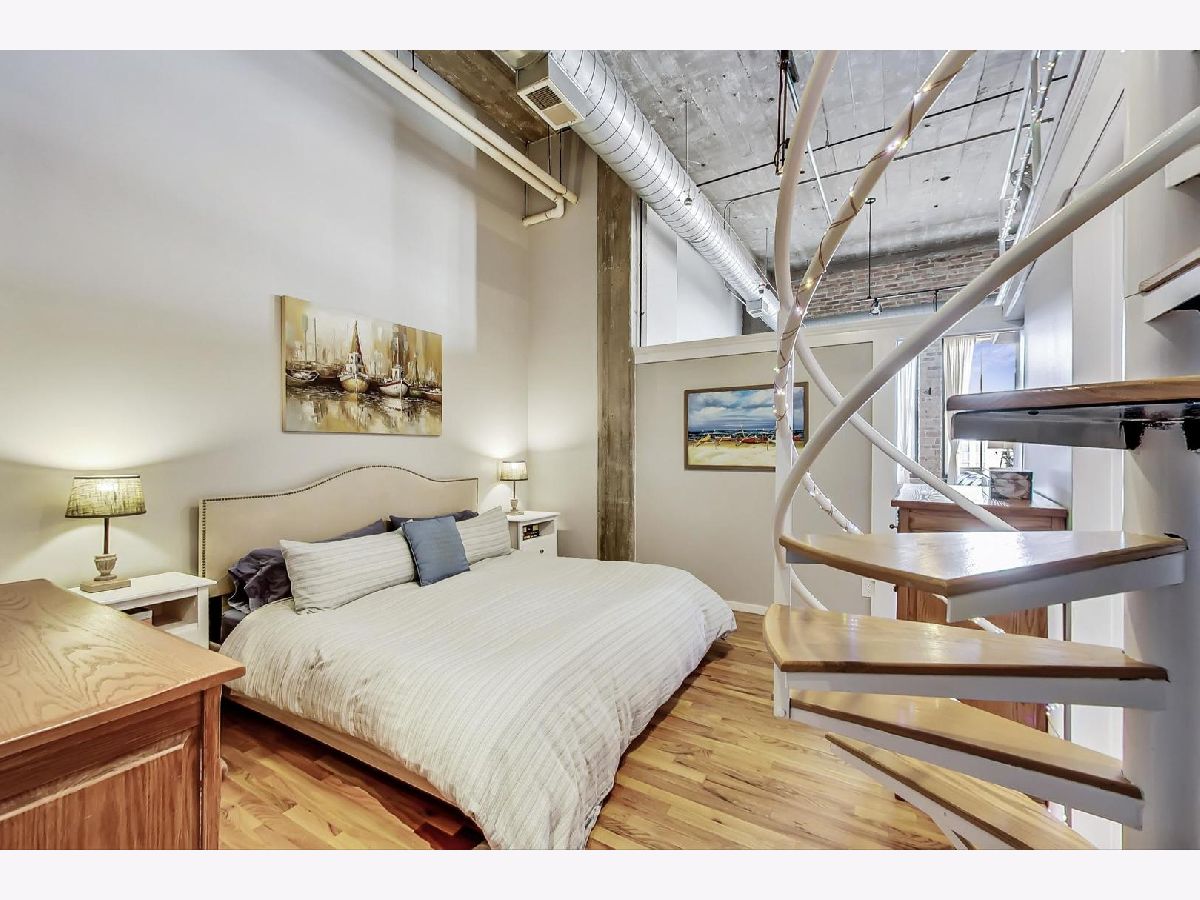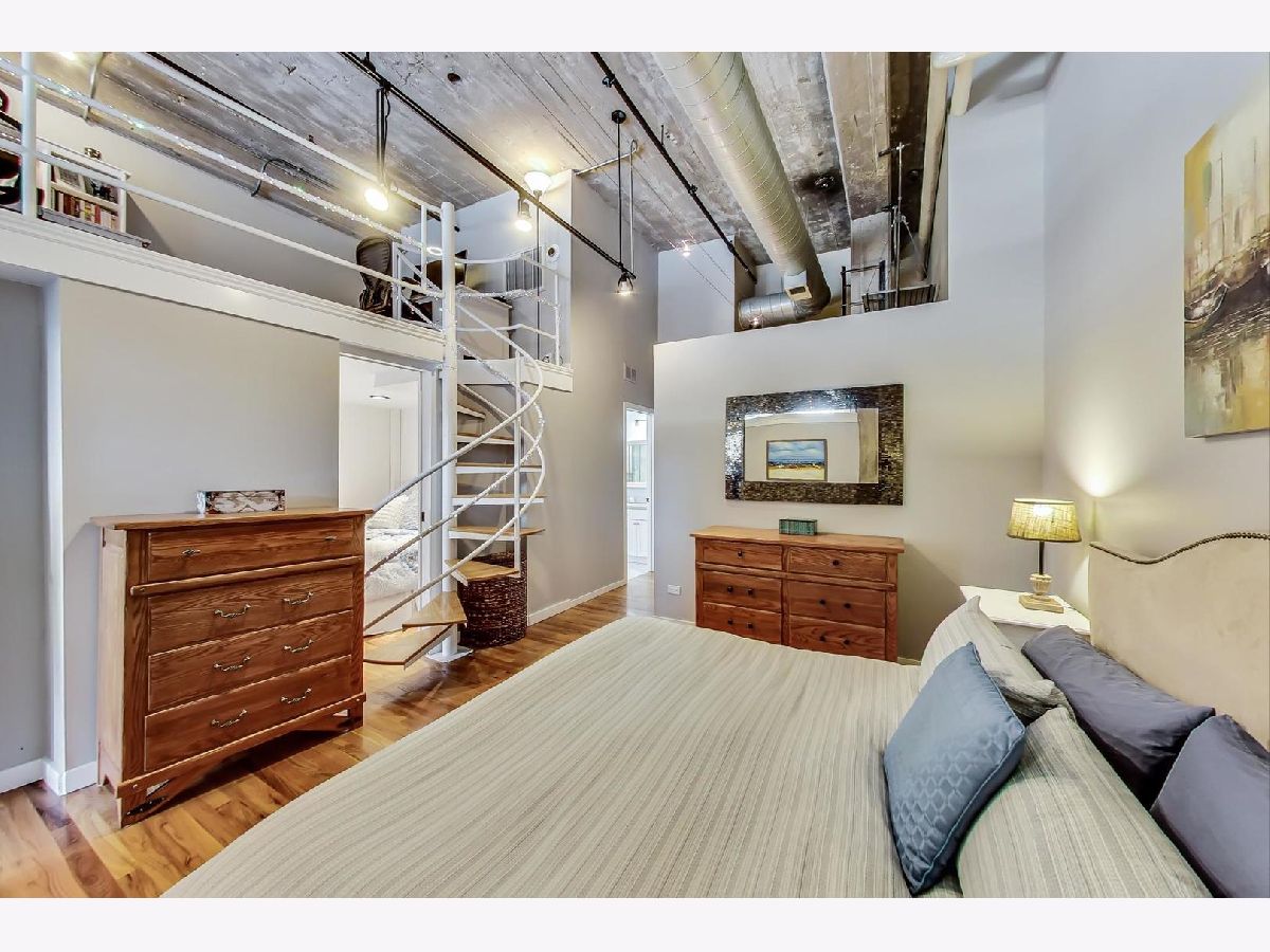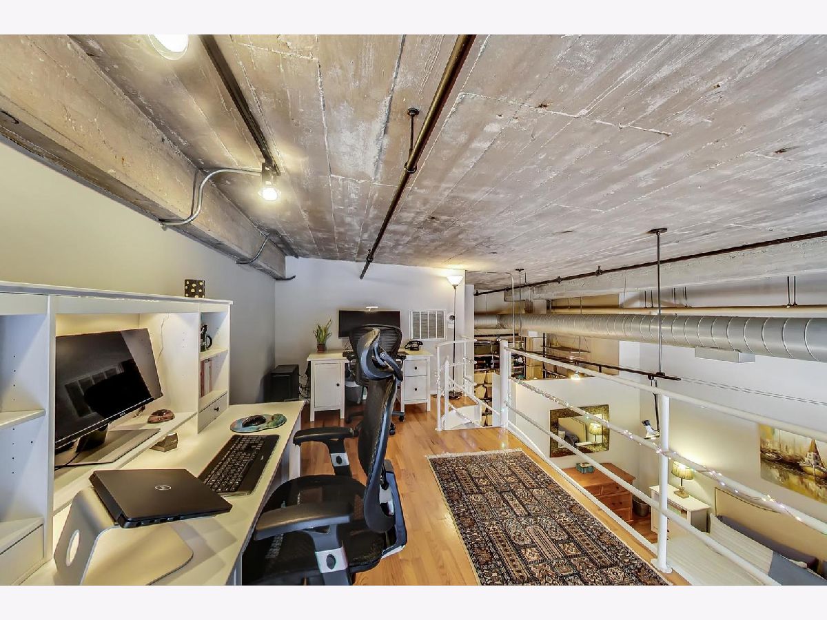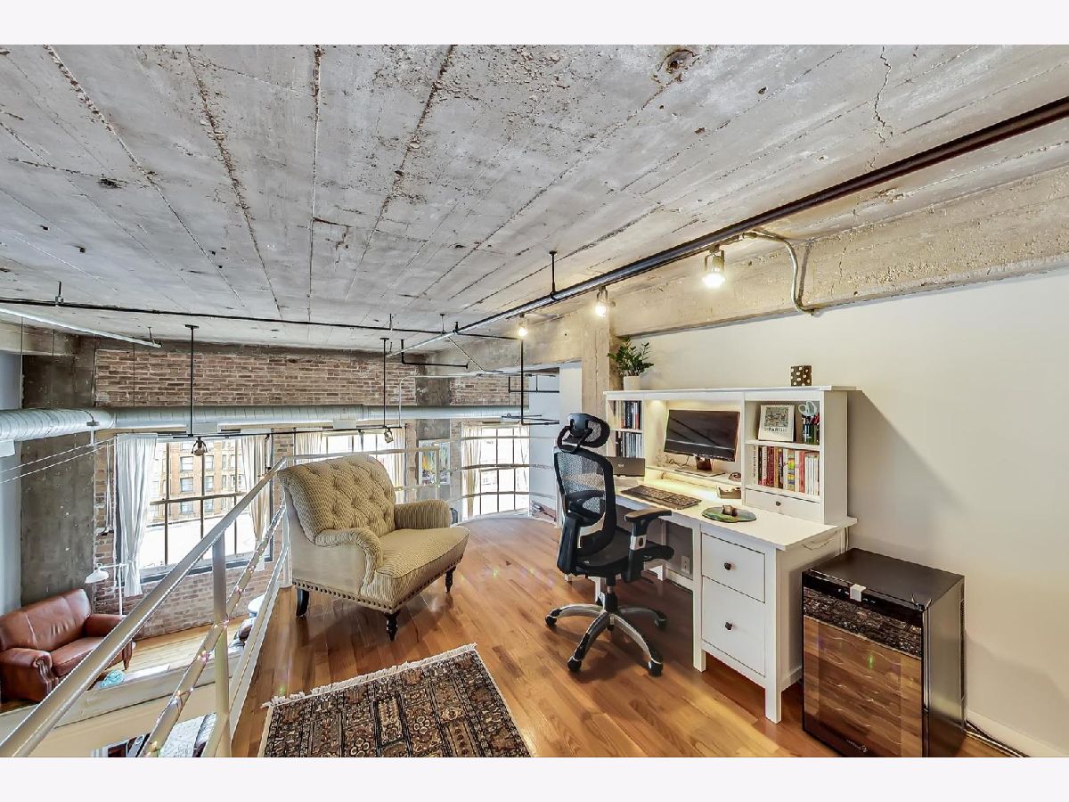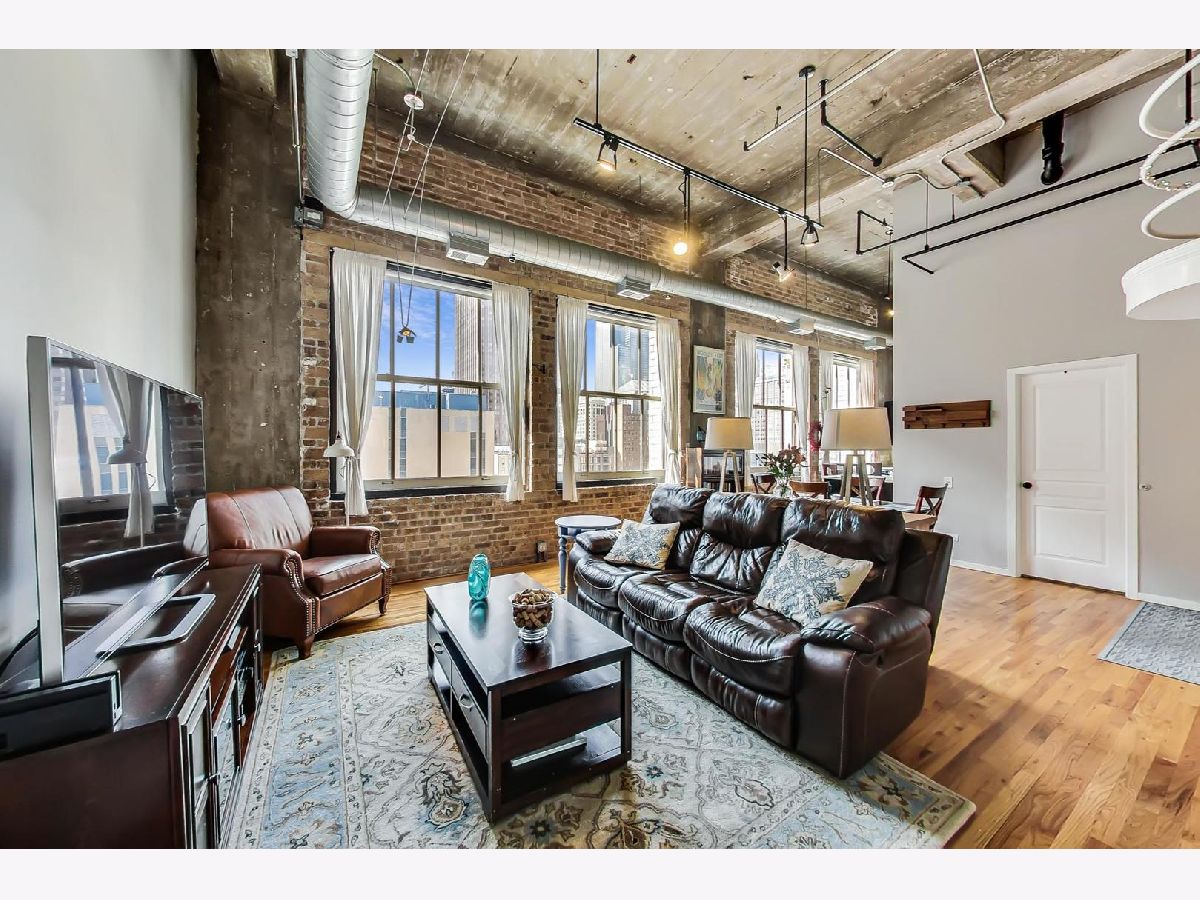 Soak in the views of the city in this versatile 1 bedroom, 1.5 bath loft in Printer's Row! Unique open floor plan flooded with light with soaring ceiling heights, hardwood floors throughout, and exposed brick. Large living/dining room with gas fireplace. Spacious primary suite with huge walk-in closet featuring built-in shelving system. Updated luxurious ensuite bath with soaking tub, double vanity, and separate glass enclosed shower. First floor den perfect as a guest bedroom or office space. Upstairs, enjoy working from home on the loft or create a tranquil retreat. The possibilities are endless! Great building with exercise room, bike storage, and a lovely common roof top deck with stunning views of Chicago. 1 garage rental space can be transferred. In-unit laundry. Close to Starbucks, Grant Park, the library, theaters, dining, and all that downtown Chicago has to offer.