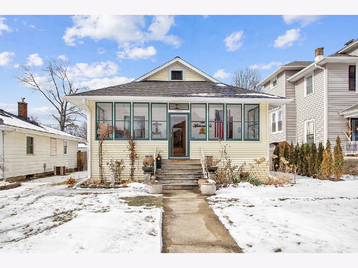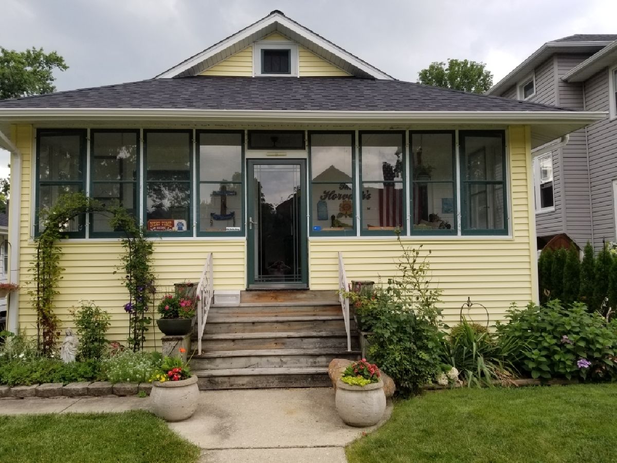 Beautifully maintained 2br classic bungalow with many updates including storm door, durable bamboo floors on enclosed front porch, energy efficient windows, roof, house wrap, siding, fascia, soffit and gutters. Refinished hardwood floors, beautiful kitchen ceiling, renovated main bath, sump with battery backup, detached garage. Full basement with 2nd full bath and tons of storage, glass block windows, electric baseboard heat in partially finished area. City replaced water service line to home in 2021.