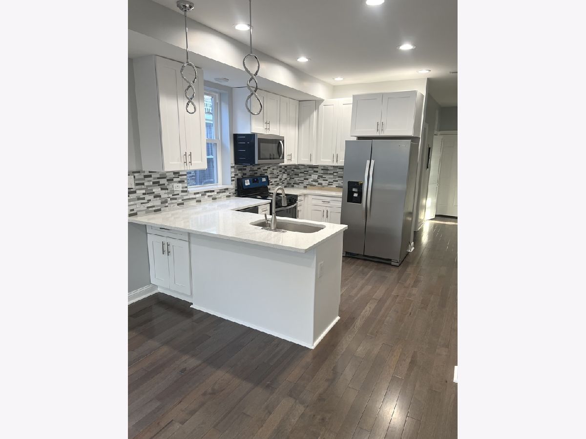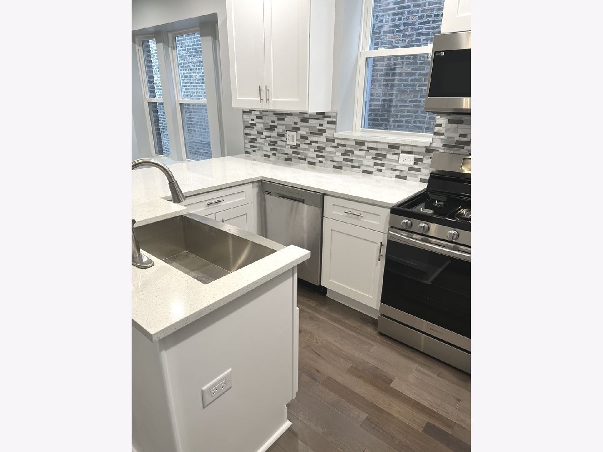 Don't miss this opportunity to call a rarely-available, historic Chicago 1900-built greystone your home! No expense was spared and this is reflected in the details and finishes. The first floor 2 bdrm unit is duplexed to the basement to offer around 2200 square feet of living space and a total of FOUR bedrooms with 2 gorgeous bathrooms, BOTH featuring whirlpool tubs and high-end finishes!!! Brought to modern standards by a complete gut rehab, each unit has separate utilities: 2 new HVAC units and 3 hot water tanks, 1 separate for the laundry area. The kitchens feature stainless steel appliance packages in both kitchens, deep sinks with high-end faucets and lighting, immaculate quartz countertops and upgraded white cabinetry with soft-close drawers. Each unit has access to a finished and useful enclosed rear porch area. The 3 bedroom apartment upstairs will help pay the mortgage, the owner's suite and basement lives like a big house, making this setup the best of both worlds and with a projected easy upkeep for the near future! Concrete backyard/patio and 2.5 car garage with extra door to the patio. Rapidly-appreciating location near shopping, public transportation and with easy access to I-290. Show ASAP and write your offer.