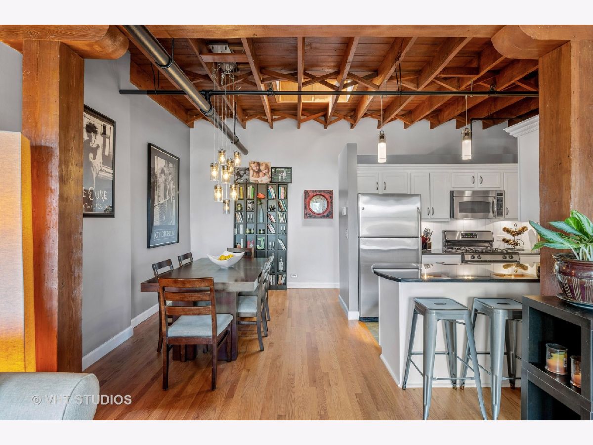 Superior Andersonville location! Don't miss this Gorgeous Brick & Timber Penthouse 1BR+Den (or 2nd BR) with Parking at the coveted Map Factory Lofts on Ravenswood! Featuring hardwood floors, skylights, large and brand new windows with blue sky endless Eastern exposures, granite counters, white maple cabinets, stainless appliances, dedicated dining room, exposed ductwork, wood burning fireplace & almost too much to list! Just down the hall, is a large roof deck perfect for entertaining and there is a gated exterior parking space included in the sale. Extremely walkable location, close to shopping and dining and the best that Andersonville has to offer! Recent Updates include All New Windows (2021), New Carpet in Bedroom & Den (2021), Custom Blackout Blinds in bedroom (2017) and newer Mechanicals (2013-2015). Professionally managed buiding with over $200K in reserves. This one is a MUST SEE!