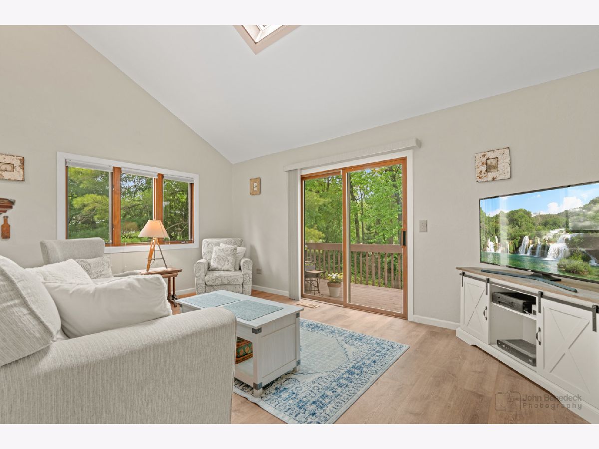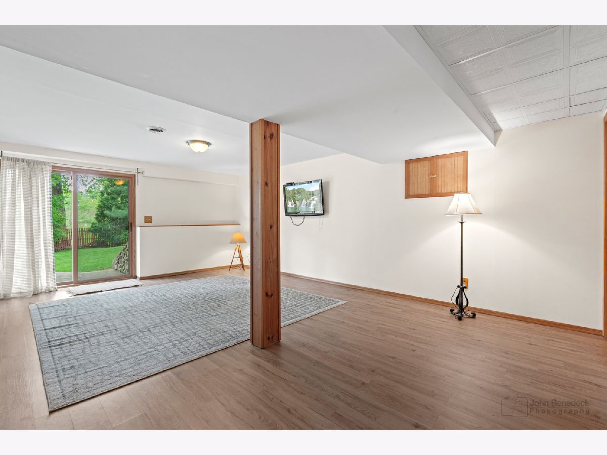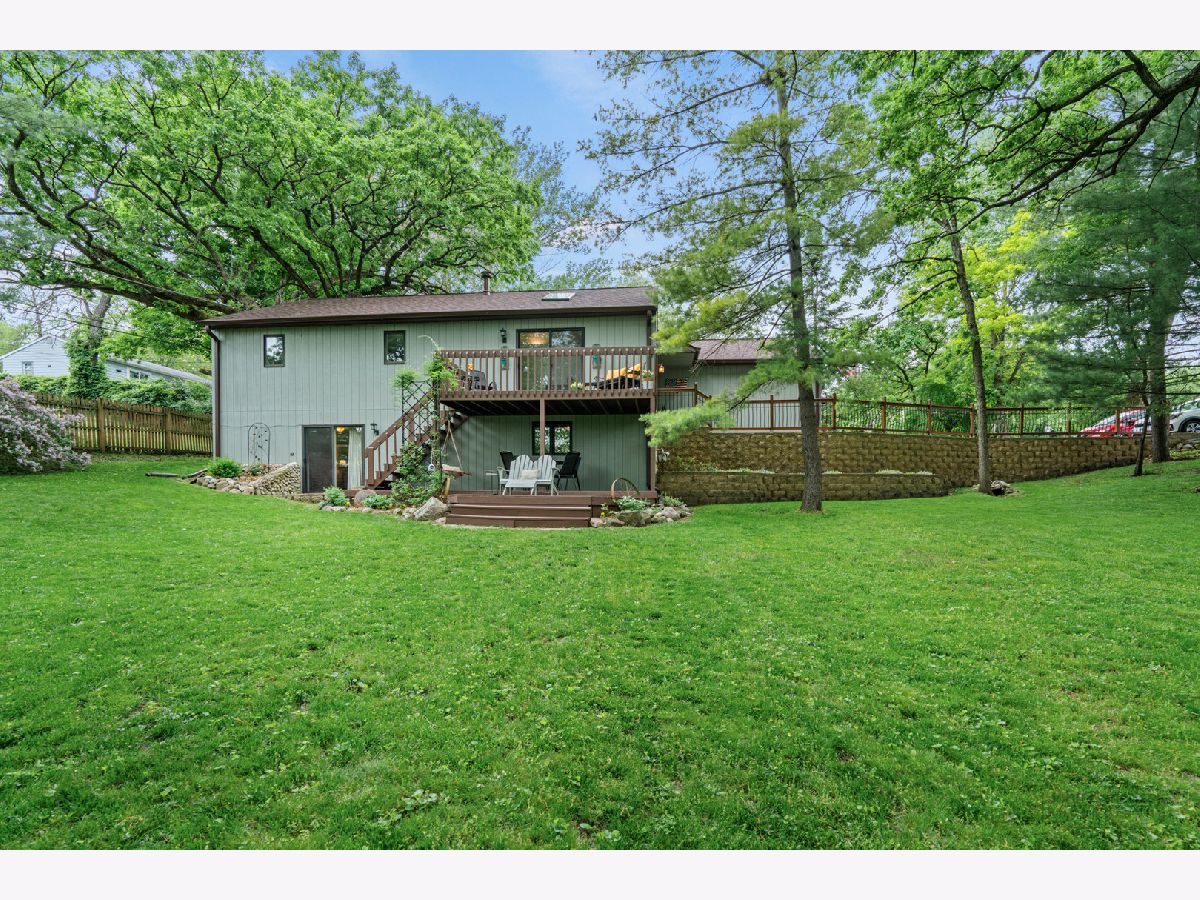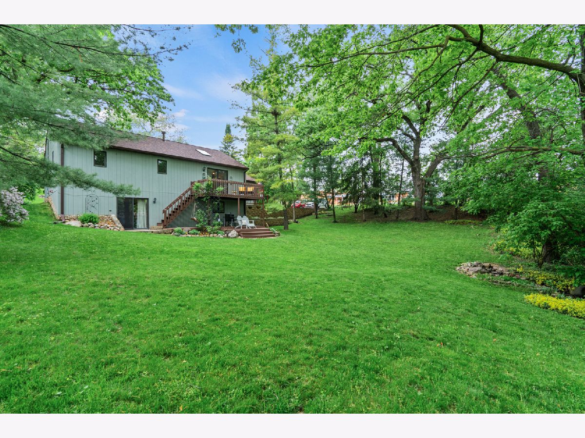 Privacy and convenience! Much bigger than it looks from the street. Inviting and airy hillside ranch on a secluded approximate 1/3rd acre, located directly across from Lake in the Hills Elementary. Uniquely custom 2240 SF home with fully finished walk out basement. Both levels open to a parklike setting. Bright updated kitchen with appliances still under warranty. Three generous bedrooms on the main level with 2 full bathrooms. Large rec area and 4th and 5th adjoining bedroom option downstairs with half bathroom plus a shower rough-in so you can make it your third full bathroom if you like. New roof, gutters and flooring in 2023. New attic insulation and hot water heater in 2024. In this lovely setting a short distance between two lakes, enjoy lake life with a community beach one block away. Bring your kayak or canoe to the boat launch for a day on the water. Beautiful Prairie Trail bike path is a 2 minute ride to the east. Quiet friendly neighborhood, minutes from local shopping, Randall corridor and the Metra. Award winning schools, this one's an A+!