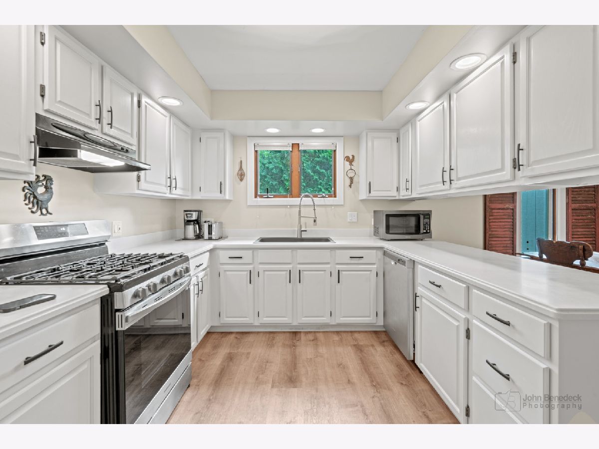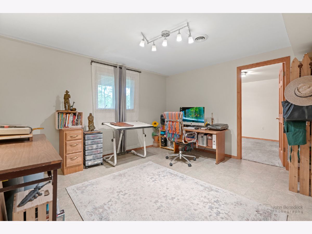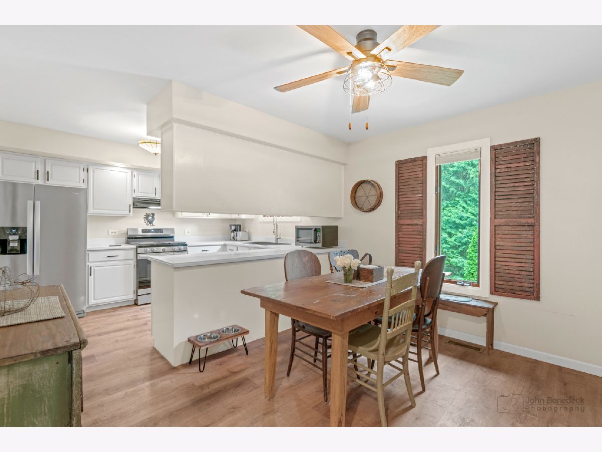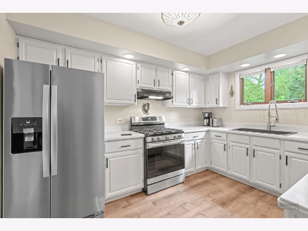 Privacy and convenience! Much bigger than it looks from the street. Inviting and airy hillside ranch on a secluded approximate 1/3rd acre, located directly across from Lake in the Hills Elementary. Uniquely custom 2240 SF home with fully finished walk out basement. Both levels open to a parklike setting. Bright updated kitchen with appliances still under warranty. Three generous bedrooms on the main level with 2 full bathrooms. Large rec area and 4th and 5th adjoining bedroom option downstairs with half bathroom plus a shower rough-in so you can make it your third full bathroom if you like. New roof, gutters and flooring in 2023. New attic insulation and hot water heater in 2024. In this lovely setting a short distance between two lakes, enjoy lake life with a community beach one block away. Bring your kayak or canoe to the boat launch for a day on the water. Beautiful Prairie Trail bike path is a 2 minute ride to the east. Quiet friendly neighborhood, minutes from local shopping, Randall corridor and the Metra. Award winning schools, this one's an A+!
