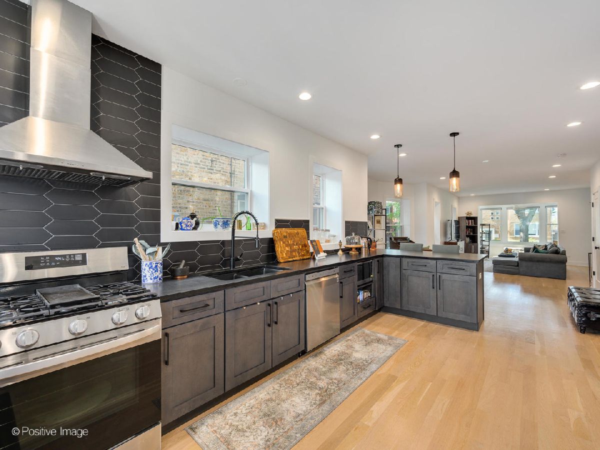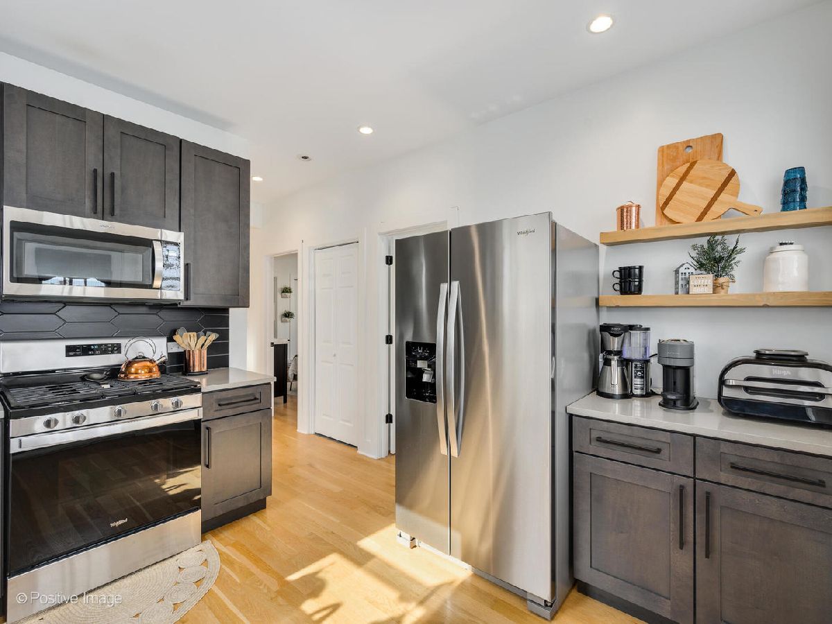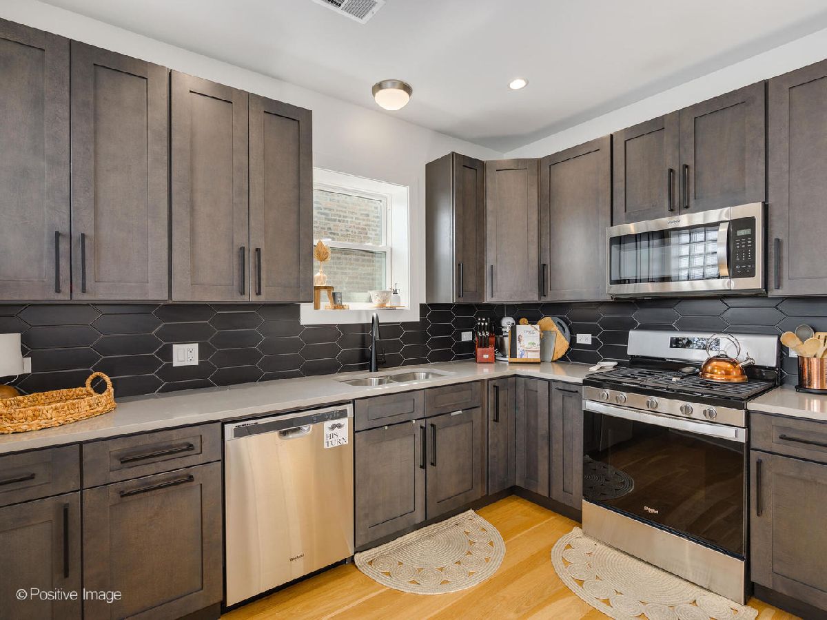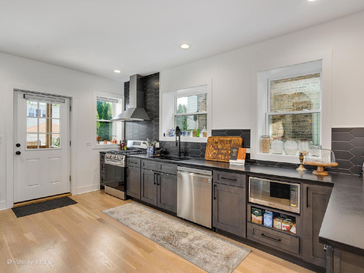 Move right into this completely renovated (2021) Full-Brick Luxury 2-Flat with owner's unit + investment located in Portage Park with rare pull-through driveway from street to alley. Everything new except brick! Both units boast plenty of natural lighting and open floorplans for entertaining, sun/sitting room/ possible den, large living room which flows to dining area, white oak hardwood flooring throughout and hand-picked customized finishes. Enjoy updated kitchens with natural black quartz countertops, Forever Mark charcoal shaker cabinets, horizontal picket backsplash and new stainless steel appliances. Unit 2 contains 3 beds 1 full bath. Unit 1 contains 4 beds 3 baths with 2 beds 1 full bath on main floor, and 2 additional rooms plus primary suite on lower level with customized finishes including triple shower head and dual vanity. Shared yard takes you to oversized 2.5 car detached garage (2021) with 100 amp sub panel. Short walk to Portage Park, schools, restaurants, six corners, shopping district and near CTA line, O'hare airport and expressways. See Virtual Tour Link.