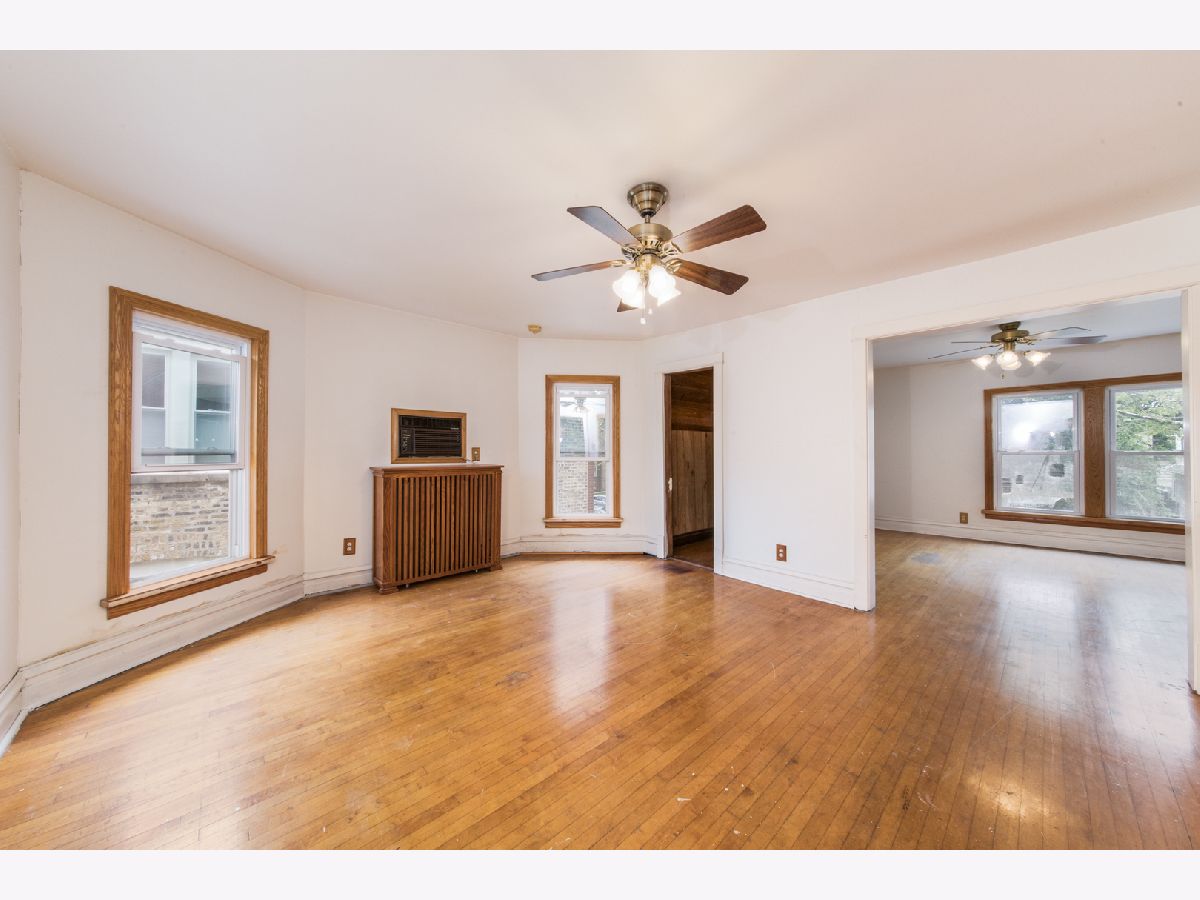 If you have been looking in North Park you know not much comes on the market. This is your chance to live on one floor and rent the other for income. Or you could rent out both units as the property is one block to North Park University. Each unit has a living room. dining room, large kitchen with pantry, 2 bedrooms, 1 bathroom and a den. Hardwood floors are predominate throughout both floors. The first floor unit is forced air with a furnace. The second floor has radiator heat and is serviced by a boiler. Window air conditioning units will transfer with the property. There is a full basement that is unfinished. There is a 2 car detached garage. Lot measures approximately 37.5 x 124.3 so it is bigger than many city lots. Some 2 flats in the neighborhood have been converted to single family homes. Bring your design ideas and your energy to make it your dream property.