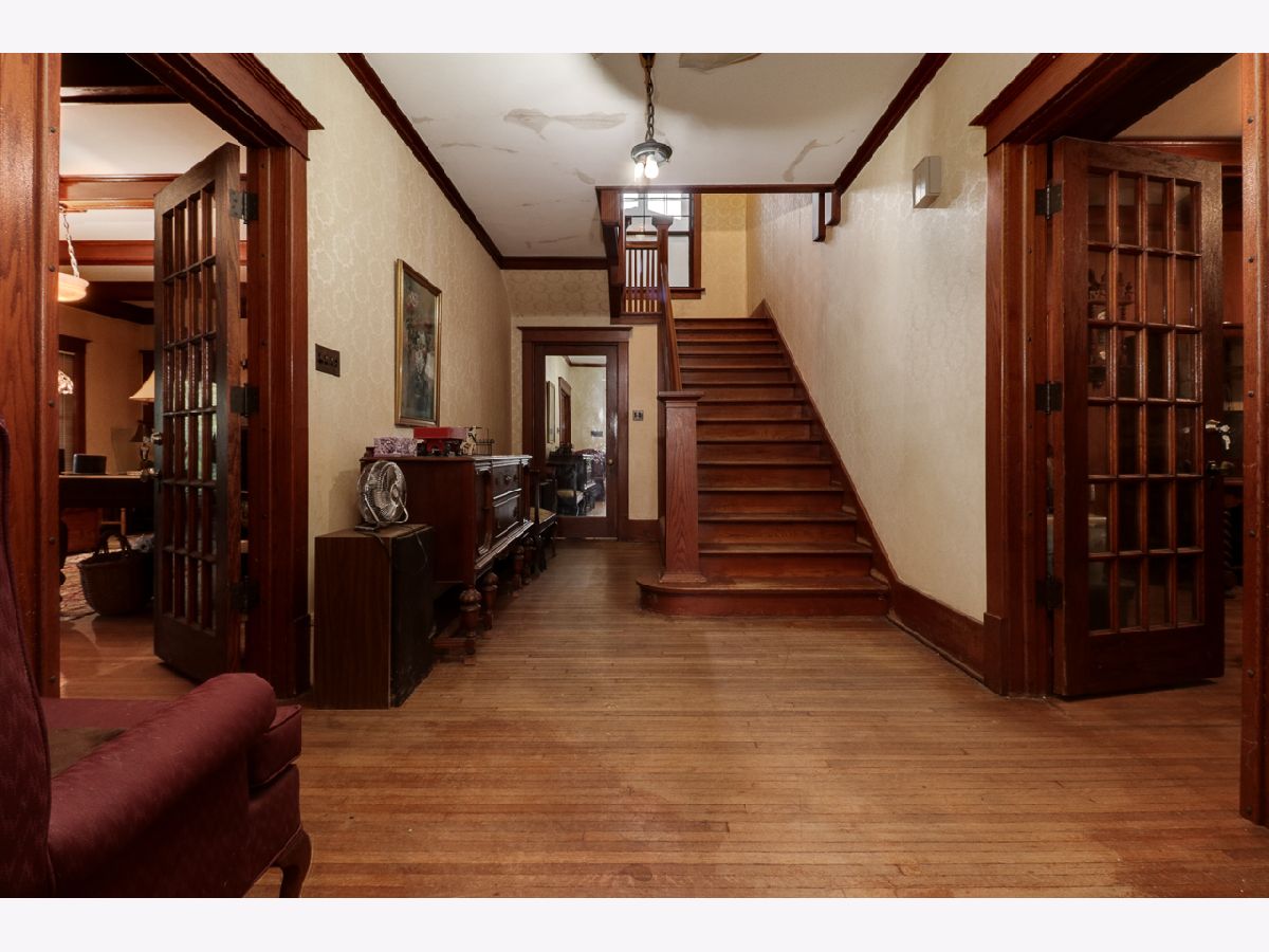Convenient to everything that Fairbury has to offer, the "location, location, location" advantages of this appealing 4-bedroom, 3.5-bathroom English manor are attractive enough. Seconds after stepping into the impressive entryway you might want take a minute to take it all in. Hardwoods contribute to the legacy feel in all major rooms and corridors. Nothing says book, nap, or conversation like crackling fireplace warmth, which can be found in the living room, primary bedroom (upstairs and down), living room, and sitting room. The kitchen, which is roomy enough to accommodate spectator guests, blends inspiring counter space and major appliances in an attractive layout. The roomy primary bedroom is conveniently located on the main-floor, offering the luxury of tranquility as the days begin. A sitting area represents yet more versatility. The other 3 bedrooms--ensuite, unique, and with plenty of closet space-- offer privacy and elbow room. The unfinished basement is good for storage. With fencing in the rear, the large yard offers privacy and room for enjoyment. A driveway with ample accommodation for visiting vehicles leads to an attached three-car garage that is available for its original purpose, or you can get creative by treating it as additional flex space. Attached is the workshop space that will connect you to an upstairs loft and the carriage house. Savor the twilight from the breezy rear porch. As an open-air extension of the home, the solid floor patio is an ideal foundation for outdoor furniture sets and the convivial laughter that naturally follows. From its position on a quiet no-thruway street in an area of tree-lined streets, the home is close to outdoor recreational opportunities. This appealing abode is a notable Fairbury find. With TLC this home can be turned back into the historic beauty it was made to be.
