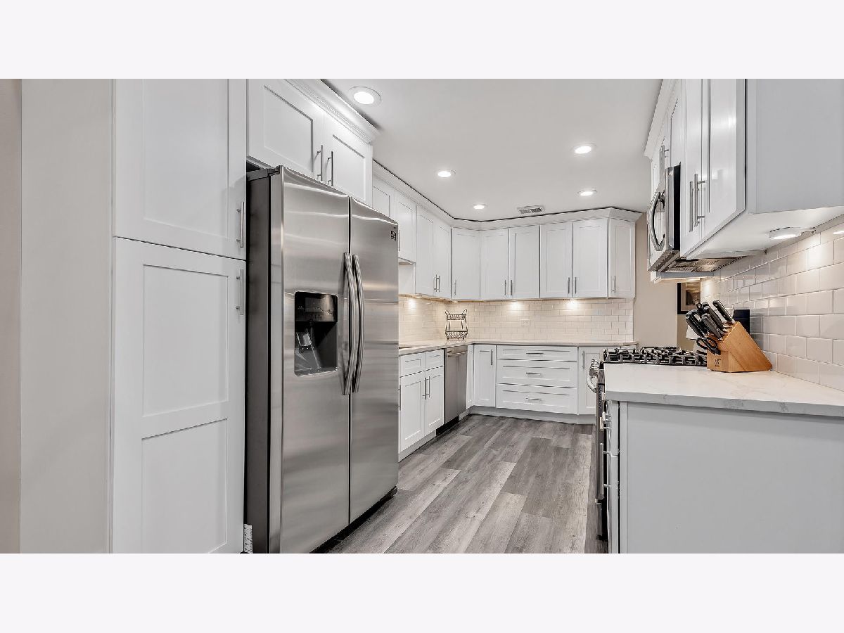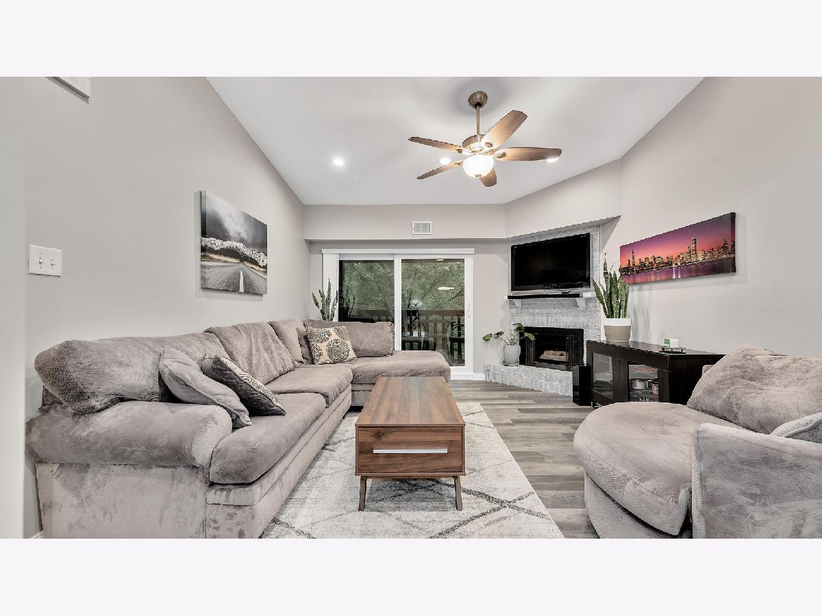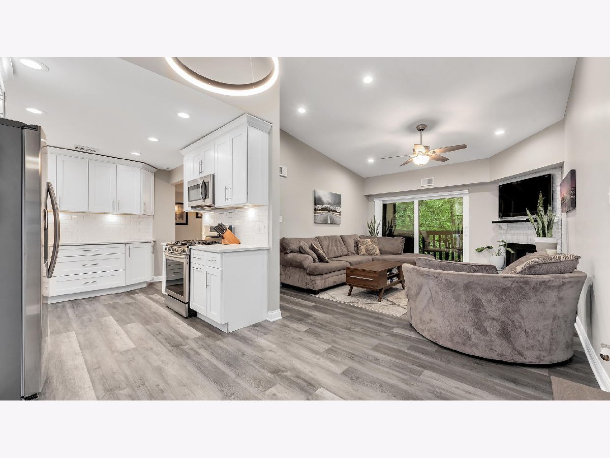 Welcome home to this gorgeously remodeled 2 bed 2 bath condo! This stunning unit has been meticulously updated from top to bottom. Open floor plan boasts luxury plank vinyl flooring and neutral paint throughout. Light and bright family room w/ vaulted ceilings, fireplace opens to private balcony. Stunning kitchen offers quartz countertops, shaker style soft close cabinets, touchless faucet and brand new stainless steel appliances. Generous sized bedrooms including spacious master bed w/fully updated en-suite bath w/double bowl vanity and walk-in closet. Convenient in-unit laundry. 1-car garage #21 offers easy access and additional storage. Fantastic location close to town, shopping and dining. Completely move in ready and won't last long!