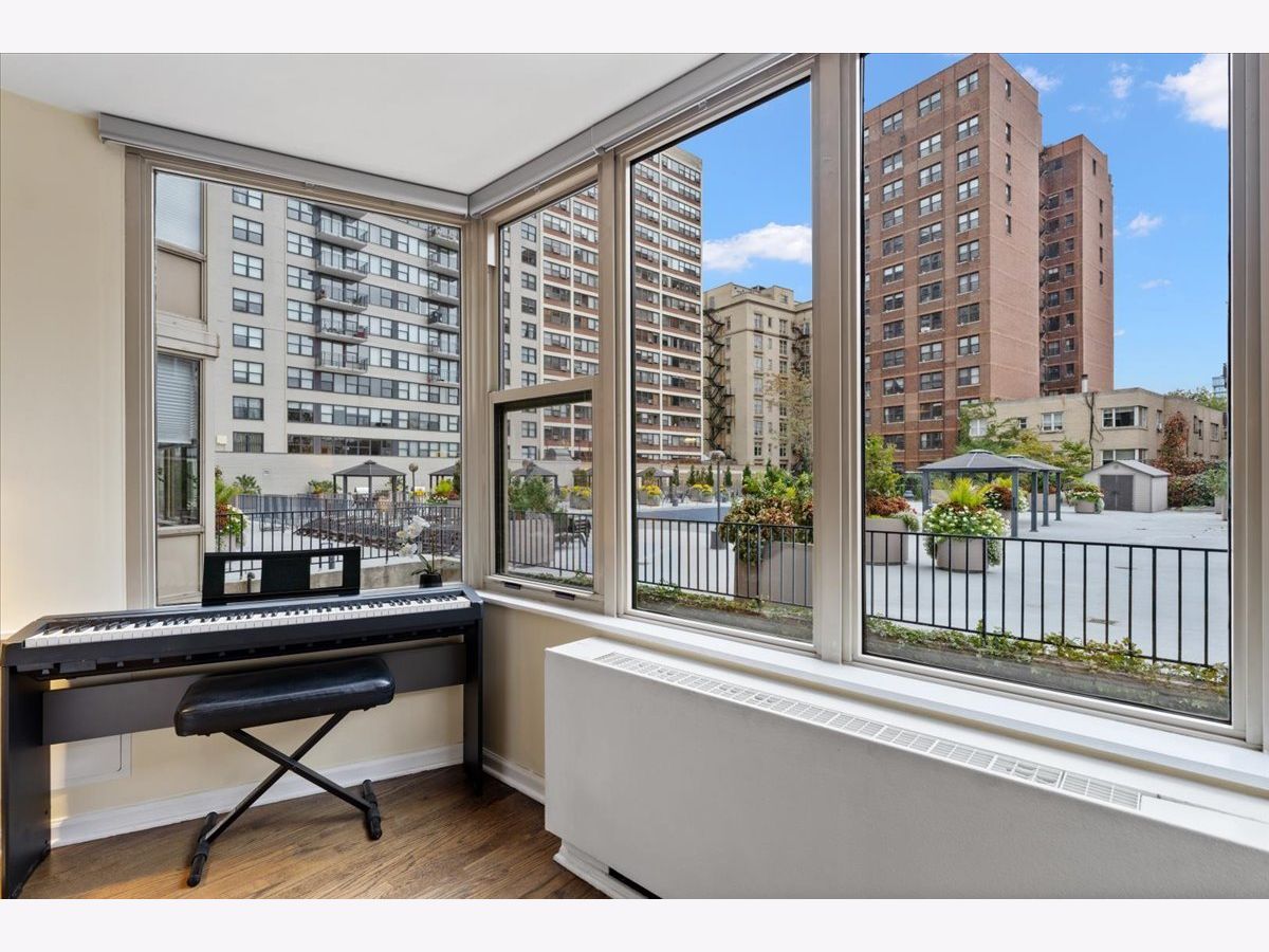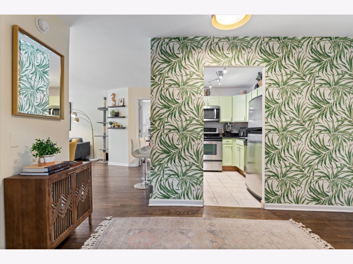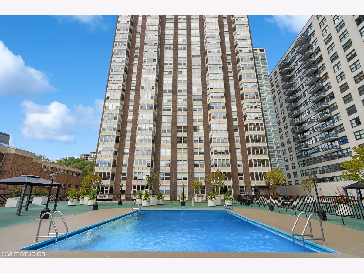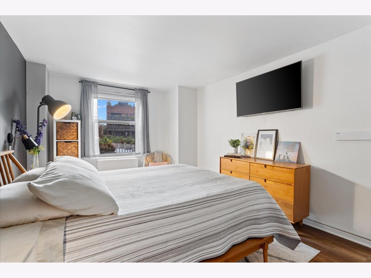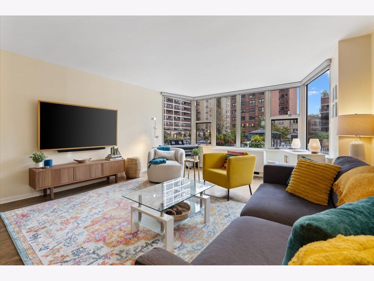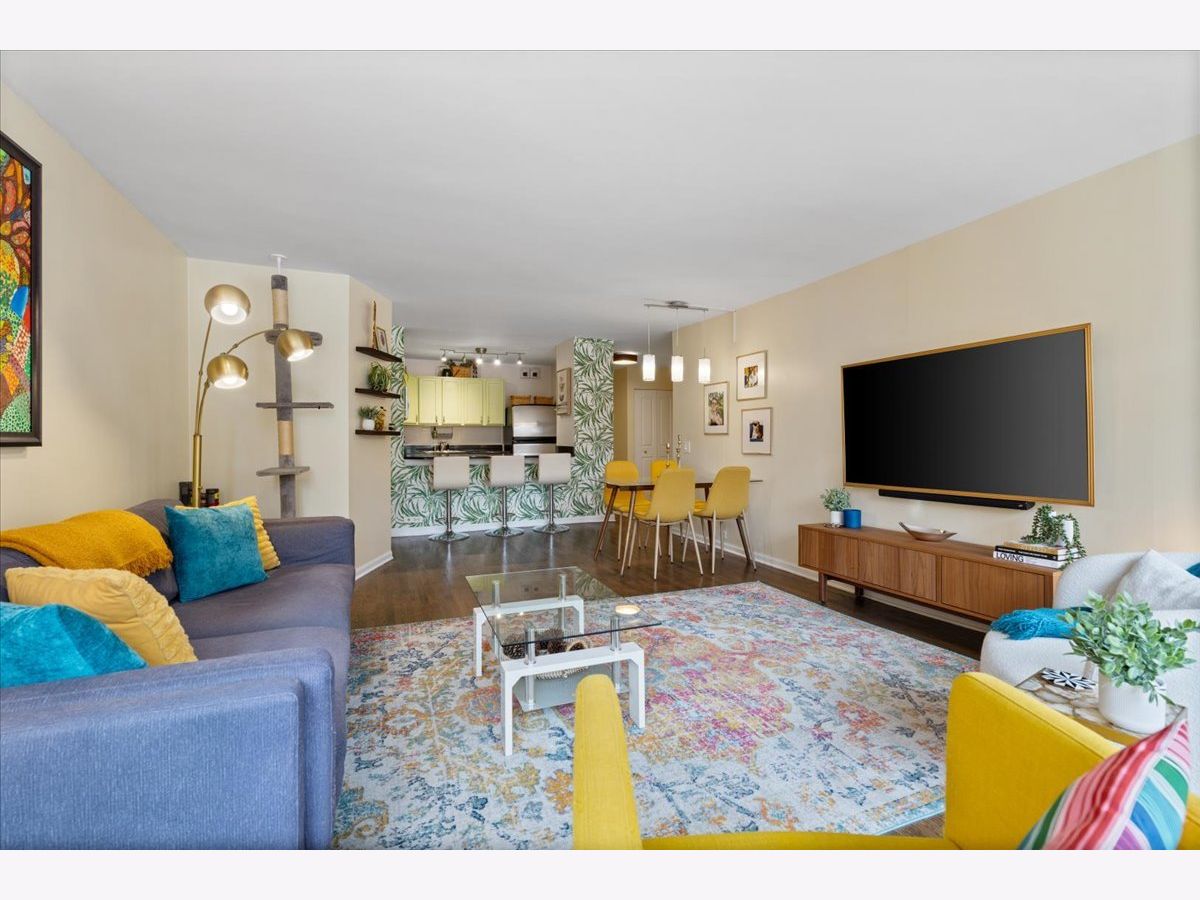 SUN-FILLED TWO-BEDROOM, ONE-BATHROOM CONDO in one of East Lakeview's most desirable full-amenity buildings - 525 W HAWTHORNE. This south-facing home features an inviting open-concept living and dining area framed by lush, landscaped urban views-perfect for relaxing or entertaining. Enjoy hardwood floors throughout the main living area. The striking great room allows for large-scale furniture and a full dining setup. The cheery kitchen offers granite countertops and stainless-steel appliances for those who like to cook. The updated bathroom offers a soaking tub, modern vanity, and contemporary lighting and mirror. The king-sized primary bedroom boasts both a walk-in closet and an additional wall closet, while the queen-sized second bedroom functions beautifully as a guest room or home office. One deeded garage parking space is included in the price. Storage cage on same floor. Residents of 525 W Hawthorne Place enjoy an array of amenities including 24-hour door staff, on-site engineer, outdoor pool and sundeck, fitness center, and package receiving room. Situated in the heart of East Lakeview, you're steps from the lakefront, dining, shopping, and easy transportation options.