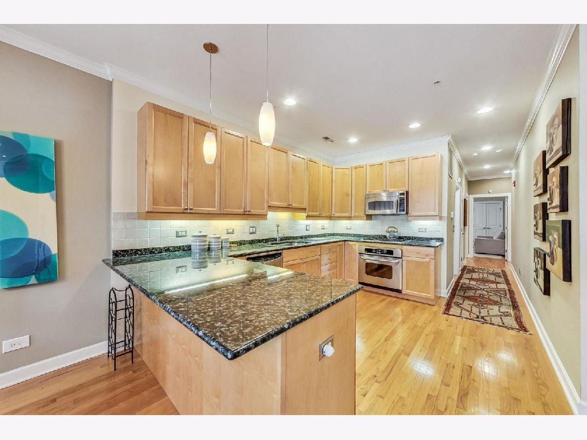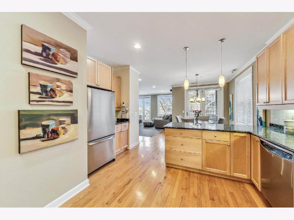 Located in an intimate 8-unit elevator building mere steps away from the beach and public transportation, this 1590 square foot, 2-bedroom, 2-bathroom residence boasts a meticulously designed floor plan. Upon entry, one is greeted by a lovely foyer adorned with inlaid wood and a generously sized coat closet. Abundant natural light floods the well-proportioned living room and dining area, highlighting the charming gas fireplace mantel, which serves as the focal point of the west-facing living space. The kitchen, a true culinary haven, features granite countertops, ample prep and cooking space, a stylish backsplash, and 42" cabinets. Stainless steel appliances and under-counter lighting add a touch of modern sophistication making it an ideal gathering spot. This unit offers the convenience of in-unit laundry, along with its own furnace and water heater for added comfort. The grand primary suite includes a spacious walk-in closet and a spa-like primary bath, providing a luxurious retreat. The second bedroom offers versatility, serving perfectly as either an office or guest space, complemented by a second bath and ample storage throughout. With 9' ceilings and hardwood flooring throughout, this residence exudes elegance and warmth. Step outside to the private balcony, where one can enjoy a morning coffee or take in breathtaking sunsets. The building is impeccably maintained, offering garage parking and ample street parking for guests. Step outside to the private balcony, where one can enjoy a morning coffee or take in breathtaking sunsets. The building is impeccably maintained, offering garage parking and ample street parking for guests. With its exceptional features and unbeatable location, this residence invites you to move right in and embrace the epitome of Evanston living.
