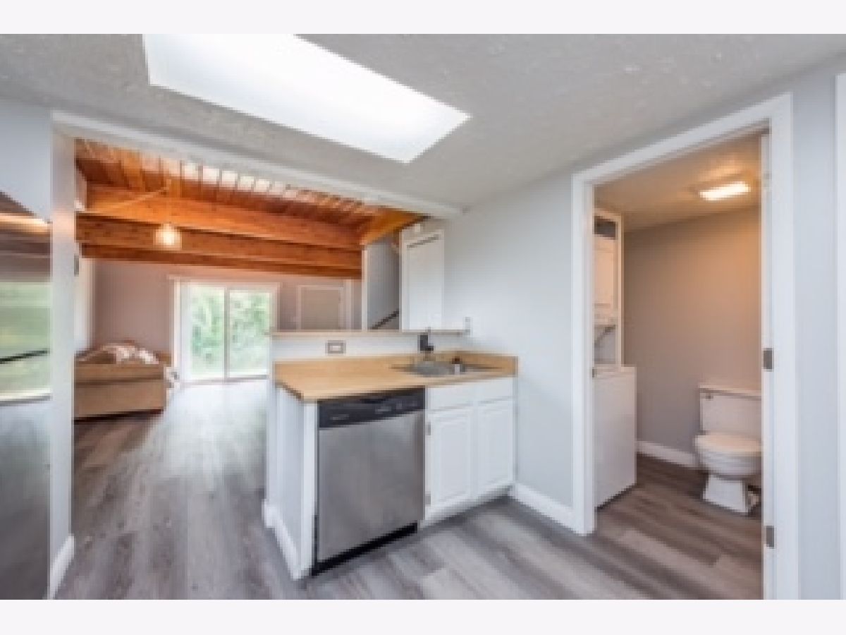 Welcome Home! This quiet end unit is a 3 bed 1.5 bath home and can be moved into with absolute confidence. The warm and welcoming main level features beautiful brand new floors. The open dining room/living room includes an inviting fireplace. A gorgeous kitchen boasts Stainless Steel Appliances, ample cabinet space and a separate laundry closet with stacking washer/dryer unit. Upstairs features three spacious bedrooms including a Master Suite with a private balcony over looking a secluded wooded area. Two more spacious bedrooms and a full bath complete the upstairs of this GEM! There is a community pool, a spacious lower level patio and a new water heater installed this year. Make this amazing home yours while you can.