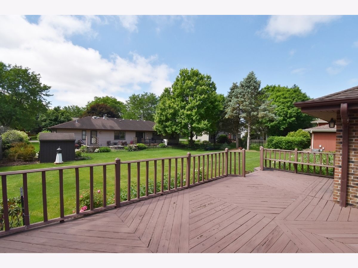 Country lifestyle with all the amenities you could hope for nearby! Enjoy spending time at popular Lion's Park right down the street! Solid all brick ranch home with generous room sizes and beautiful mature yard! Large family room boasts a tray ceiling, floor to ceiling brick fireplace, bow window and a wood cased opening that leads to the kitchen. The big eat-in kitchen has beautiful wood cabinets, tile backsplash, island/breakfast bar and eating space with an atrium door that leads out to a deck overlooking the deep professionally landscaped yard! Main bedroom suite with private access to deck, wall sconce, ceiling fan, big closet and private en-suite full bath with shower and big linen cabinet. Two generous size secondary bedrooms, 1 with wall sconce and 1 with ceiling fan. Full hall bath with shower/tub combo. Huge main floor laundry room/mud room with utility sink and cabinets. There is an abundant amount of storage in the full basement! The southern exposure deck is a great place to spend your "downtime"! Oversized 2 car attached garage with basement access and door to yard. METRA station is nearby along with charming downtown Elburn. Come and see why everyone loves Elburn!