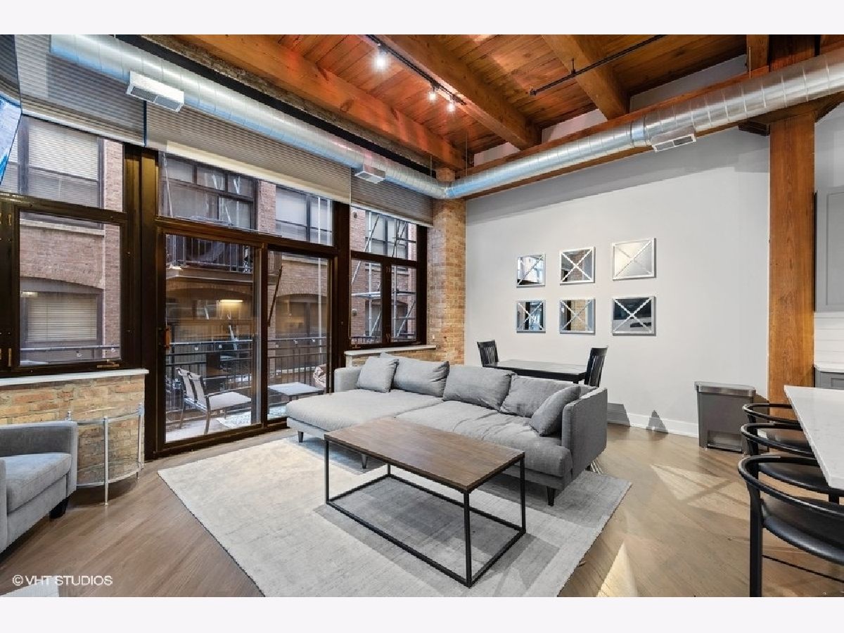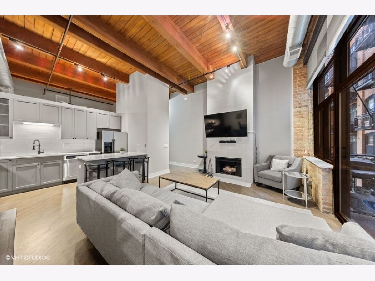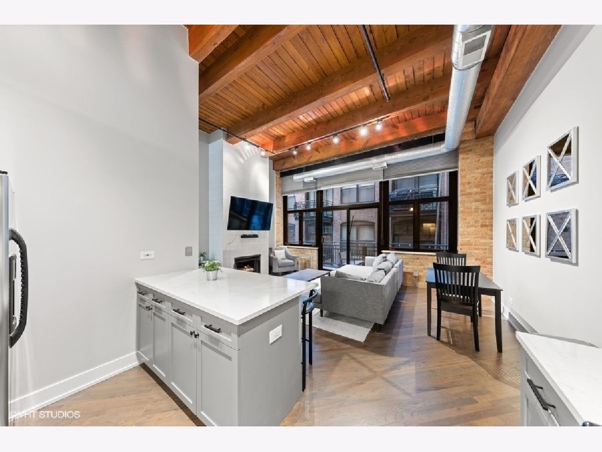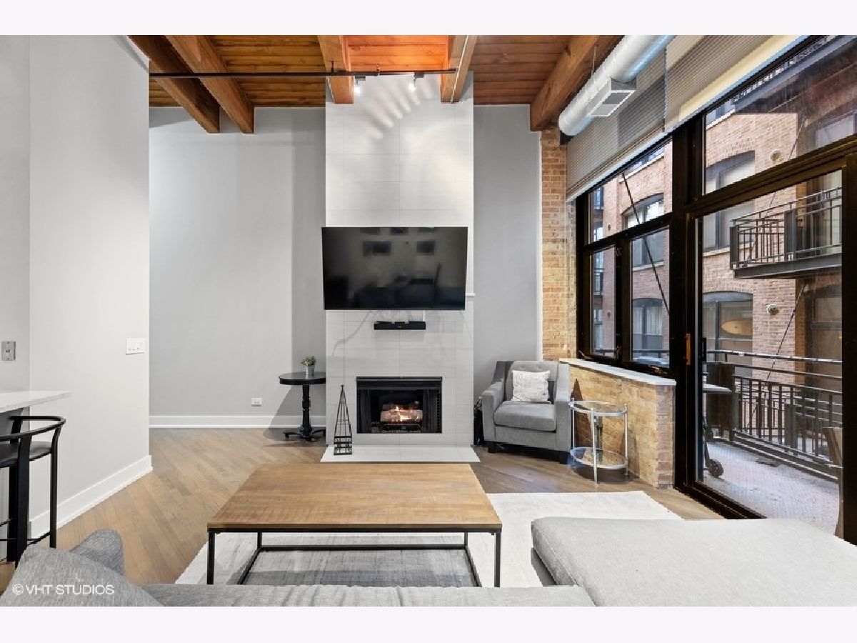 The most updated loft you'll find. It's a wow. If you're looking for a completely renovated loft on a true residential block in River North, keep reading. EVERYTHING has been redone for you in 2020! New bathroom-down to the drywall. Updated kitchen w/ quartz tops. New/refinished hardwood floors throughout. Every square inch has been painted. New (in-unit) furnace and A/C. 14-foot ceilings. Great room highlights: floor-to-ceiling fireplace (new facade), floor-to-ceiling wall of windows overlooking oversized balcony and exposed brick wall. New, in-unit washer & dryer. New trim and doors. Walk-in closet in bedroom. Secure indoor garage (space #GU-33) included for $30,000 additional. Storage locker (space #328). 100% move-in ready. River North Commons uniquely offers secure 24-hour doorman, modern gym and elevators. Quick close possible.