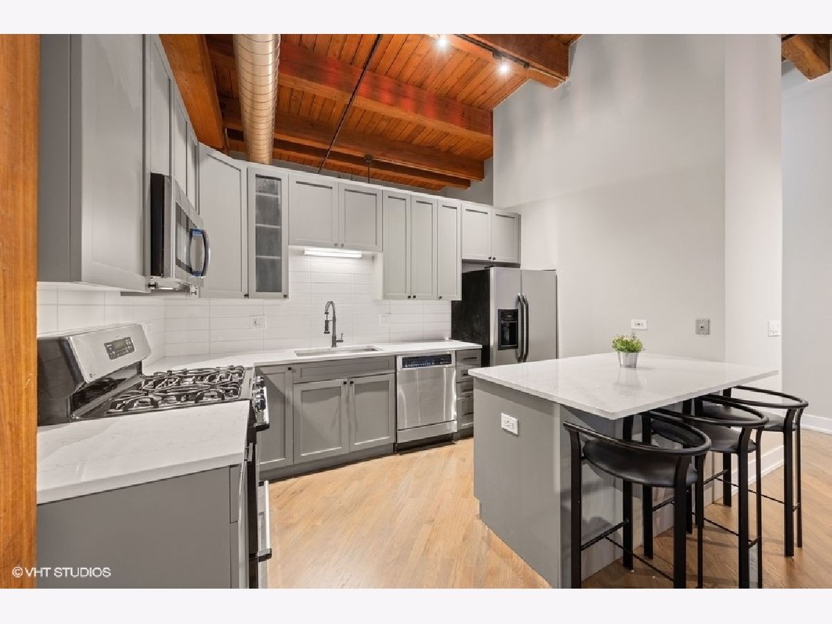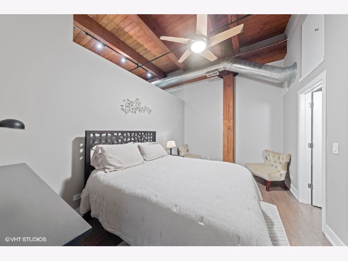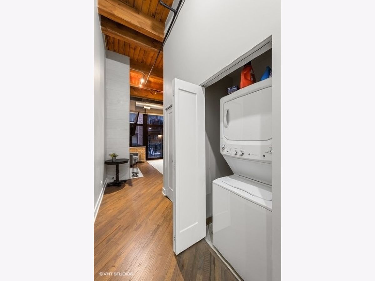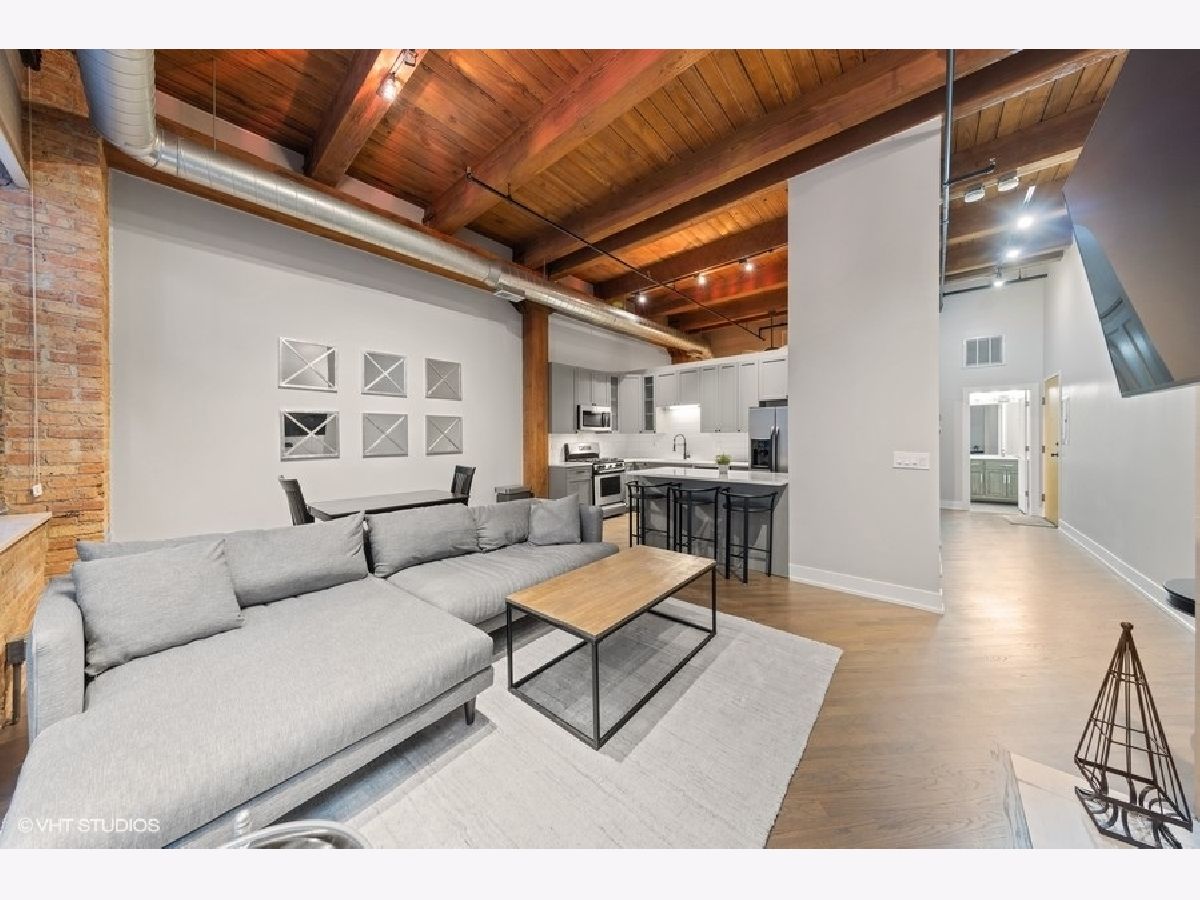 The most updated loft you'll find. It's a wow. If you're looking for a completely renovated loft on a true residential block in River North, keep reading. EVERYTHING has been redone for you in 2020! New bathroom-down to the drywall. Updated kitchen w/ quartz tops. New/refinished hardwood floors throughout. Every square inch has been painted. New (in-unit) furnace and A/C. 14-foot ceilings. Great room highlights: floor-to-ceiling fireplace (new facade), floor-to-ceiling wall of windows overlooking oversized balcony and exposed brick wall. New, in-unit washer & dryer. New trim and doors. Walk-in closet in bedroom. Secure indoor garage (space #GU-33) included for $30,000 additional. Storage locker (space #328). 100% move-in ready. River North Commons uniquely offers secure 24-hour doorman, modern gym and elevators. Quick close possible.
