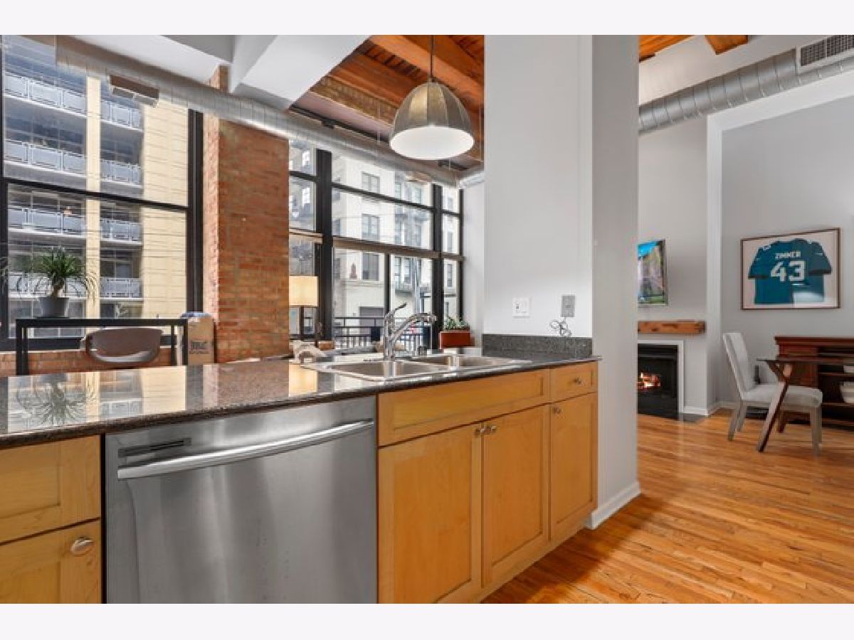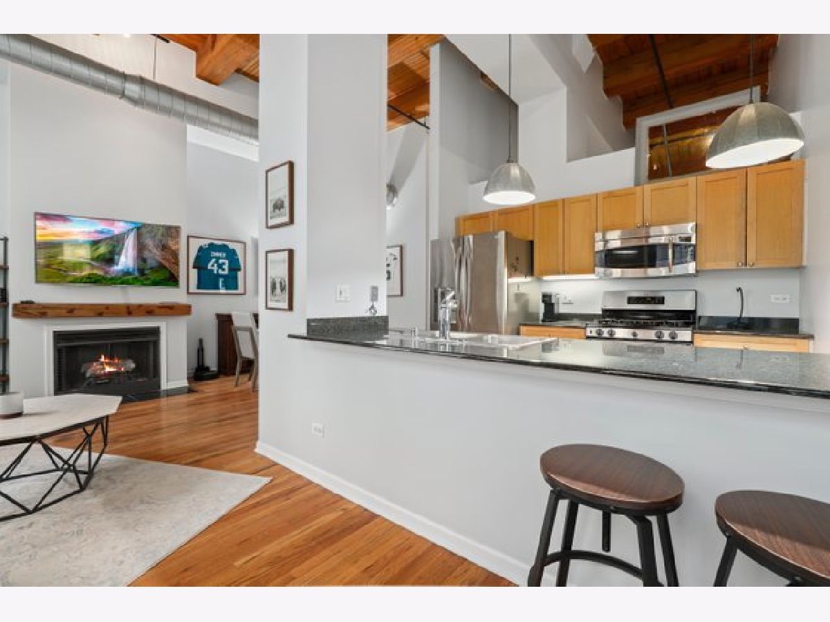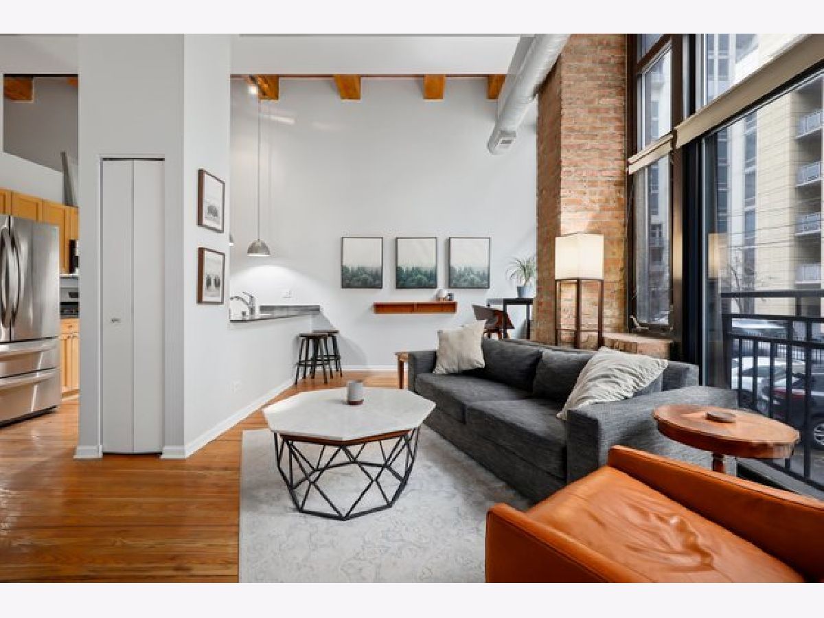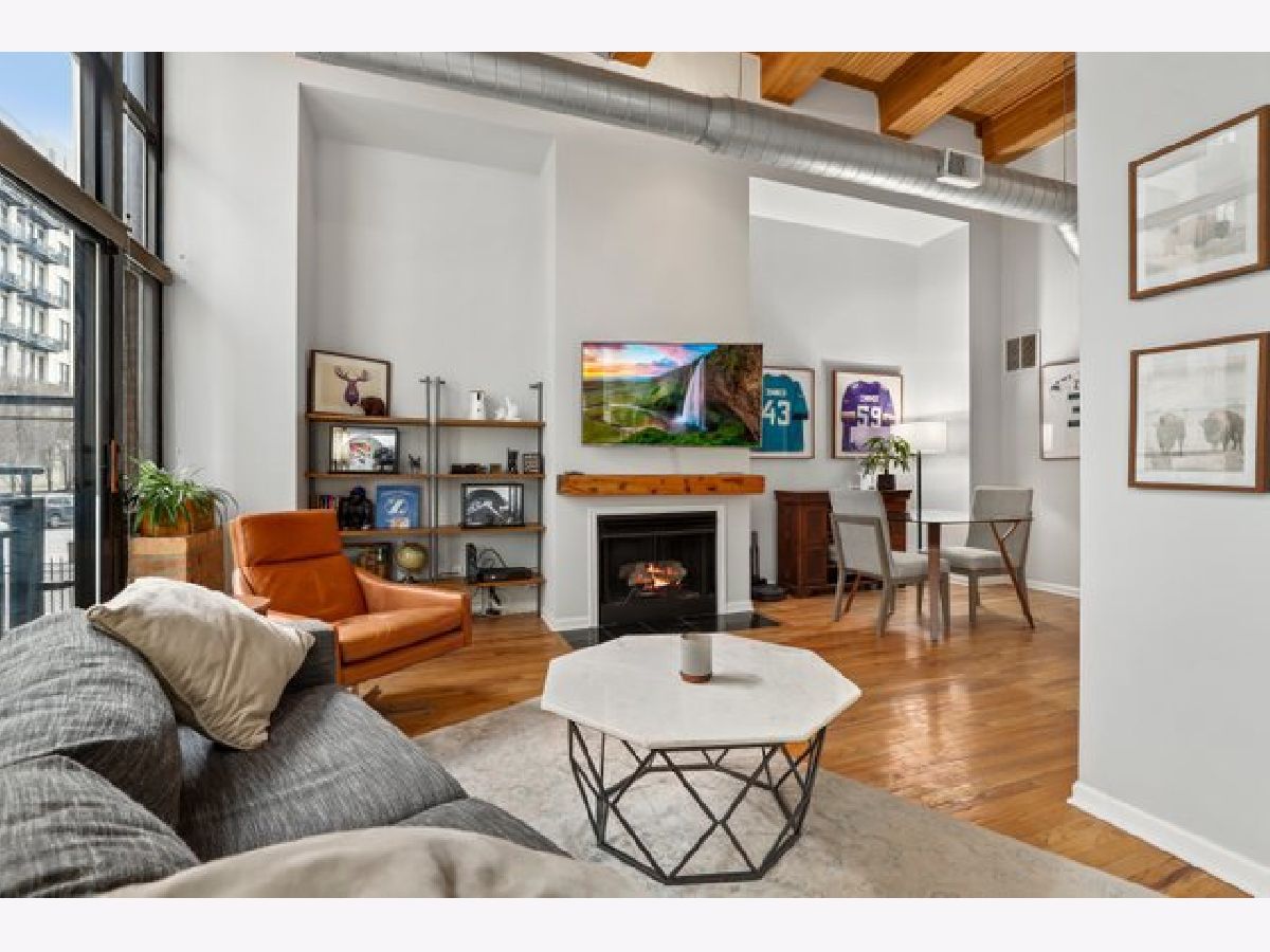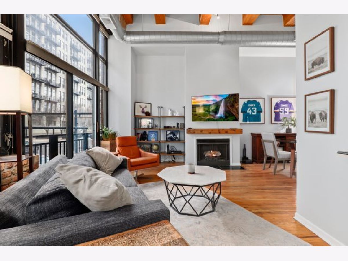 Gorgeous 1 bed 1 bath timber loft in amazing River North location! This unit boasts 14ft ceilings with an exposed brick wall and massive windows that let in tons of natural light. Also includes a Juliet Balcony to let in lots of fresh air on nice days. A spacious living room with a gas log fireplace is the perfect spot to entertain guests or cozy up on these chilly winter days. Chef's kitchen features tons of cabinet space, all stainless steel appliances, and a huge breakfast bar. The primary bedroom is spacious and comfortable & offers plenty of closet space. This building features 24-hour door staff, an exercise room, and a party room. Pet friendly. In-unit washer/dryer. Just steps from restaurants, retail, and public transit. Deeded parking space is available for an additional $25k.