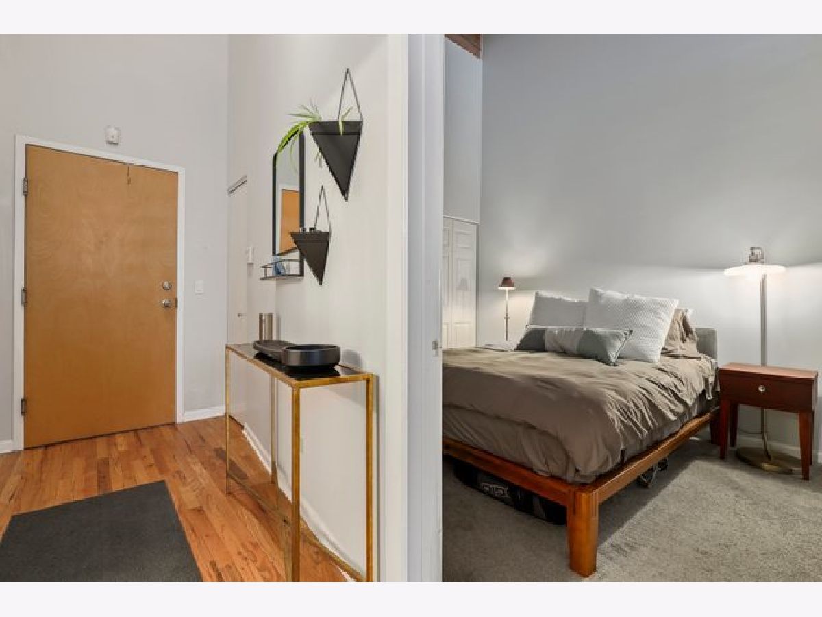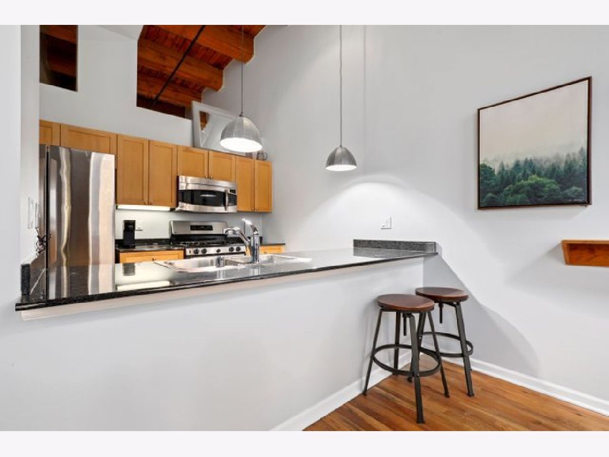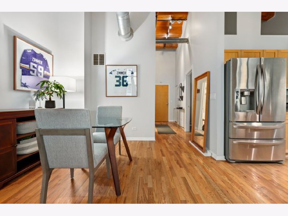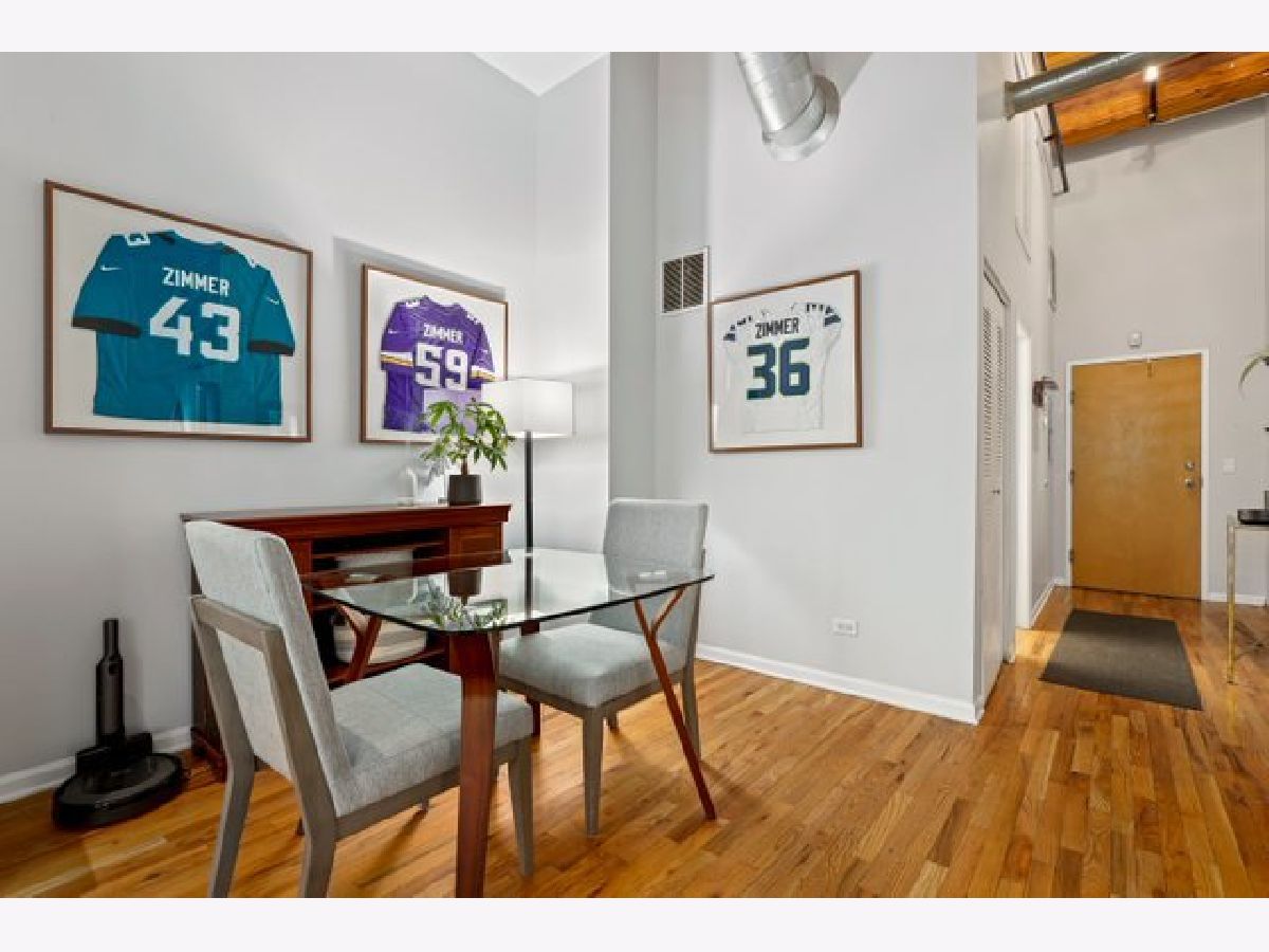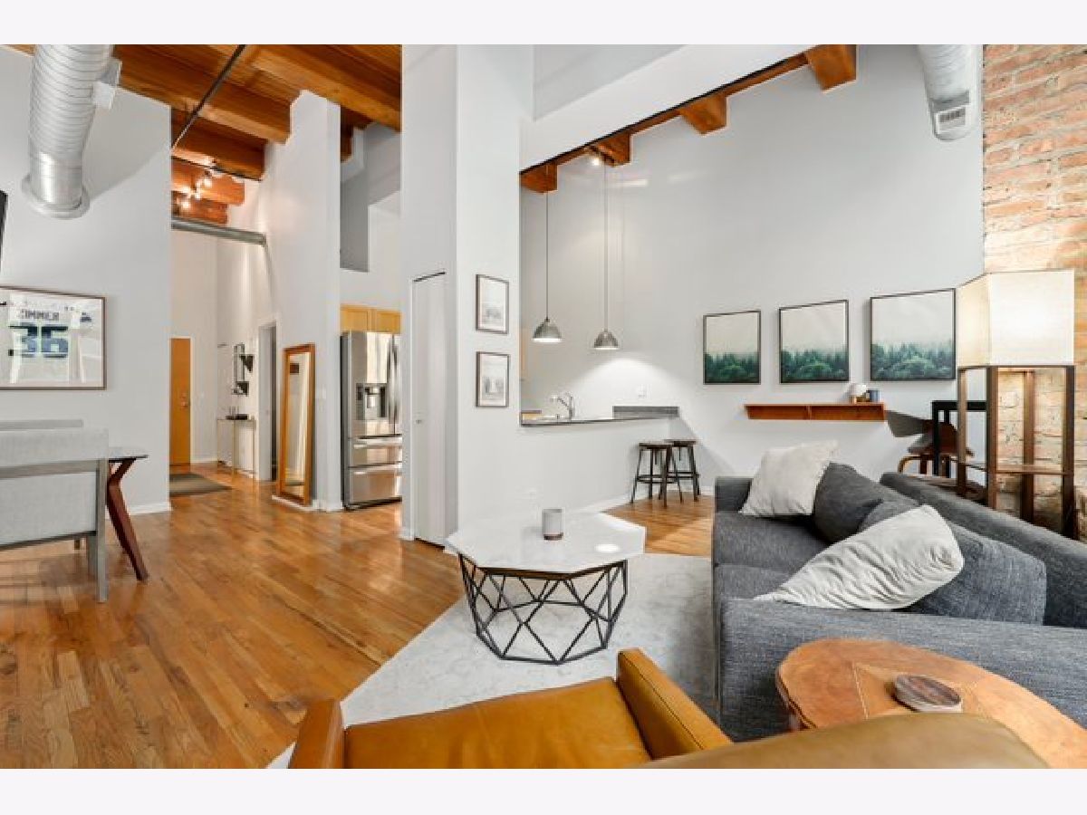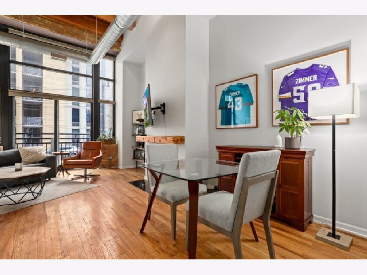 Gorgeous 1 bed 1 bath timber loft in amazing River North location! This unit boasts 14ft ceilings with an exposed brick wall and massive windows that let in tons of natural light. Also includes a Juliet Balcony to let in lots of fresh air on nice days. A spacious living room with a gas log fireplace is the perfect spot to entertain guests or cozy up on these chilly winter days. Chef's kitchen features tons of cabinet space, all stainless steel appliances, and a huge breakfast bar. The primary bedroom is spacious and comfortable & offers plenty of closet space. This building features 24-hour door staff, an exercise room, and a party room. Pet friendly. In-unit washer/dryer. Just steps from restaurants, retail, and public transit. Deeded parking space is available for an additional $25k.