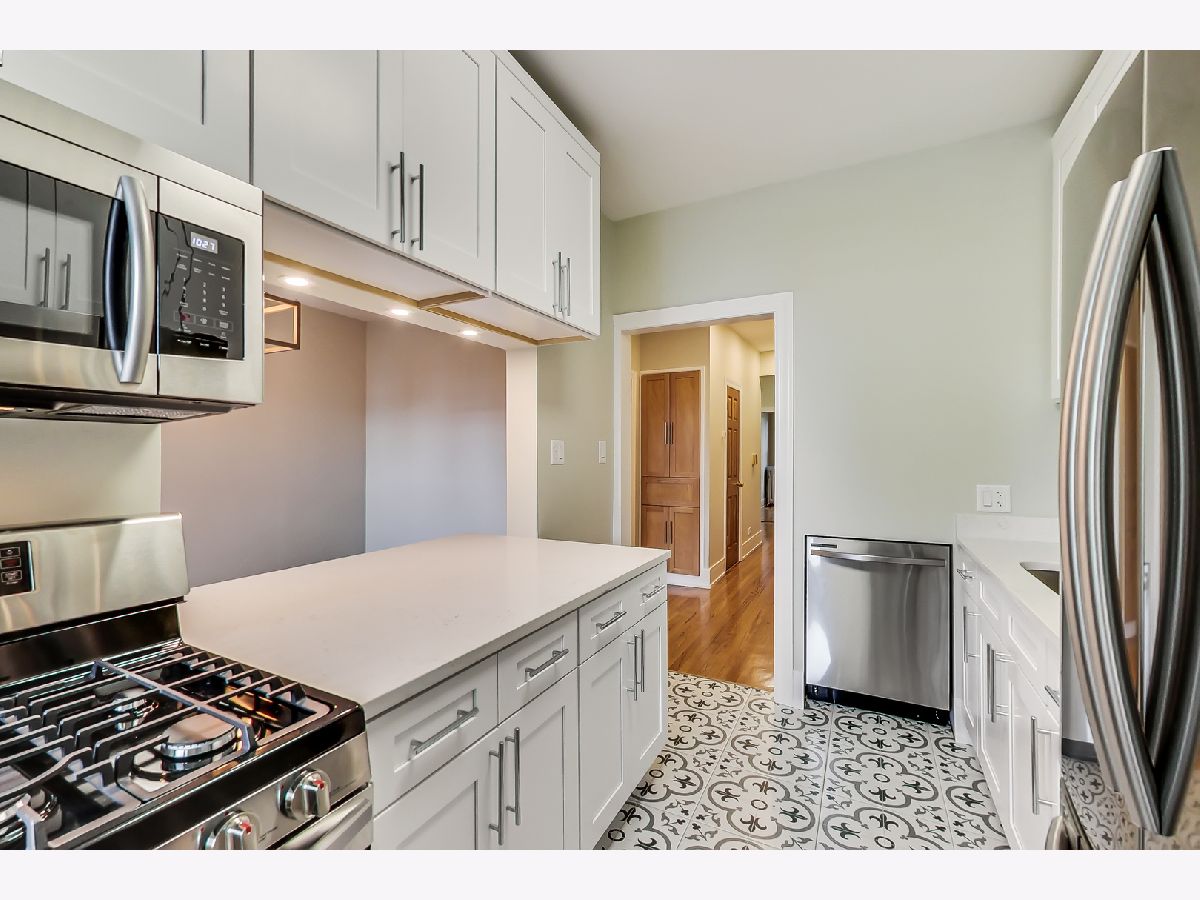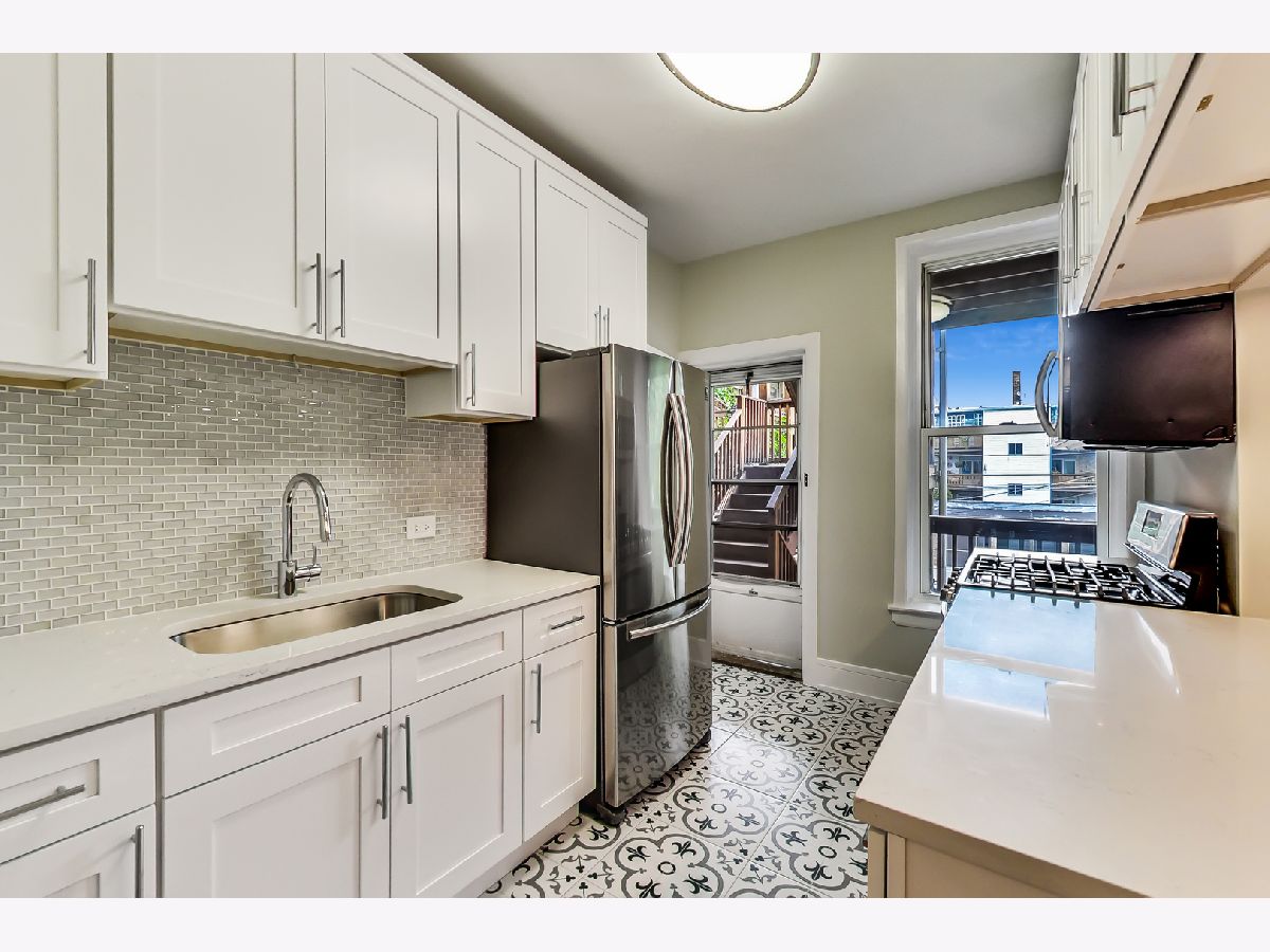 Beautifully updated 2 bed, 1 bath second floor condo in Edgewater! Renovations just completed as of August 3, 2020. Upon entering, you'll find a beautifully refinished gas fireplace in the living room, newly installed recessed lighting as well as refinished hardwood floors. All bedrooms have been freshly painted and have all new light fixtures/switches. The kitchen features all new stainless steel appliances, encaustic style floor tiles, shaker style cabinets and quartz countertops that gives stylish updates to compliment this vintage home. A large pantry, rare at this price point, sits just off of the kitchen. The breakfast bar layout provides a very open/airy feeling and connects the kitchen to the large dining room. Bathroom updates include all new hex tile flooring, walk in shower, toilet and vanity mirror with LED lighting and anti-fog technology. A large deck sits off of the kitchen and has plenty of space for an outdoor dining table/lounge seating plus a grill. Very healthy association/building with $98k in reserves. Shared laundry in basement and storage locker included with unit. On-site rental parking available for $100/month. Welcome home!