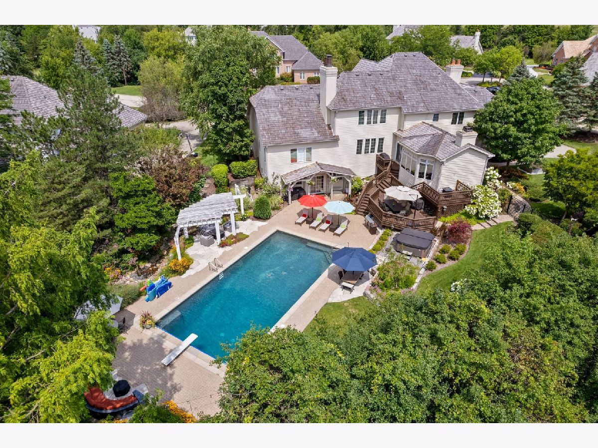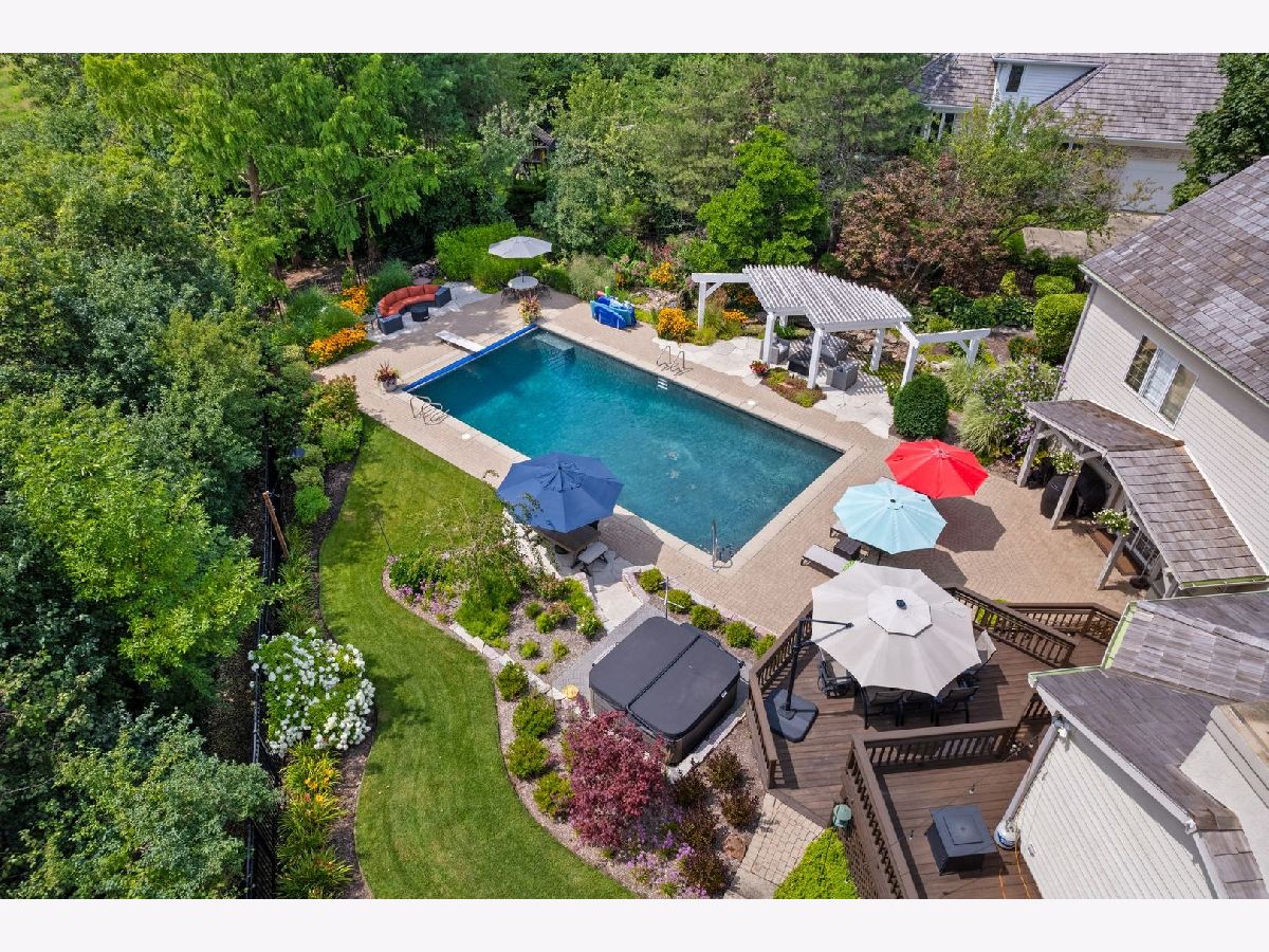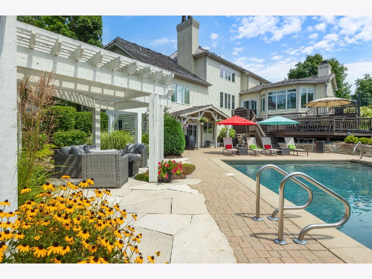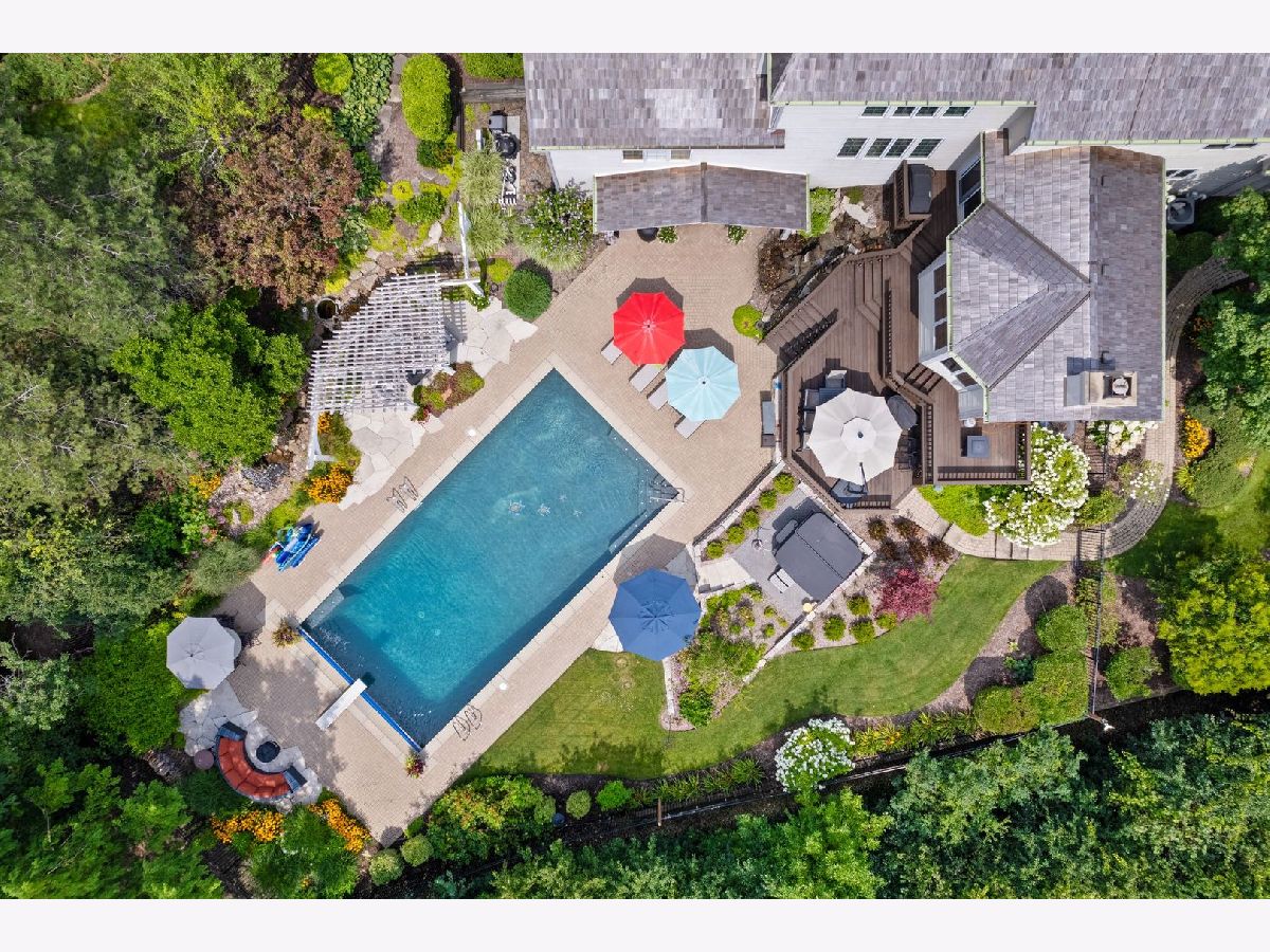 Located on a peaceful private cul-de-sac, this stunning and fully updated home in Libertyville's exclusive River Bend neighborhood is the penultimate of luxury. This Gold Key Award-winning remodel, crafted by Great Rooms Designers & Builders, showcases exceptional design throughout. The newly updated chef's kitchen, featuring a spacious central island and professional-grade stainless steel appliances, opens to a welcoming family room with a striking granite-tiled fireplace and custom-built cabinets and bookcases. Just off the kitchen, the sunroom leads to a breathtaking backyard oasis, where you'll find a multi-tiered primecut aged cedar deck, heated inground pool, newly installed hot tub, paved patio, pergola, waterfall, and beautiful water features. The first-floor master suite is a sanctuary, complete with a cozy fireplace, built-ins, a spa-inspired luxury bath, and a custom walk-in closet. Upstairs, you'll find five additional spacious bedrooms, including two full bathrooms. The newly finished walkout basement includes a stunning custom granite wet bar, exercise room, full bathroom, and a second laundry for added convenience. Ideally located a short drive from quaint downtown Libertyville, near Independence Grove Forest Preserve, with its water sports, scenic trails, and summer concerts, and offering easy access for commuters to Route 94 and Metra Rail. This home is a perfect blend of luxury living, serenity, and unmatched convenience. A few of the many updates: NEW Cedar Roof '23, Hot Tub '23, Basement Finished '22, Furnace/AC '20-'21, Water Heater '20-'21, Kitchen Island, Counter and Cabinet Updates '19, Dishwasher '19, Double Oven '19, full list available.