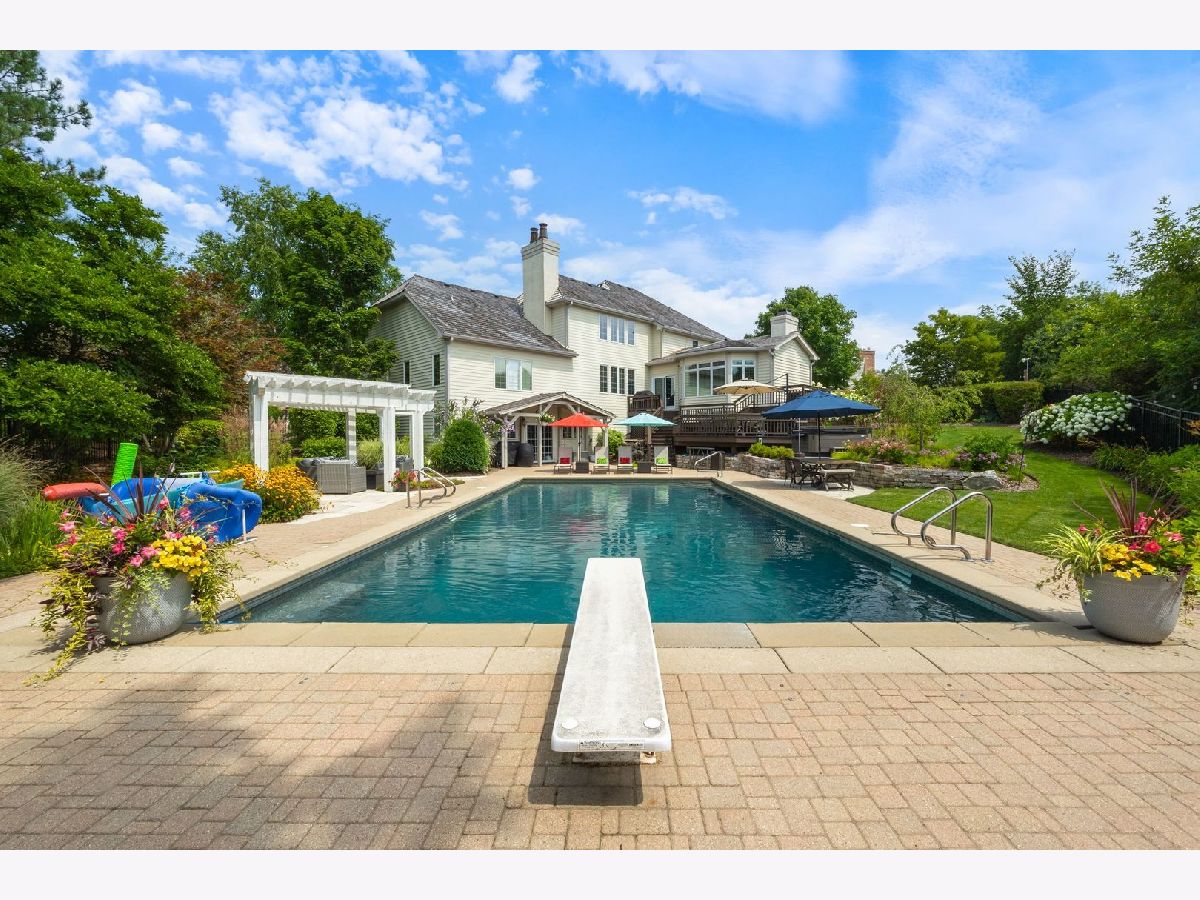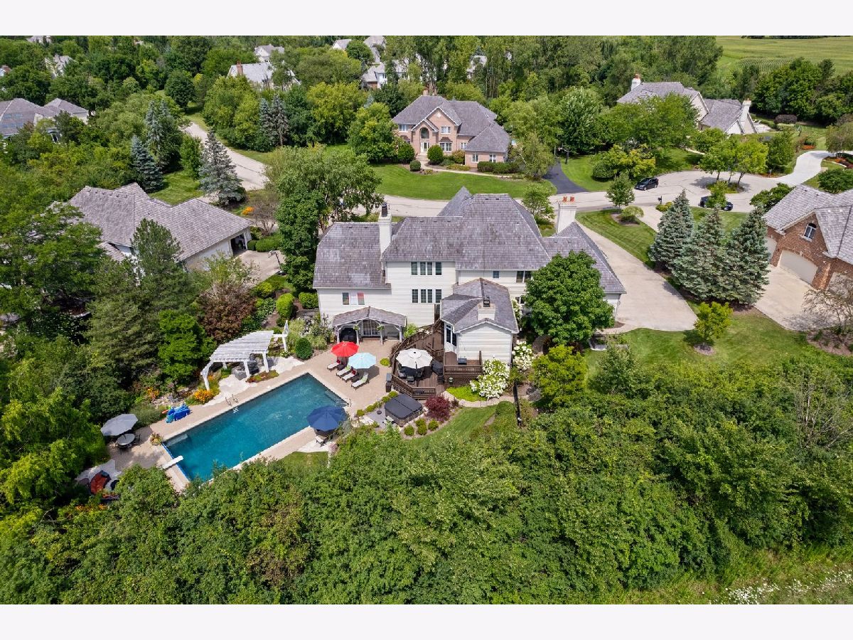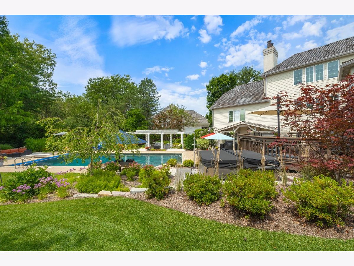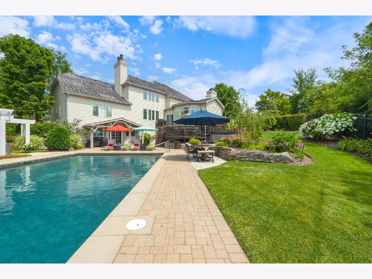 Located on a peaceful private cul-de-sac, this stunning and fully updated home in Libertyville's exclusive River Bend neighborhood is the penultimate of luxury. This Gold Key Award-winning remodel, crafted by Great Rooms Designers & Builders, showcases exceptional design throughout. The newly updated chef's kitchen, featuring a spacious central island and professional-grade stainless steel appliances, opens to a welcoming family room with a striking granite-tiled fireplace and custom-built cabinets and bookcases. Just off the kitchen, the sunroom leads to a breathtaking backyard oasis, where you'll find a multi-tiered primecut aged cedar deck, heated inground pool, newly installed hot tub, paved patio, pergola, waterfall, and beautiful water features. The first-floor master suite is a sanctuary, complete with a cozy fireplace, built-ins, a spa-inspired luxury bath, and a custom walk-in closet. Upstairs, you'll find five additional spacious bedrooms, including two full bathrooms. The newly finished walkout basement includes a stunning custom granite wet bar, exercise room, full bathroom, and a second laundry for added convenience. Ideally located a short drive from quaint downtown Libertyville, near Independence Grove Forest Preserve, with its water sports, scenic trails, and summer concerts, and offering easy access for commuters to Route 94 and Metra Rail. This home is a perfect blend of luxury living, serenity, and unmatched convenience. A few of the many updates: NEW Cedar Roof '23, Hot Tub '23, Basement Finished '22, Furnace/AC '20-'21, Water Heater '20-'21, Kitchen Island, Counter and Cabinet Updates '19, Dishwasher '19, Double Oven '19, full list available.