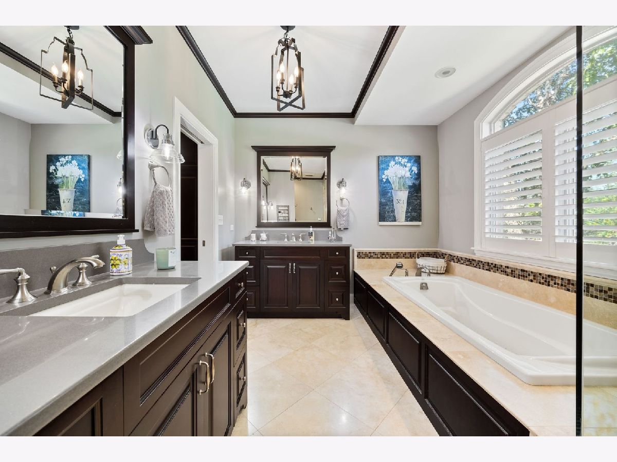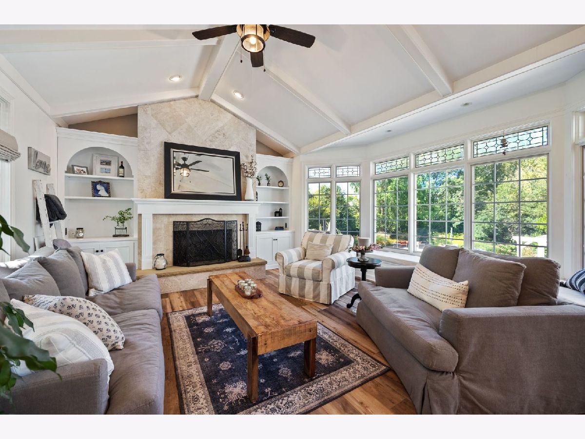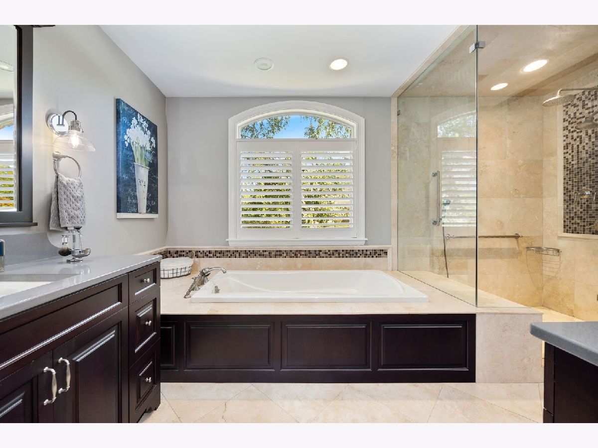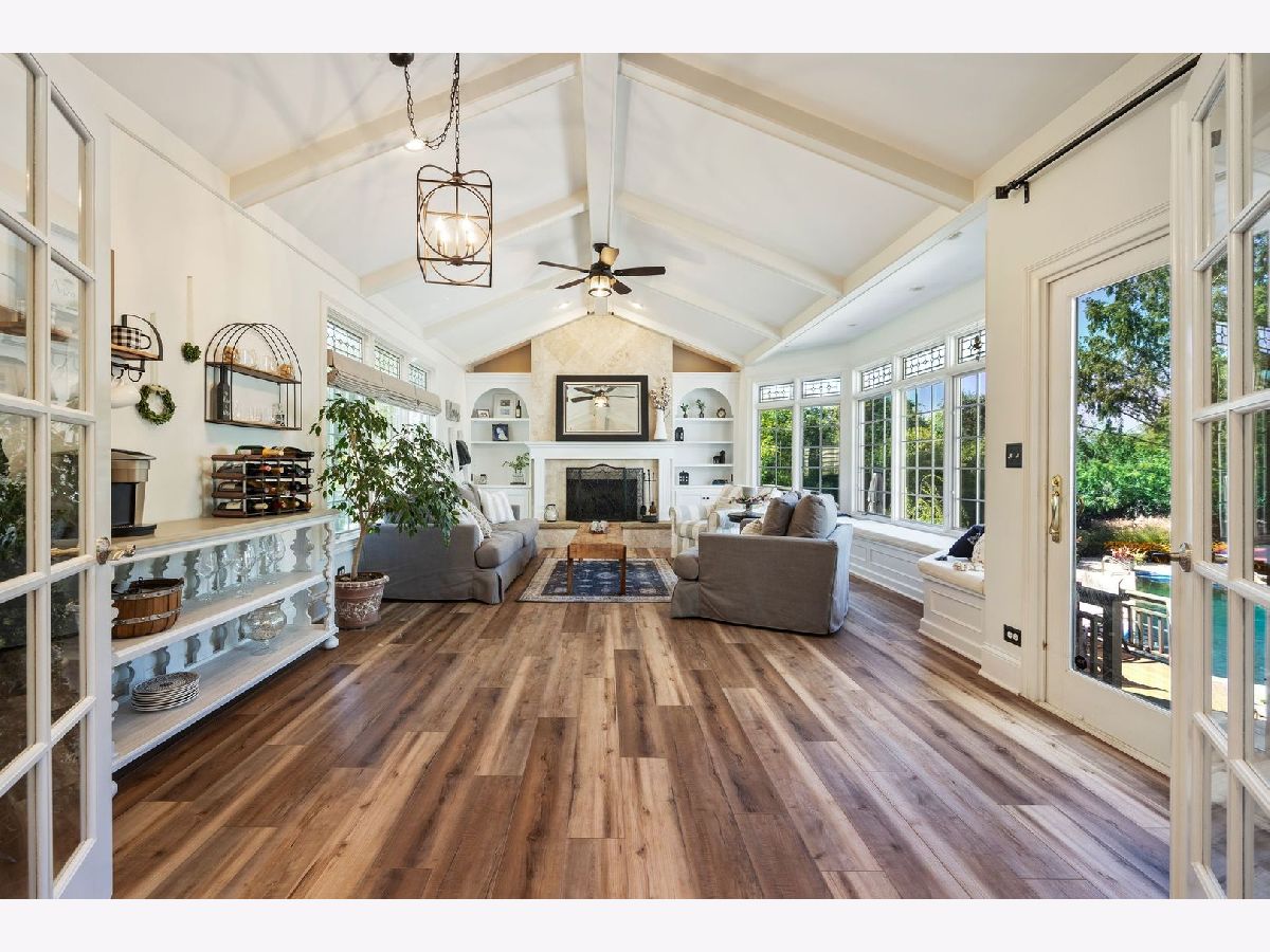 Located on a peaceful private cul-de-sac, this stunning and fully updated home in Libertyville's exclusive River Bend neighborhood is the penultimate of luxury. This Gold Key Award-winning remodel, crafted by Great Rooms Designers & Builders, showcases exceptional design throughout. The newly updated chef's kitchen, featuring a spacious central island and professional-grade stainless steel appliances, opens to a welcoming family room with a striking granite-tiled fireplace and custom-built cabinets and bookcases. Just off the kitchen, the sunroom leads to a breathtaking backyard oasis, where you'll find a multi-tiered primecut aged cedar deck, heated inground pool, newly installed hot tub, paved patio, pergola, waterfall, and beautiful water features. The first-floor master suite is a sanctuary, complete with a cozy fireplace, built-ins, a spa-inspired luxury bath, and a custom walk-in closet. Upstairs, you'll find five additional spacious bedrooms, including two full bathrooms. The newly finished walkout basement includes a stunning custom granite wet bar, exercise room, full bathroom, and a second laundry for added convenience. Ideally located a short drive from quaint downtown Libertyville, near Independence Grove Forest Preserve, with its water sports, scenic trails, and summer concerts, and offering easy access for commuters to Route 94 and Metra Rail. This home is a perfect blend of luxury living, serenity, and unmatched convenience. A few of the many updates: NEW Cedar Roof '23, Hot Tub '23, Basement Finished '22, Furnace/AC '20-'21, Water Heater '20-'21, Kitchen Island, Counter and Cabinet Updates '19, Dishwasher '19, Double Oven '19, full list available.