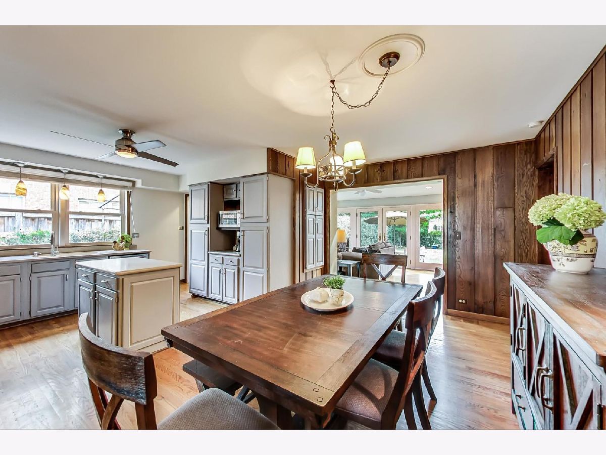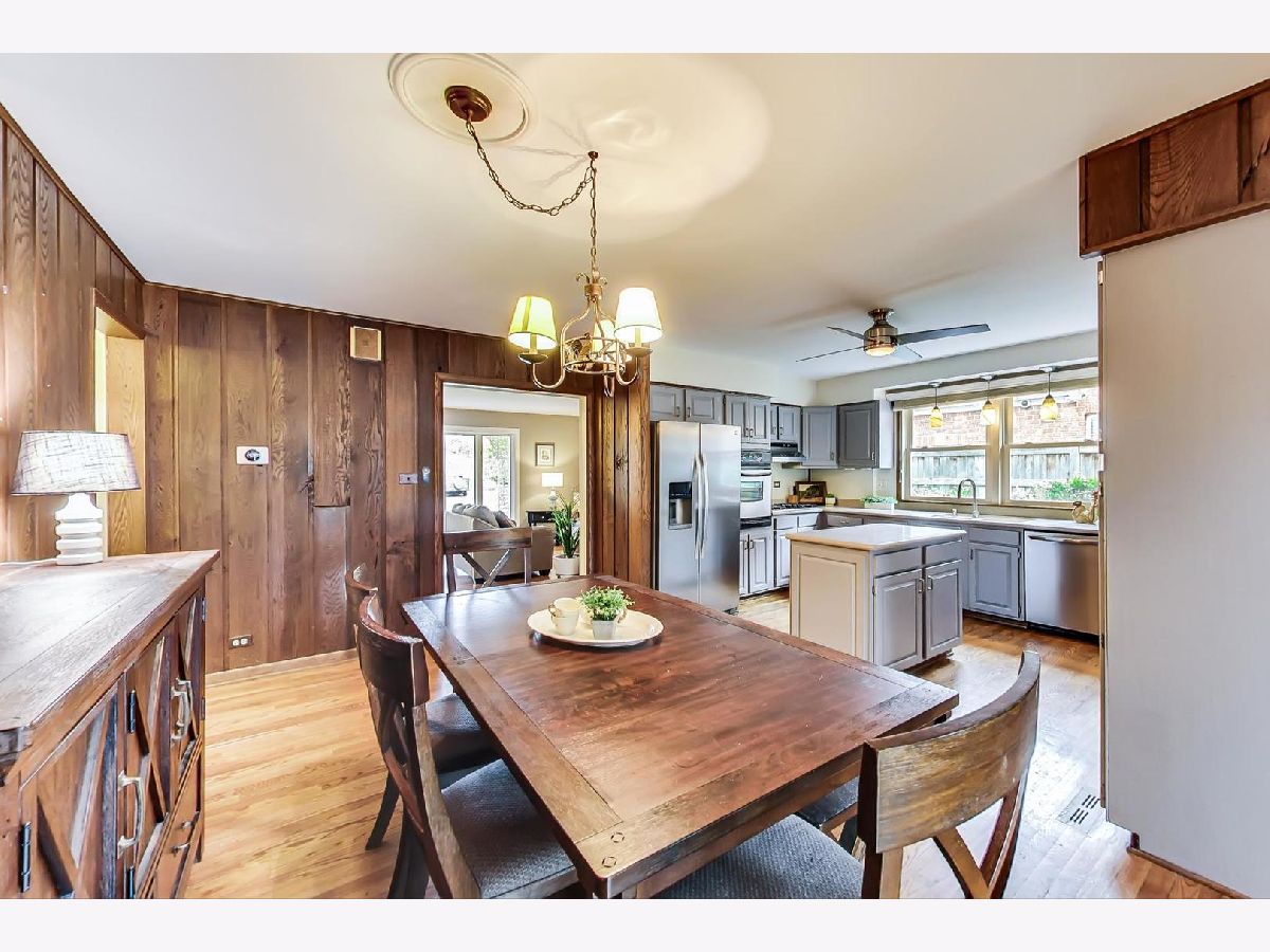 Wonderfully updated, expanded brick and stone ranch in awesome Park Manor neighborhood! Gracious Foyer leads into elegant Living Room with wood burning fireplace and oversized bay windows overlooking front porch. Large Dining Room comfortably accommodates a large gathering and opens into the updated Kitchen featuring Corian countertops, stainless steel appliance, plenty of cabinetry and island. Entertaining is a breeze with adjacent Family Room featuring two new skylights, built-ins, gas log fireplace and French doors to expansive backyard. Oversized Owners Suite with spacious closets and renovated Full Bath with beadboard wainscotting and subway tiled surround shower. Additional two generously sized bedrooms share updated Hall Bath. Lower Level provides space and entertainment for the whole family and includes Recreation Room with fireplace, built-ins, wet bar, Game Room, optional 4th Bedroom, Full Bath, Laundry and tons of storage. Other highlights include: attached garage, gleaming hardwood floors, fenced yard, shed, freshly painted, new dishwasher, concrete patio & driveway, newer roof and more! Just blocks to Metra, library, schools, parks, sledding hill, tennis courts, swimming pool, golf, dining, shopping & minutes to I-94. Check out 3D tour and video.