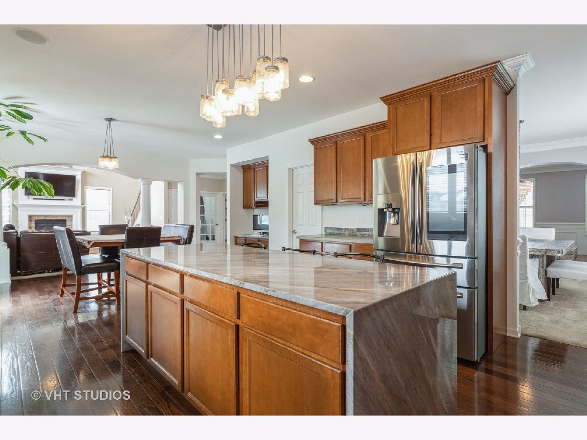Beautiful and Spacious Home with one of the best Open Floorplans in the Neighborhood! Hardwood Floor Entry through to Kitchen showcasing Exquisite Quartzite Countertop, Large Island, High End Appliances, and a Large Walk In Pantry. Office with Glass French Doors on Main Level. Custom Woodwork around Stone Fireplace in Large Family Room with Vaulted Ceiling. Duo Staircase to Bedroom Level and You will love the openness of the upstairs Loft space bringing in Natural Light from all sides of the home! Master Suite has Luxury Bath, 2 walk in closets, and a bonus room; perfect for a Nursery, Sitting Room or 2nd Home Office. Built in Speakers in Kitchen, Office, Master Bedroom and Bath, and Backyard. Amazing Theatre Room in the Basement for all your stay at home Movie Nights! 2 Furnaces and 2 Air Conditioners. Beautiful Stamped Concrete Patio and Outdoor Gas Line for a Gas Grill in this lovely backyard setting. Don't let this super clean and move in ready home pass you by!