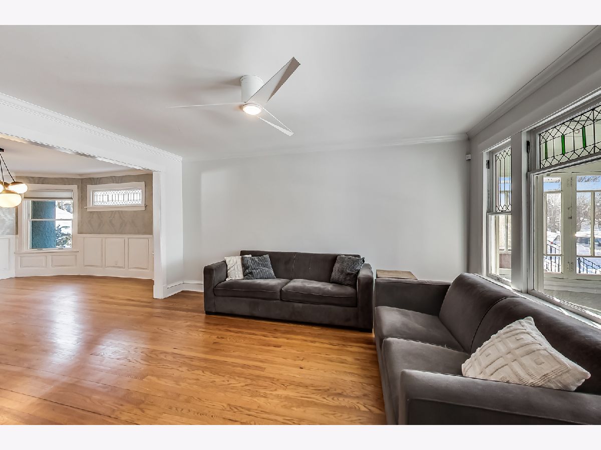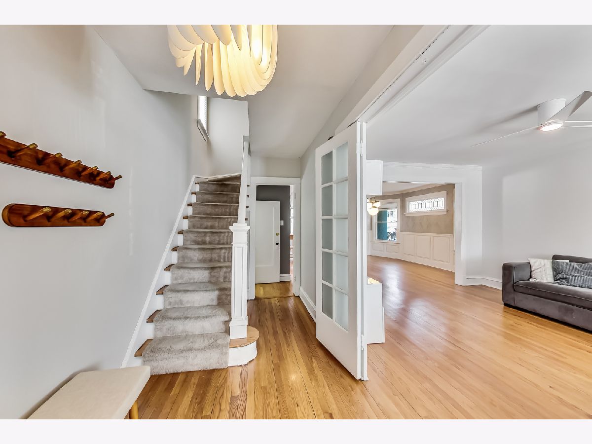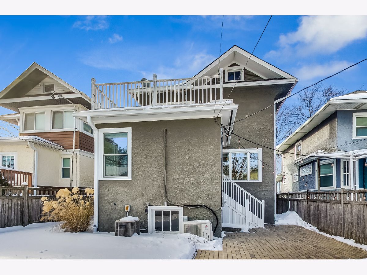 Feast your eyes on this American Foursquare home that is a perfect blend of the charming Oak Park craftsmanship combined with modern finishes. Brilliantly updated and move-in ready AND low maintenance living you've been looking for as a homeowner. Striking curb appeal with the professional landscaping, AND a convenient and rare front driveway designed with concrete and river rock. Enter into the inviting covered porch to sit and relax or use as a great mud area prior to entering the home! Walking into the home you'll notice the natural flow and the character of the picture window accented with original stained-glass. French doors open to the bright and sunny living room and formal dining room. Kitchen features ample amounts of storage in the 42' shaker style cabinetry, SS appliances, granite countertops and LARGE picture window overlooking the beautifully landscaped backyard. The family room off the updated kitchen is a perfect versatile space great for a home office, playroom or TV room. 3 large bedrooms upstairs, one includes a staircase leading to the 3rd floor/attic for expansion possibilities. The primary bedroom easily accommodates a king size bed, with updated full en-suite bathroom, plenty of closet space, and a huge rooftop patio with new decking to sit an enjoy your morning coffee or evening beverages. The recently finished basement features custom details-a movie room with pro-grade built-in surround speakers that can also be used as a bedroom/guest room, shelving with African teakwood, built-in pantry, an office with pocket doors, a great laundry/workout area and updated half bath. Don't miss the extra storage in the unfinished crawl space. The backyard has lots of versatile entertaining space. Excellent location blocks from Longfellow Elementary school, parks, restaurants, shops, 290, & both blue and green line.