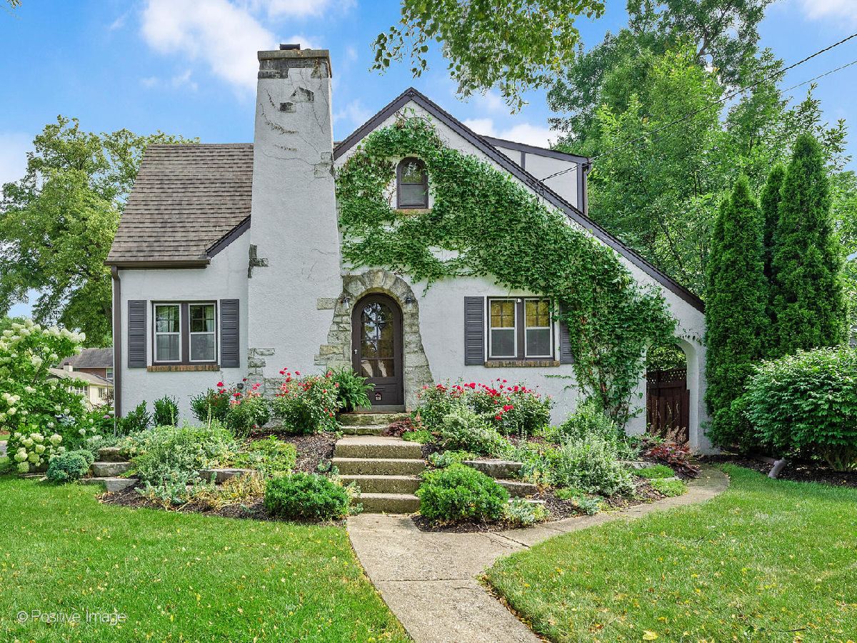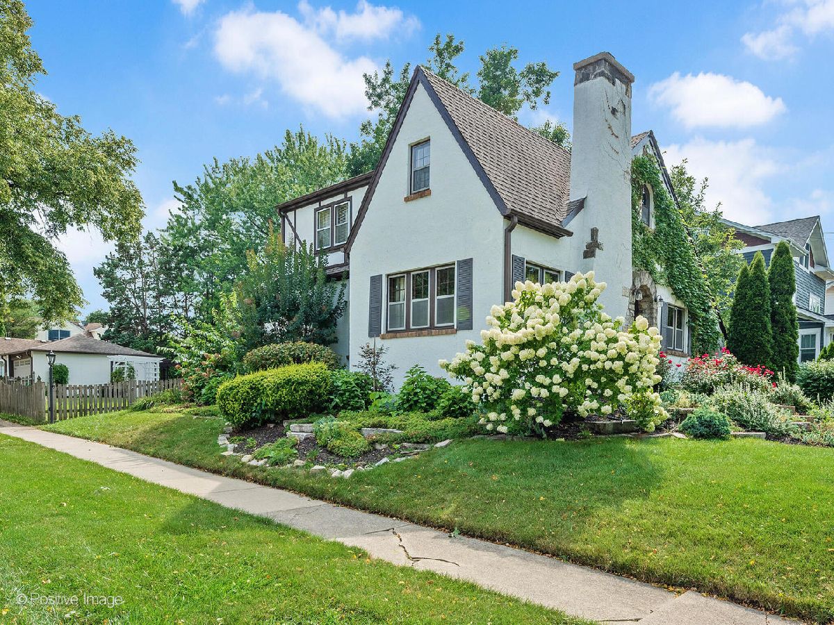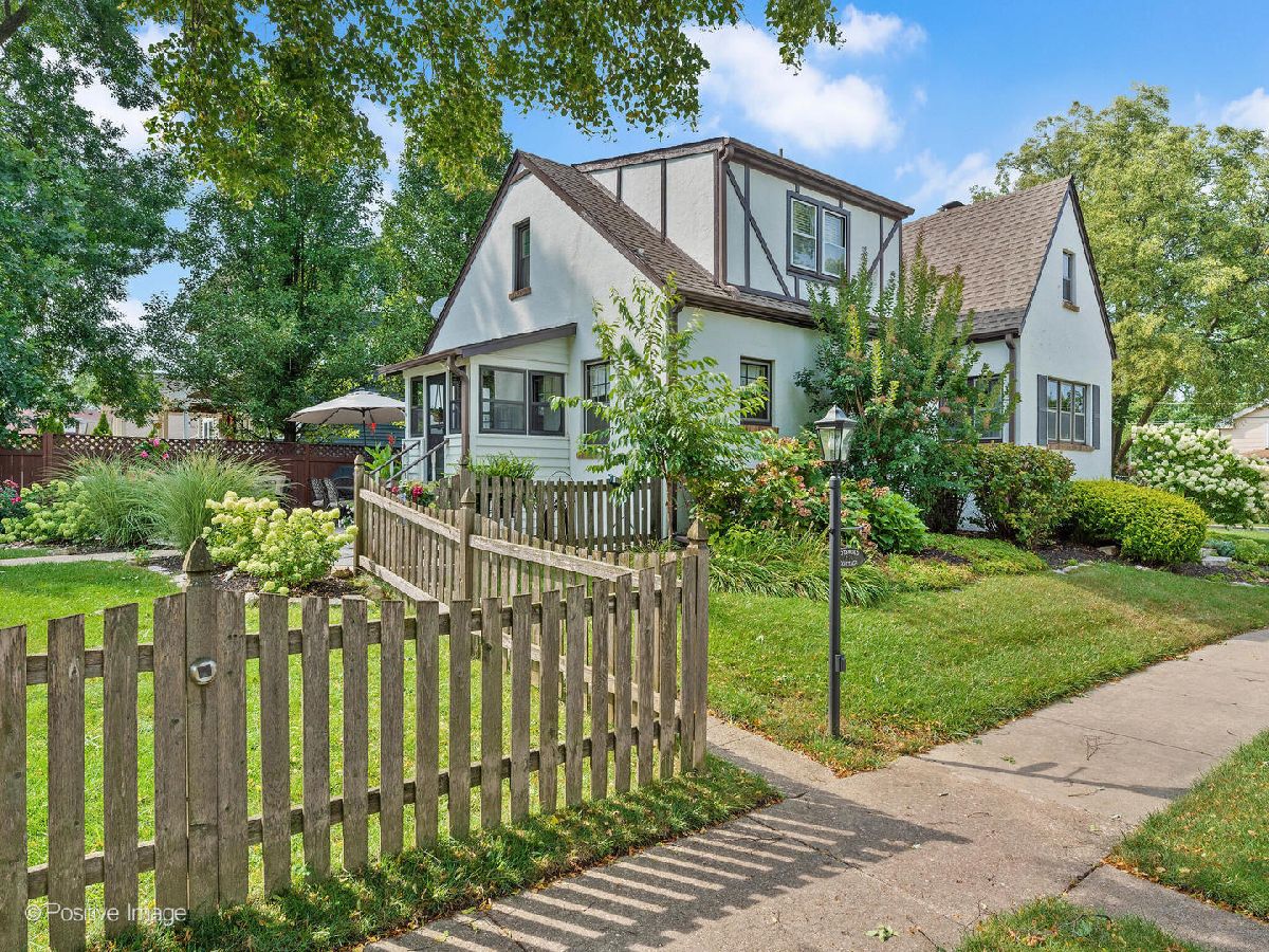 DON'T MISS YOUR CHANCE TO LIVE THE FAIRYTALE! This gorgeous 1932 English Tudor is exceptional in both charm & livability. In the style of homes from Cotswald, England the storybook charm is seen in the steeply pitched roof, multiple gables, and arched doorway. Relax under the pergola on the deck in the backyard bursting with perennials including roses, hydrangeas, grasses & hostas. Or entertain effortlessly on the flagstone patio. Original hardwood floors, woodwork, and windows have been cherished and well-maintained. The cozy living room with a gas fireplace & archway opens to the dining room. The kitchen boasts granite countertops and stainless-steel appliances including a 6-burner stove. On the main level, two bedrooms, one currently an office, both with hardwood floors and a gorgeous full bath. Follow the staircase up to the second floor into the loft space. The primary bedroom with Maple hardwood flooring offers delightful views of the front yard through the arched window alcove and the convenient walk-in California closet makes the most of the space. Another bedroom with quaint built-in shelving and a full bath with a relaxing clawfoot soaking tub. The full basement provides tons of storage and a transferrable waterproofing warranty. In the heart of all that is Wheaton, walking distance to Wheaton French Market (only 7 minutes away!), downtown dining & shopping, and Wheaton College. Short 15-minute walk to both Wheaton Metra Stations. Hike the nearby Prairie Path. Let your story start here!