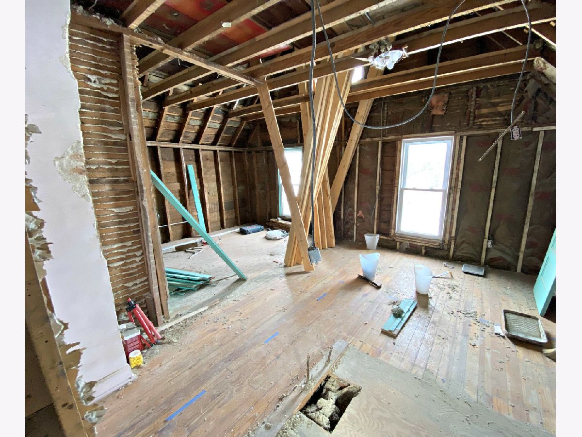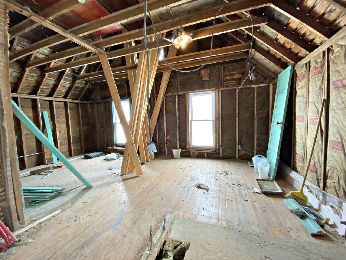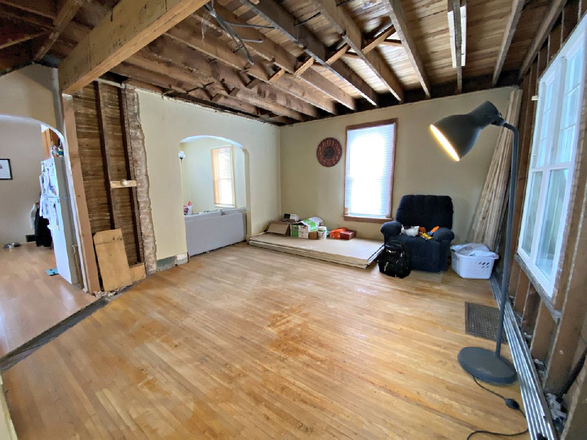 BRING your VISION! This charming Vintage home is being sold mid-stream in the renovation process. One GENEROUS bedroom remains, while the vision of a larger 2nd floor bathroom and perhaps attached Master Bath kicked in. Bedrooms 2 and 3 have been gutted - let the remodel begin! Hardwood floors throughout. (Note the carpet in the LR & DR was just removed and the floors need to be refinished) Newer roof (per 2014 listing data) newer replacement windows and new front door. 1.5 Car garage with work space & a lovely yard. Woodstock Bath in the basement working perfectly! You'll love the arched doorways & the interior attic walkup stairs. Home also has a new sewer cleanout & PVC sewer line & 2020 Hot Water Heater. Solid home to make a solid investment in, Sold AS IS. 14 min walk to Square entertainment from this great location & a hop, skip to Ryders Woods & Dick Tracy Park!