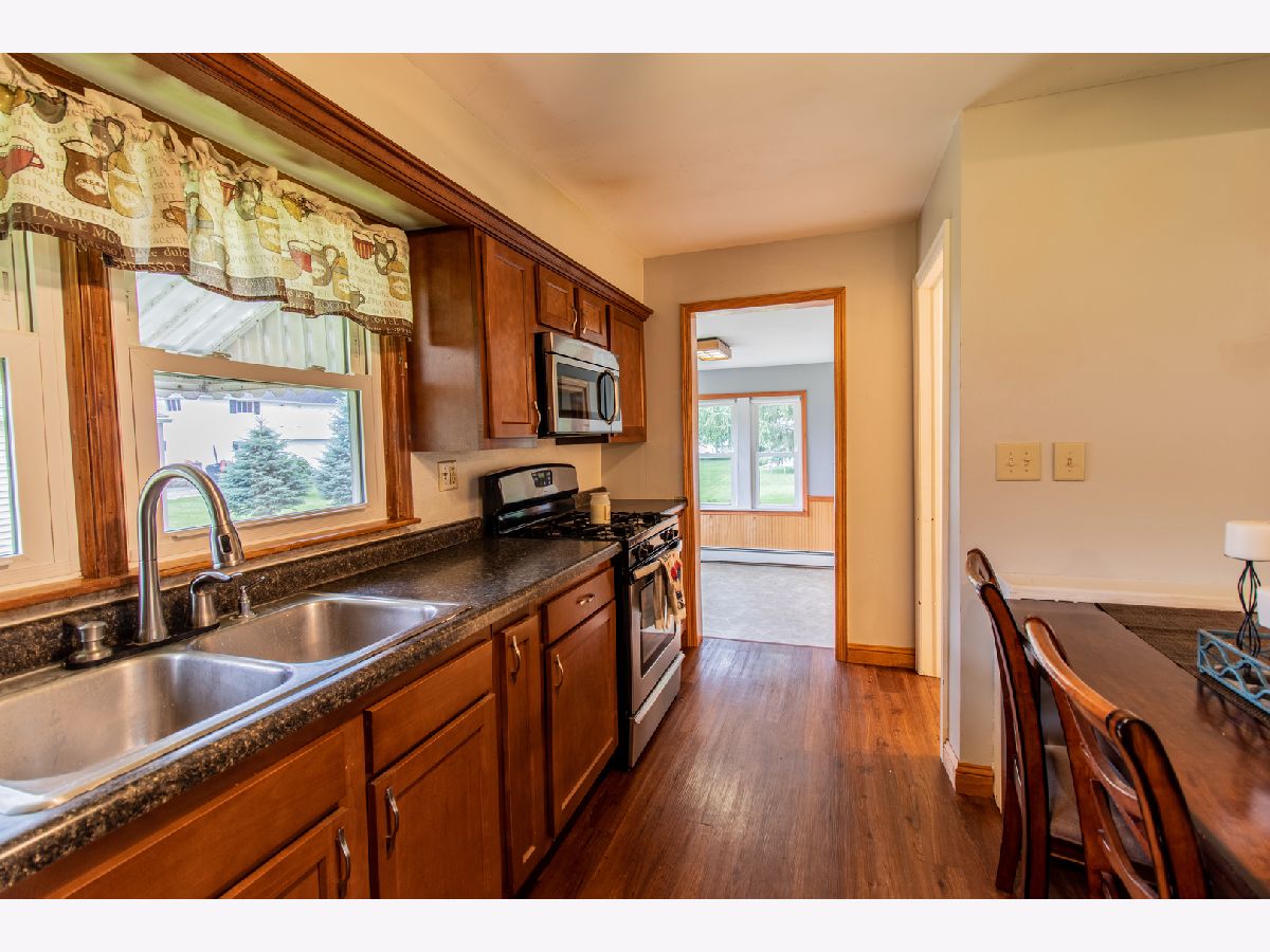 This efficient and updated 3 bedroom ranch home on a full partially finished basement with an open floor plan includes a completely remodeled kitchen in 2015. Waterproof vinyl plank flooring through all main areas of the house and new carpet in 2 of the 3 bedrooms in 2019. Large heated (with 120,000 BTU furnace) 29' x 19' 2.5 car garage plus additional 12' x 18' 1 car garage provide all the workshop and storage space you'll ever need. Vinyl windows throughout offer a nice view of the 20' x 20' concrete patio and spacious yard.