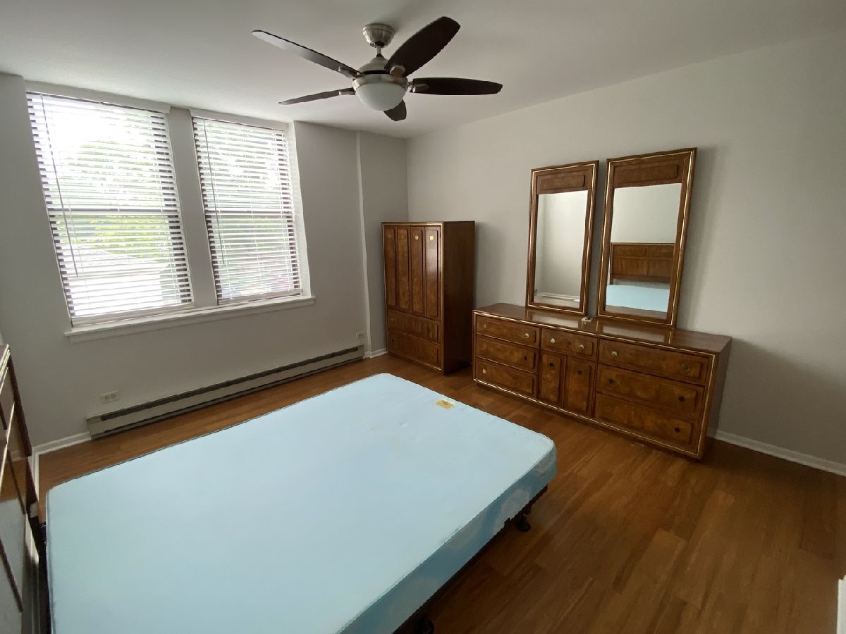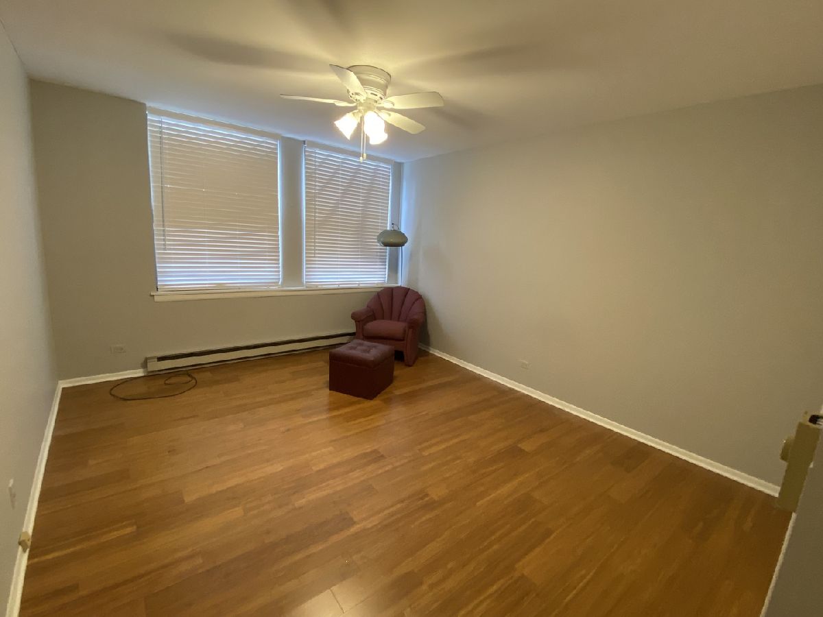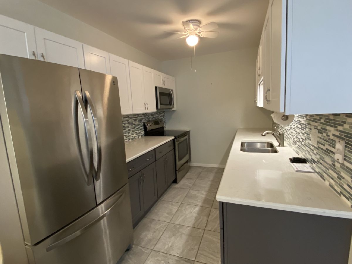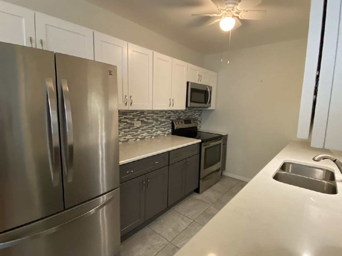 One of the largest and rarely available two bedroom unit in 55+ building. Features nice size rooms, great closet space and is filled with natural light. The bright updated kitchen has new stainless steel appliances, quartz countertops, white & gray cabinets with ample space for cooking. New flooring has been installed throughout the unit. Both bedrooms offer ceiling fans and good closet space. All windows recently repaired. This unit comes with garage space G-8. This unit is located near elevator and laundry. A party room is located on the first floor for entertaining a larger group. Great location close to shopping and expressways. Seller prefers to leave furniture.