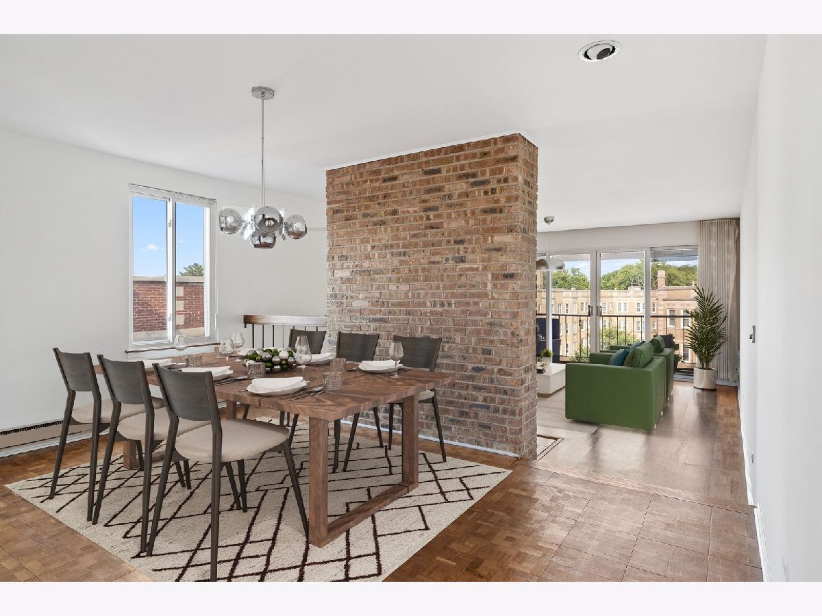 Welcome home to this expansive penthouse in beautiful southeast Evanston. Cool mid-century details throughout! Stunning living room with hardwood floors, 9' ceilings, exposed brick, wood-burning Malm fireplace, and glass doors that open to a covered balcony overlooking lovely Hinman Avenue. A separate formal dining room features an original chrome chandelier and parquet floors. Spacious eat-in kitchen with white cabinetry and updated appliances. The primary suite includes a full bathroom, deep walk-in closet, and plenty of room for a king-sized bed. This home has an incredible amount of thoughtful storage, including two walk-in closets and six additional closets to help you stay organized. This well-maintained, professionally managed, ELEVATOR building offers free laundry, assigned storage, and one exterior parking space. Exceptional location, just blocks from the lakefront beaches, Lincoln Elementary, parks, and Main Street Metra Station and Purple Line stops.