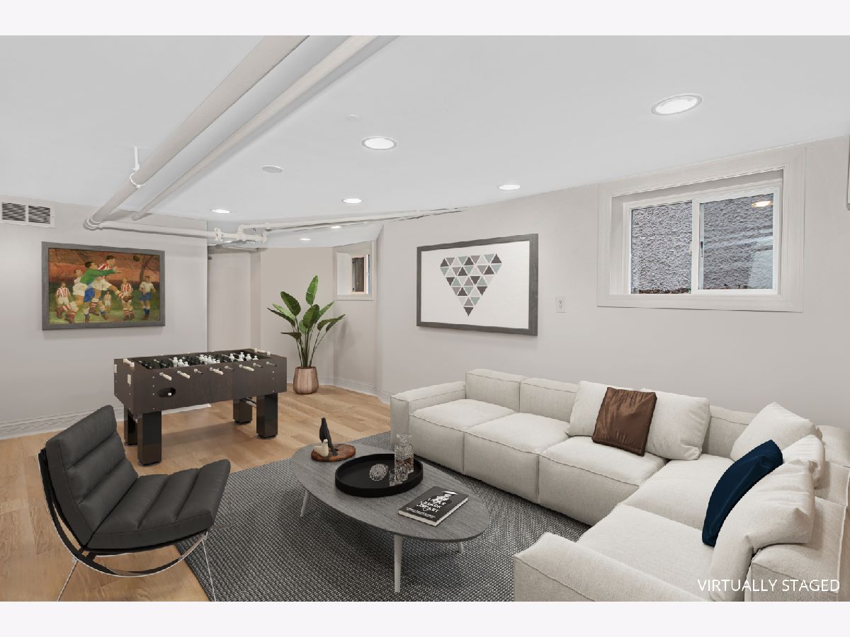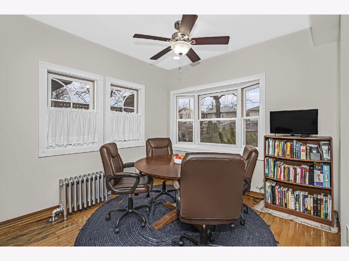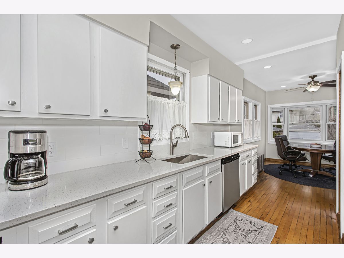 Meticulously maintained 4 bedroom/2.1 bath home situated on a generous lot, centrally located, cul-de-sac block in beautiful Oak Park. Enter through the enclosed 3-season front porch into the home's warm foyer leading to the light-filled living room, where you will take in the beautiful hardwood floors that lead into the dining room, with bay windows, and French doors leading to the first floor family room complete with skylights. The family room overlooks the back yard and accesses the large deck, perfect for outdoor meals in the summertime. You will love that the eat-in kitchen is connected to the family room and has windows on the north, south, and east walls. The kitchen is currently being freshened with new white cabinets, quartz countertops and stainless appliances. There is also a newer half bath on the first floor. Head upstairs to find 4 bedrooms on the 2nd level all with hardwood floors. The primary suite has a large bath with a whirlpool tub and separate shower, and a large walk-in closet. The other 3 bedrooms are large and bright. The unfinished walk-up attic provides for additional usable space and/or storage. The newly finished lower level (2024) offers versatile space for recreation, exercise, office space with laundry area. Lots of new: boiler (2020), New tear-off roof (2021), New gutters/soffits (2021), new sewer line to the street (2021), New Refrigerator (2024). Home is in the process of being repainted on the interior. 2-car garage plus 2 car parking pad. All of this in the Lincoln School area close to the Blue Line, restaurants and parks. Home is currently being painted and kitchen work is happening.