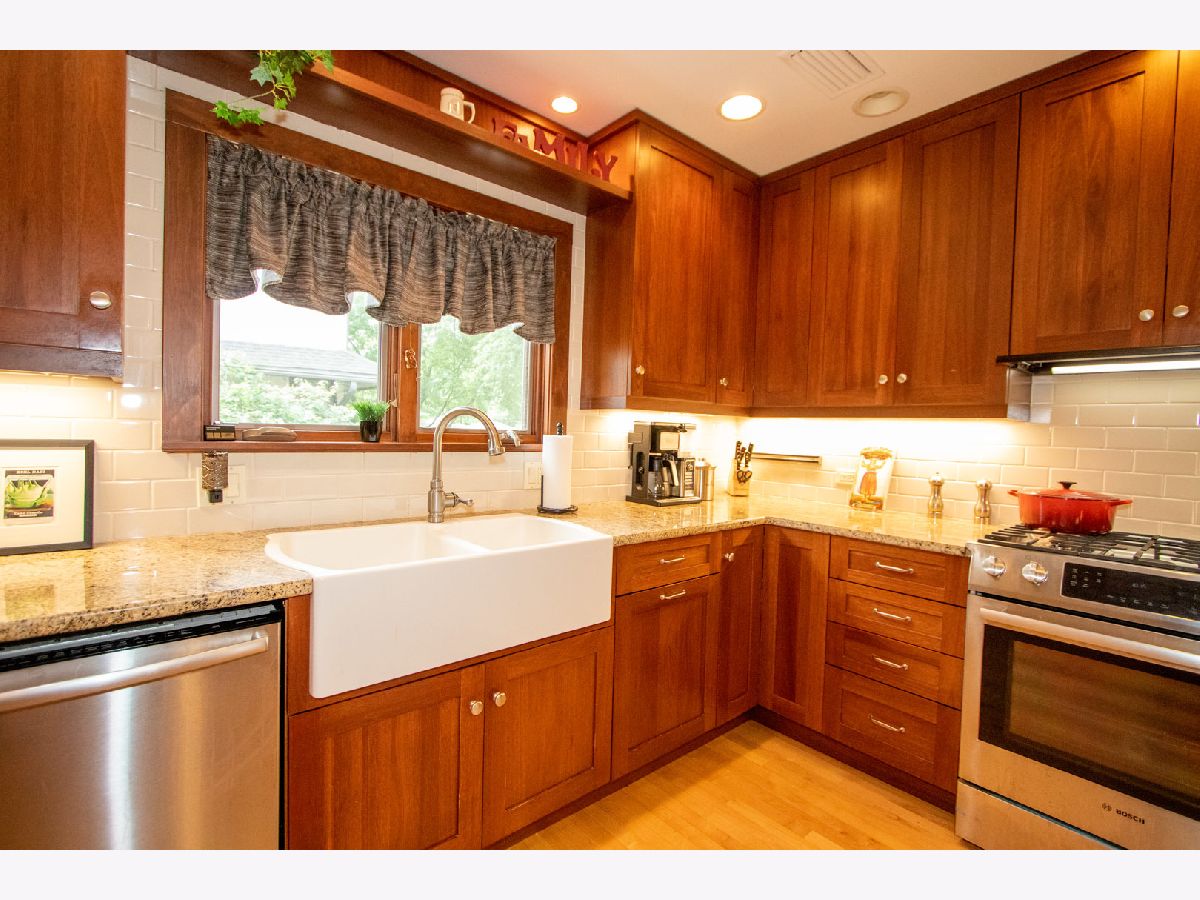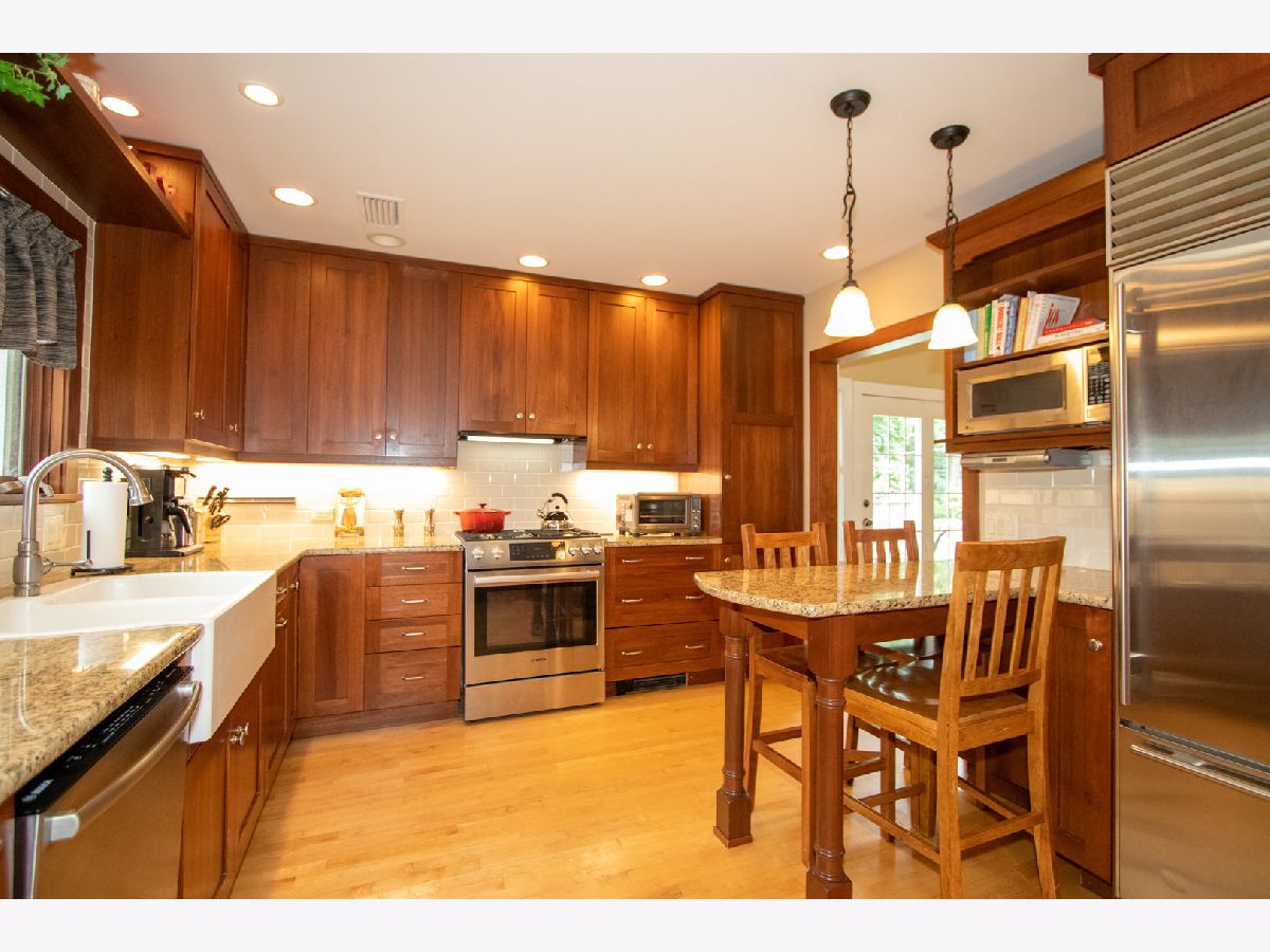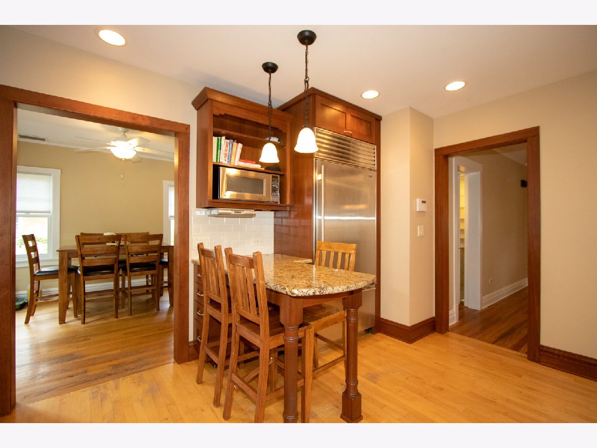 Vintage bungalow impeccably maintained on beautiful tree-lined street near award winning elementary school. Central location - walking distance to schools; churches, parks and Metra. This house features hardwood floors on 1st floor; a gas burning fireplace with BI bookcases in LR: adjoining sun-room, custom oak radiator covers; a modern kitchen with maple flooring; 42 in cherry cabinets; granite counter tops; stainless appliances; Bosch range is new. BI breakfast bar in kitchen and adjoining breakfast room with maple floor; 3 full baths on each floor. Versatile floor plan: master BR on 1st floor; 2 BR's on 2nd floor and basement has finished BR; exercise and playroom, laundry and mechanical room. Gorgeous yard with patio; swing set and small deck. Side drive and 1 car garage. Boiler; central air new in 2018; basement has drain tile, 2 sump pumps; a Forte flood control system and radon system. What's not to like?
