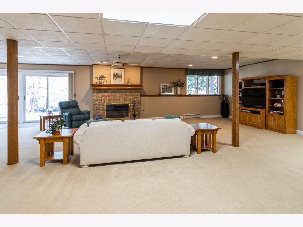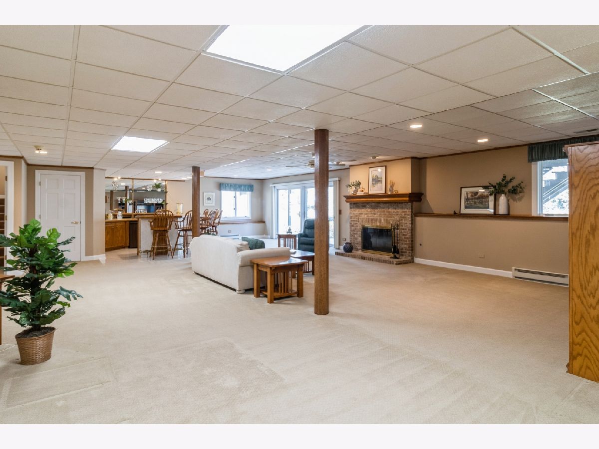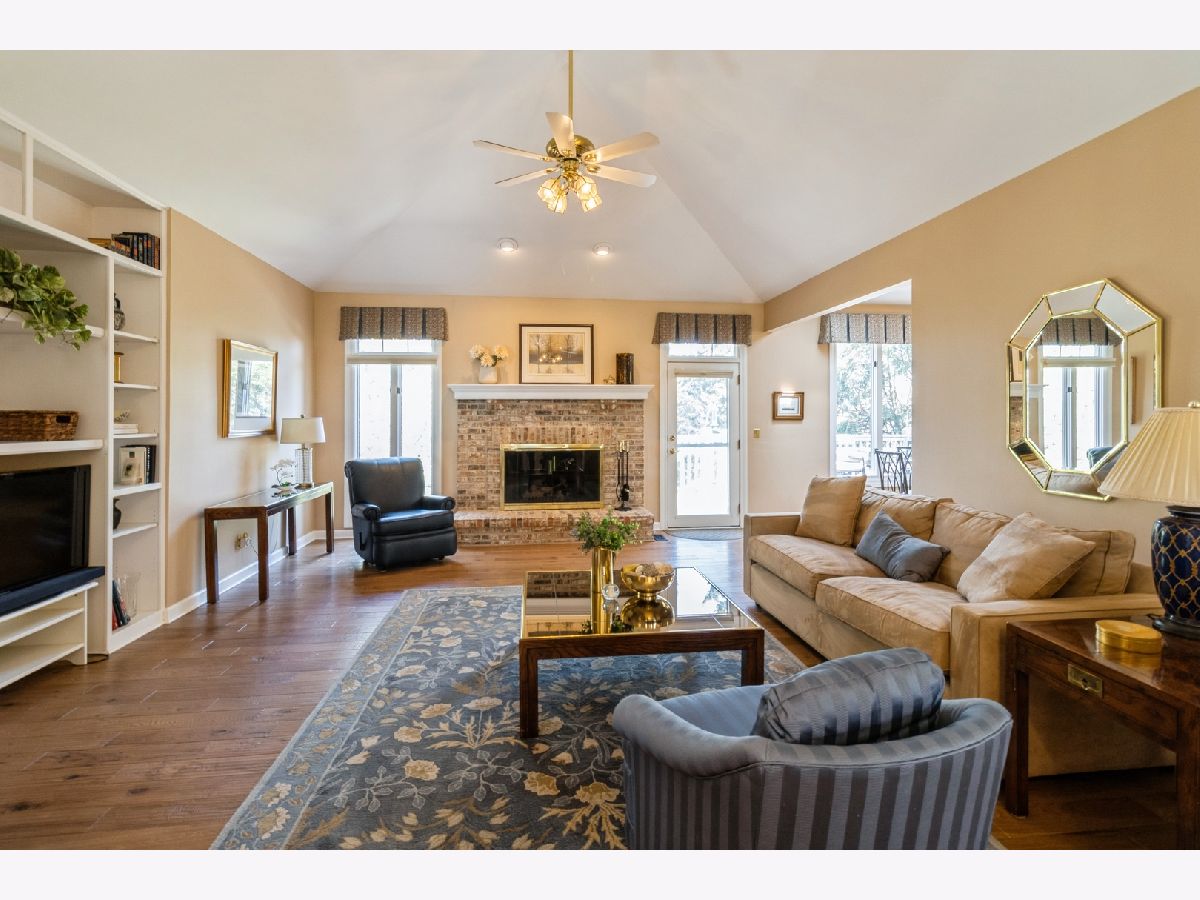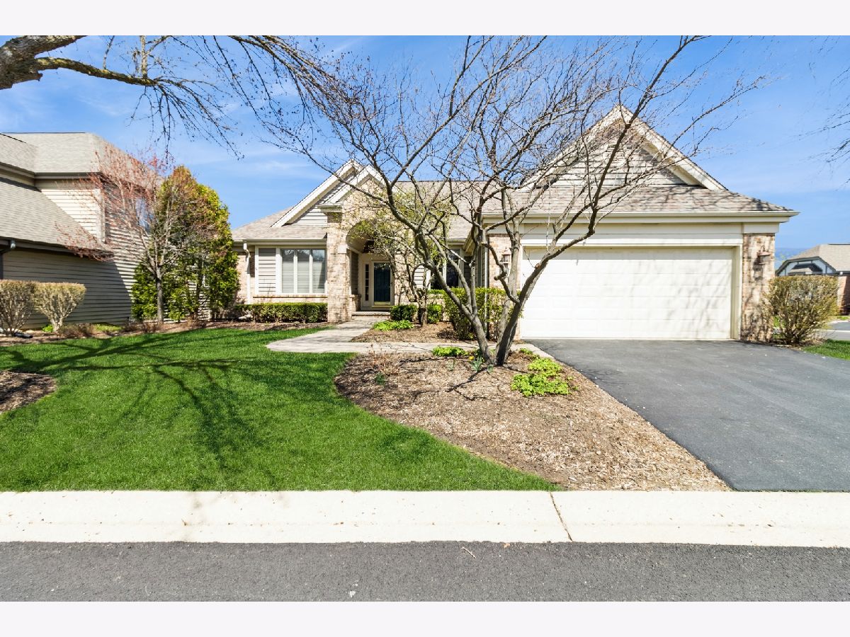 Welcome to 530 Vintage Drive in the highly desirable Fairways of Boulder Ridge! This beautifully maintained brick and cedar ranch home features 3 bedrooms plus a finished lower-level 4th bedroom/exercise room, 3 full bathrooms, and a 2.5-car attached garage. Curb appeal shines with professionally landscaped grounds, a brick paver walkway, and a charming covered front porch. HOA includes lawn care and snow removal for low-maintenance living year-round. Step inside to an open-concept layout with engineered hardwood floors and a generous amount of natural light throughout the home. The spacious family room boasts vaulted ceilings, a cozy gas-start fireplace with brick surround, and a built-in media center-perfect for relaxing or entertaining. The large eat-in kitchen is complete with stainless steel appliances, solid surface countertops, a tile backsplash, and rich cabinetry. From the kitchen dining area, traditional door leads to a nicely sized deck-ideal for entertaining or simply enjoying the peaceful privacy of your surroundings. A formal dining room with tray ceiling adds elegance to your gatherings. The oversized first-floor master suite features a tray ceiling, large walk-in closet with additional storage under a custom window seat, and a beautifully renovated master bath with dual molded sinks, granite countertops, custom lighting, and a luxurious dual shower with seating. A second updated full bath and two additional bedrooms-including one currently used as a home office/den with tray ceiling and walk-in closet-complete the main level. Head downstairs to the fully finished lower-level walkout basement, where you'll find an expansive recreation space with a custom wet bar (six barstools included) with included beverage refrigerator, a second gas-start, wood-burning fireplace with a brick accent wall, and oversized sliders that lead to a large concrete patio-perfect for outdoor entertaining. The lower level also includes a finished exercise room that can easily serve as a 4th bedroom, with a third full bath conveniently located just outside the door. Additional highlights include two large storage rooms, updated mechanicals, a water softener, two included basement refrigerators, newer hot water heater, a high-efficiency furnace, and a Carrier humidifier. Loads of mature landscaping adds to the backyard privacy plus additional guest parking close-by. This original-owner home has been meticulously cared for and is move-in ready-don't miss your opportunity to live in one of Lake in the Hills' most desirable gated communities!