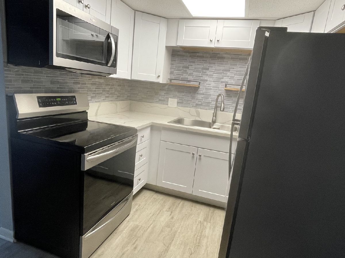 If you are looking for an affordable, move in ready condo in a welcoming 55+ community, this is a real gem. Convenient first floor unit in elevator building offers vinyl plank flooring throughout, updated kitchen with backsplash, white cabinets, and stainless steel fridge, range, and microwave. Updated bathroom with modern vanity and finishes. New sliding glass doors with blinds between the glass and new bedroom window with sliding shades. The bedroom features 2 large closets to extend your storage space. Secure building with lobby area, lounge area, exercise room, coin laundry. Exterior unassigned parking space and storage locker too. Recent upgrades include 2020: new bathroom sink & vanity 2020: kitchen remodeled with new appliances, cabinets, & sink 2020: Central Air Conditioning replaced 2020: Patio door and bedroom window replaced 2022: microwave replaced 2023: bathroom tub drain, tub, wall tile replaced Great unit in excellent location near I-355 and major roads for convenient travel. Close to everything you need.