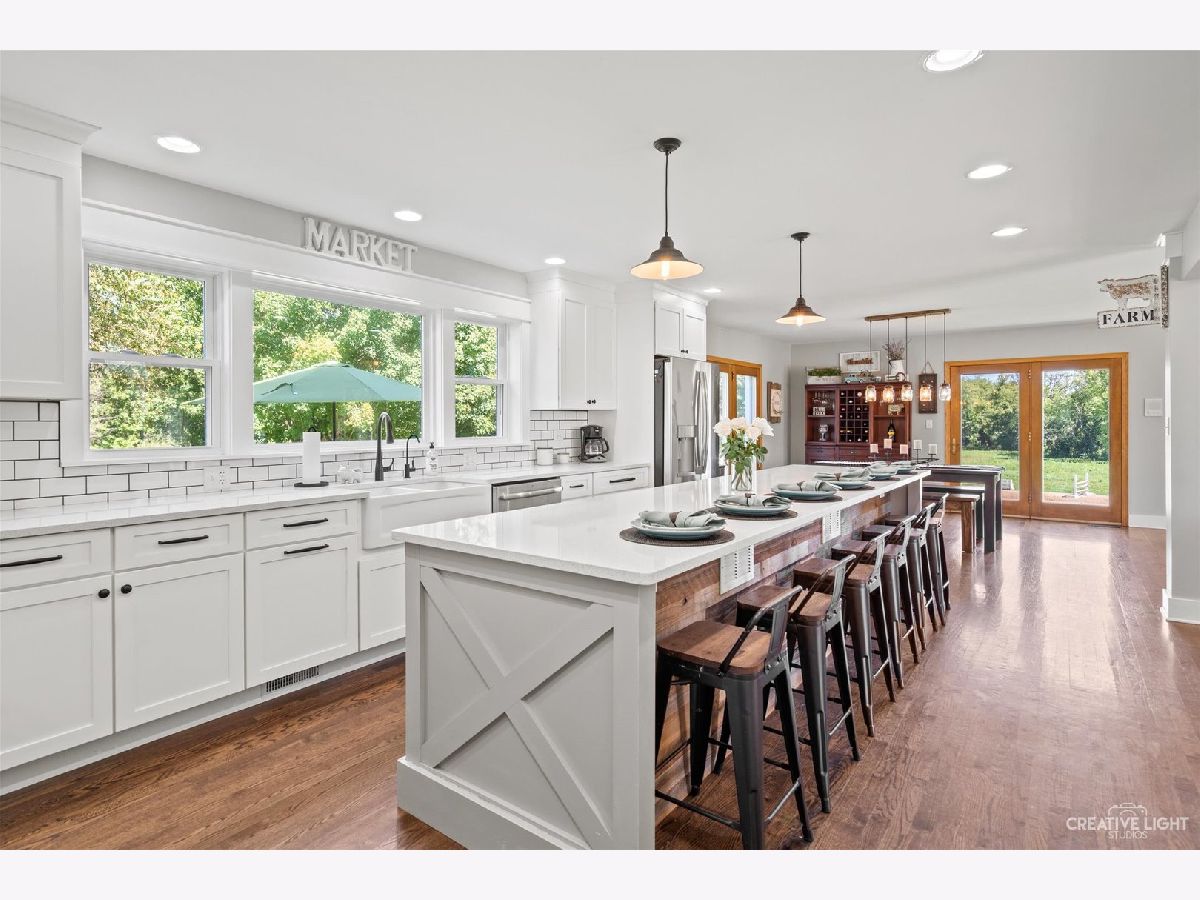 Please make sure to watch our video! You will feel the sense of home and serenity from the moment you turn in and enter the long, private, tree-lined drive. Bring your horses and animals or we can potentially include the pigs, chickens, ducks and turkey's already on the property! This majestic 7 acre working farm is perfect for the family looking for a true "out in the country" setting, while remaining just minutes from all the conveniences of town. Don't miss the groomed bridle path that takes you around the entire property and along your very own stream. You can also connect to the bike path that provides a beautiful 10-minute ride to the Rusty Nail Saloon or a 45 min trail ride to Glacial Park! The Chain of Lakes is nearby and is just a 7-minute drive/trailer ride away as well. Inside, this magnificent and recently remodeled home is light, bright, and open concept with gorgeous hardwood floors, all new trim, and fresh designer paint throughout the first floor. You will love the soaring ceilings and loads of windows that provide tons of warm natural sunlight and incredible panoramic views of the grounds. The great room is open to the dining room and the huge country kitchen, featuring a massive granite island with bar seating for 6, custom 42" shaker cabinetry, granite countertops, subway tile backsplash, a large walk-in pantry, and all new stainless appliances including an upgraded double oven/range with WiFi, a French door fridge, and a whisper quiet dishwasher! Down the hall you'll find the private 1st floor master bedroom which includes an attached en suite with a full bath and large walk-in closet! Brand new mud room with custom cabinets, built-in hall tree, stackable front load washer and dryer, and utility sink! Head upstairs to a loft space open to the first floor - perfect for an office space or potential 4th bedroom. The 2nd floor also has a full hall bath and two additional guest bedrooms, all with new carpet and loads of closet and storage space. There is even a finished attic space perfect for a hidden playroom for the little ones. There is a 2-car attached garage, 30-year roof was installed in 2011, new furnace, A/C, water softener and reverse osmosis system installed in 2017, h2o heater in 2021! Head outside and follow the brand-new paver brick walkways and patio to your own 30x50 Cleary pole barn with water, electric, and exhaust systems! It comes complete with 4 stalls with individual electric and upgraded footing. There is also a large fully insulated cedar tack room with 6 saddle racks and a heated feed room! Concrete aisle way, 3 sets of cross ties, hay loft that holds approx. 100 bales hay, new garage door opener for a 12' overhead door! All fencing was added in 2017 and is top of the line RAMM Brand electro braid horse fence with solar powered electric chargers! The 120x60 outdoor arena has brand new arena footing with 4" base of limestone screenings and 4" of sand! There are 2 additional large limestone paddocks each with a shelter! There are 1.67 acres which are cleared and ready to be fenced! There is also an additional 3 car detached, fully insulated garage with a loft able to store 650 bales of hay! One bay is enclosed, heated and leads to a separate fenced area that's set up to accommodate up to 100 chickens and other small livestock. Great location, close to beautiful Peterson Park beach, near tons of shopping, and in the Johnsburg school district! Owner said she gets quick delivery from Uber eats, door dash, shipt etc. Don't miss this rare opportunity... WELCOME HOME!