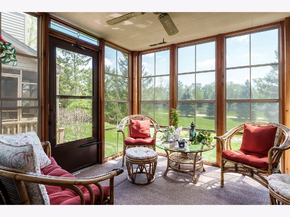 Preservation Pointe ranch style condo at it's best. Walk-in to soaring ceilings in the formal dining room and living room combo featuring a gas log fireplace with a generous window overlooking the park-like setting. The kitchen features granite counters, plenty of cabinetry, pantry, wood flooring and access to cozy 3 season porch with floor to ceiling windows. Master bedroom with vaulted ceiling, double vanity, large walk in closet and tiled flooring. Additional bedroom, full bath with tile flooring and laundry complete the main level. Lower level consist of a partial exposure, family room with gas fireplace, wet bar with cabinetry, private office area, exercise room, space for game area, and full bath with tiled floor and jetted tub. The perfect entertaining space for family and friends.
