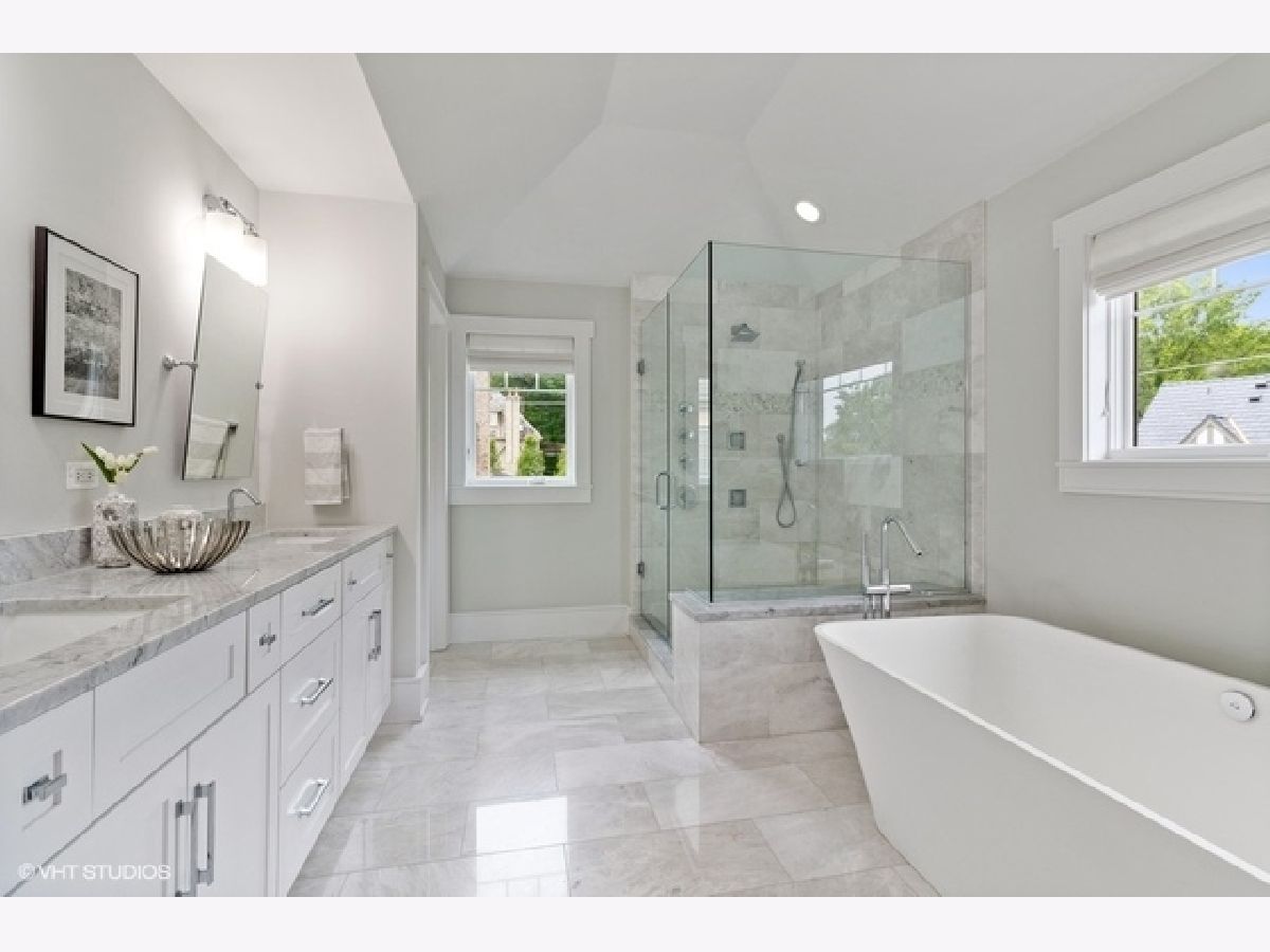 Stunning 6 bedroom, 5.1 bath home with attached garage in walk-to-everything Hinsdale location. This 4-year old home shows like new construction - with pristine hardwood floors, striking light fixtures, great ceiling heights, designer finishes and beautiful backyard - it is nothing short of gorgeous. The first floor is open and bright featuring a beautiful living and dining room, a sleek kitchen with custom white cabinets and marble counters, a huge island with quartz counters and seating for seven, and high-end appliances including Wolf and SubZero. The family room showcases a fireplace flanked by custom built-in shelves, and large windows display the outside retreat. The master bedroom suite with a custom wallpaper accent wall has a spa-like bath, separate shower and soaking tub and two walk-in closets. An additional three bedrooms with two more baths complete the second level. The third floor fifth bedroom and private bath are also an ideal space for an office. The lower level includes a large rec and game area, a wet bar with two custom glass wine closets and an additional 6th bedroom and full bath. The backyard is newly landscaped with a limestone patio and outfitted with sprinkler system. The result is outstanding! This home is steps away from downtown Hinsdale, two train stations and a park with tennis courts. You will want to call this one home!