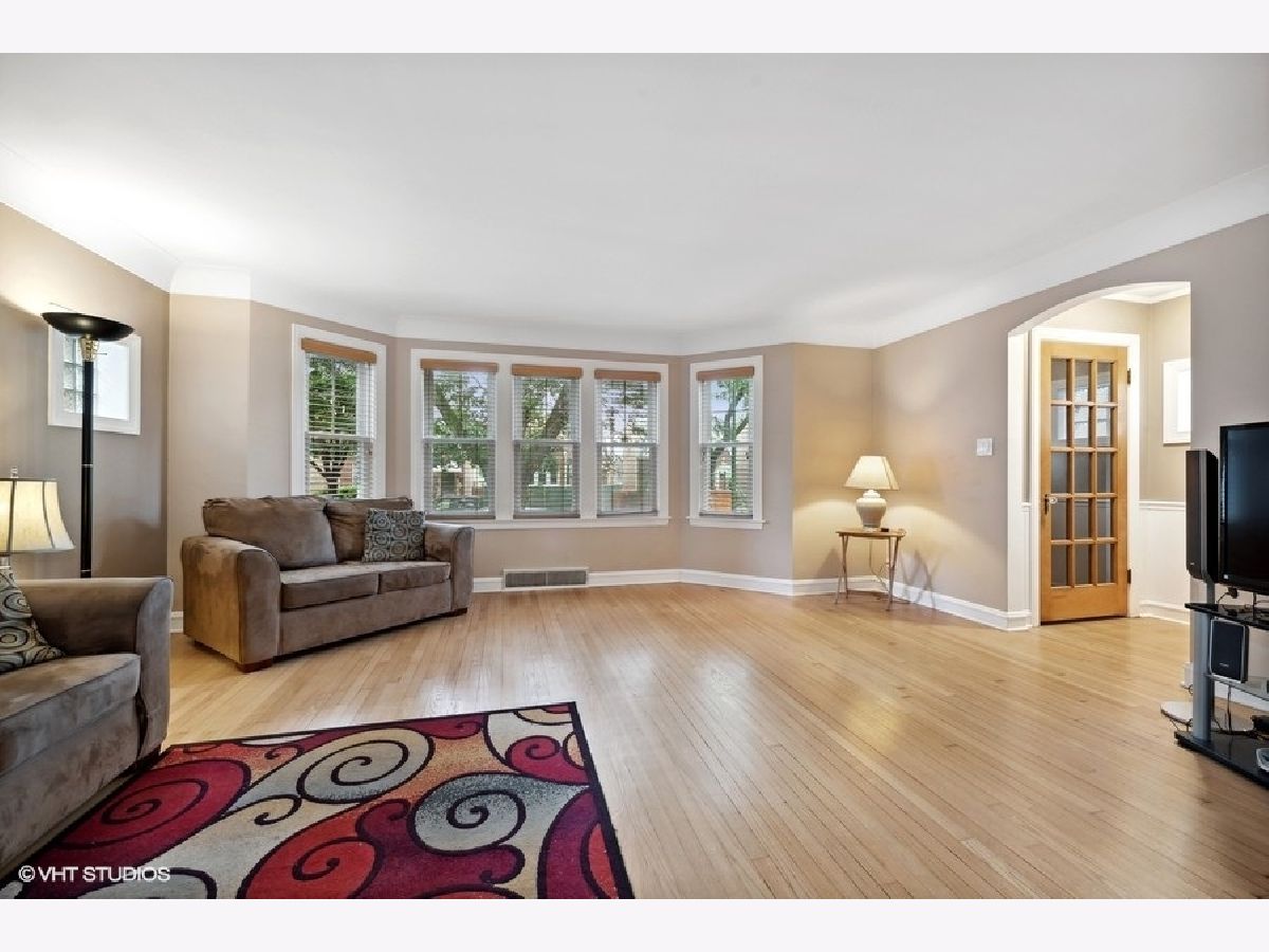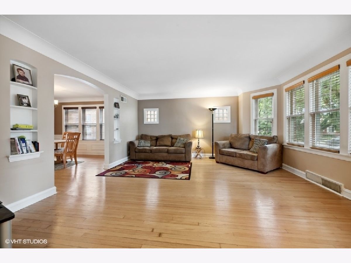 Wonderful tree line street you find this ready to move in English Tudor on a 34x125 oversized lot with 11 rooms, 5 real bedrms, 3 full baths. Looking for space WOW you found it, spacious living rm with a bay front, formal dining rm with wainscotting. plaster cove ceilings. Large open kitchen over looking great rm with fireplace and patio doors to a huge 25x12 deck. Kitchen has middle island, solid wood shanker style cabinets with crown molding, granite counters, corner desk area, under cabinet lighting. 1st floor large bedroom and full bath. 2nd fl has high ceiling ( full dormer) with 4 real bedrooms, nice size closets, full bath with a double entry doors(1 to a bedroom and 2nd door to hallway). 2nd fl has its own f/a heat and central air system. 1 of the bedroom closets has water hookup for a 2nd fl laundry area. Lower level open feel nicely rehab, with a new full bathroom and laundry area. thermo windows, zone f/a heat and ac 2 systems , electric has circuit breakers . fence yard with a brick 2 car garage plus extra space along garage for 3rd car. wonderful location close to Marianos, Forest Glen Metra train stop, Farnsworth elementary school, Forest Preserve, 90/94. Fantastic location to get around quickly.