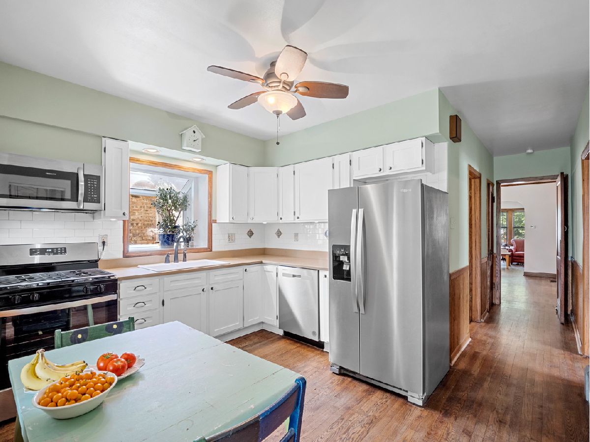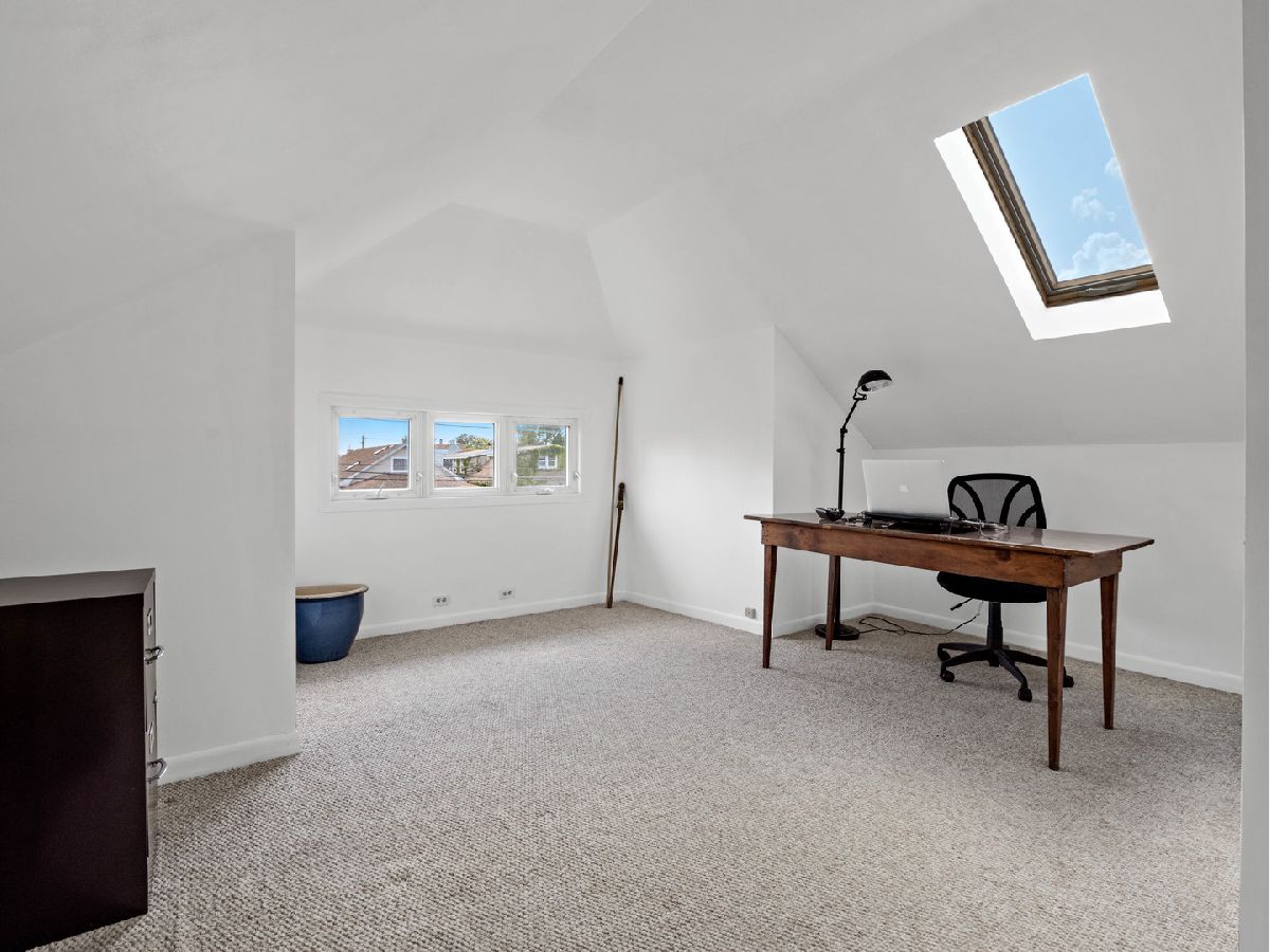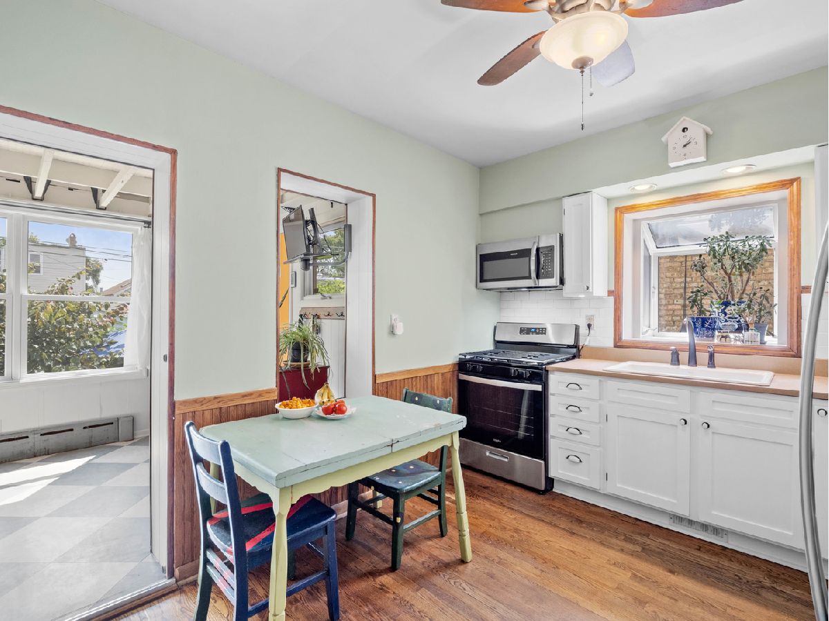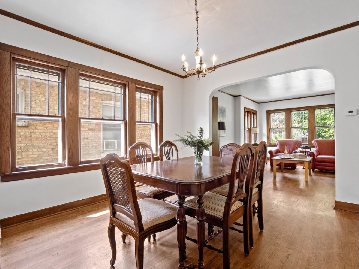 You'll discover an irresistible blend of vintage charm, generous room sizes and modern updates in this certified historic Chicago bungalow still sporting its original hardwood floors, trim and hardware. Nestled on an oversized lot in the heart of Portage Park, it delivers three levels of comfortable living space. On the main floor, the freshly painted and inviting living room and dining room welcome you with warmth and style. The eat-in kitchen is both modern and functional, featuring a walk-in pantry, white cabinetry, stainless appliances and a separate breakfast room or home office with views of the beautifully landscaped rear garden. Two large bedrooms and an updated bath complete this level. A huge primary bedroom with room for a king-size bed and a separate seating area dominates the second floor and is augmented by an additional bedroom and a modern, shared bath. The garden will be your private oasis, complete with a seating area, raised garden bed, and a shade tree. The partially finished lower level includes a rec room, half bath, workshop and laundry area. Zoned heating and air conditioning ensure year-round comfort. This beautiful bungalow offers the perfect mix of historic details and contemporary amenities, so don't miss the chance to make this Portage Park gem your new home! Close to lovely Portage Park, shops, restaurants and the vibrant Six Corners area.