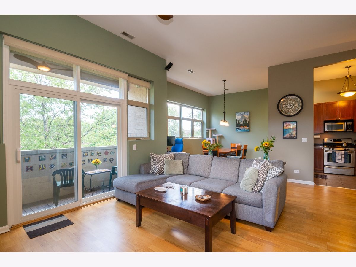 "This special Andersonville/Bomanville condo checks off all the boxes! Nestled on a quiet street, with lots of green space. Top sunny corner unit (one of the largest floor plans in bldg.) Super high ceilings and walls full of oversized windows. Open floor plan with large living room and dining room. Kitchen has granite, cherry cabinets, ss appliances and ample cabinets. Huge Primary bedroom with a large walk in/organized closet plus en suite bath with double sink, whirlpool tub and separate shower. Cozy Fireplace, loads of professionally organized closets throughout. Utility Room holds full size washer and dryer and more storage. Many additional updates such as ceiling fans, exhaust fans, light fixtures and tankless water heater. Unit also features Hardwood floors and Private balcony. Exterior Parking Spot 17 included in price. Storage closet located on same floor. Short walk to Andersonville, Metra and Marianos."