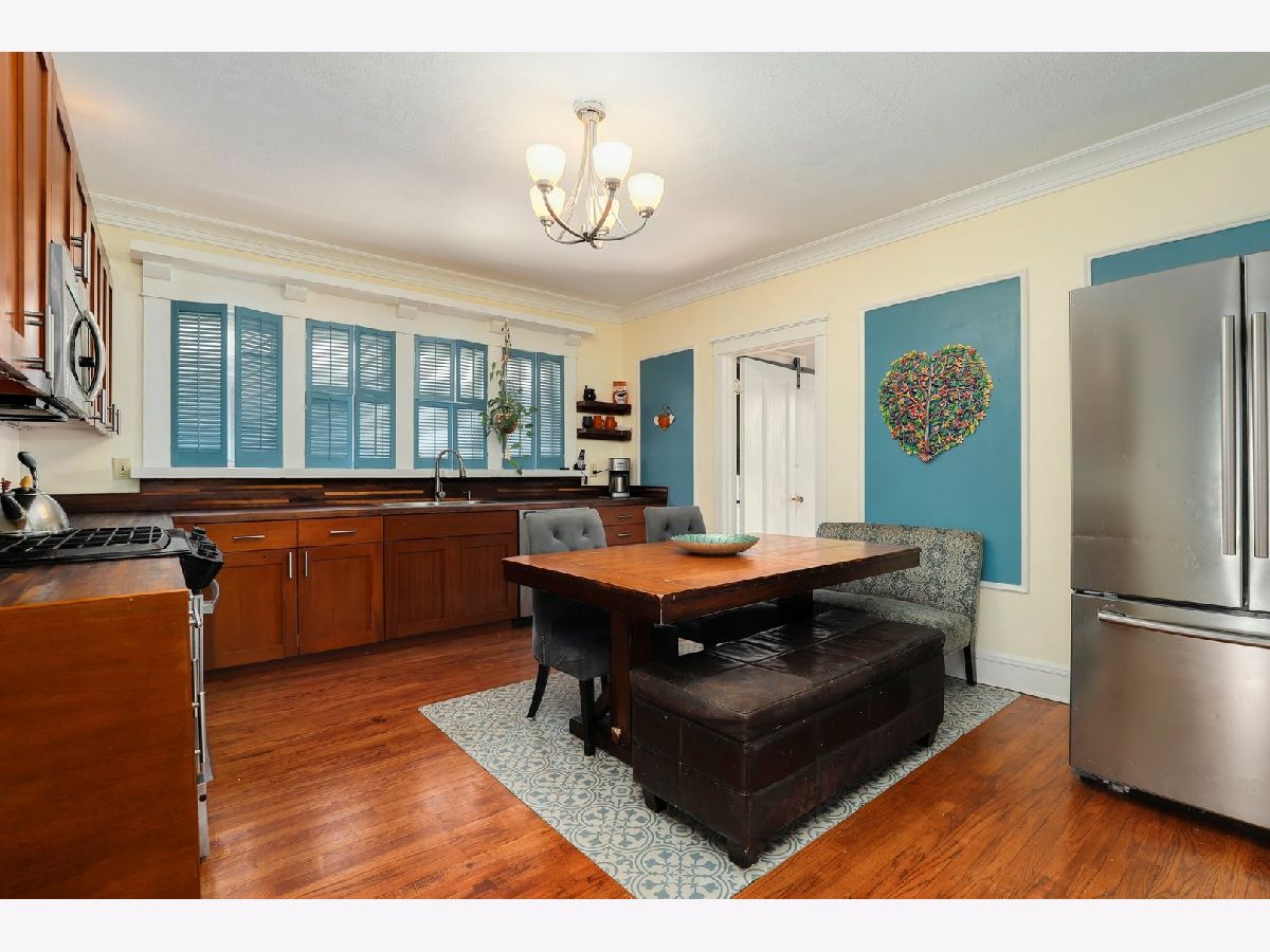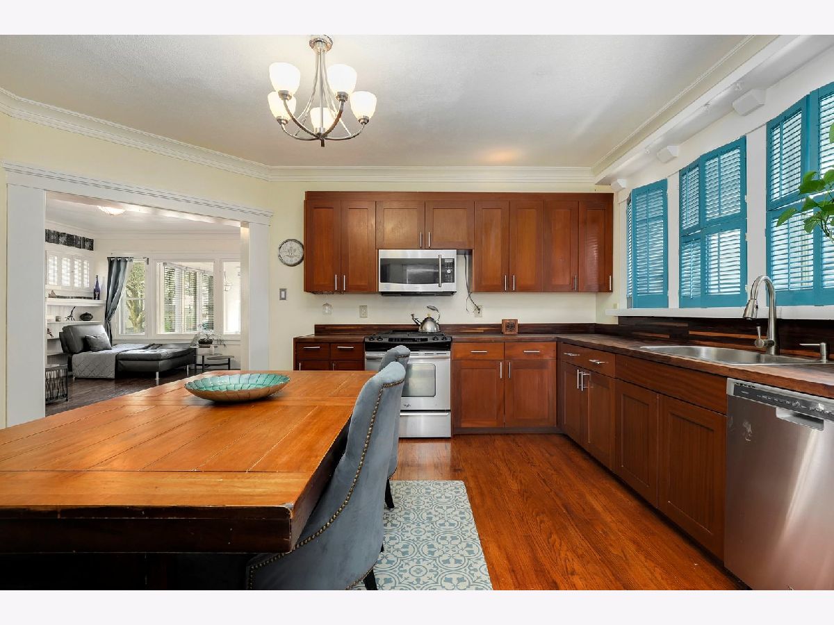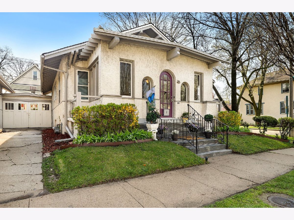 A perfect blend of contemporary style and original character makes this home shine. Sunny corner lot in the historic Oak Park district. Enclosed front porch welcomes your guests into a nice open floor plan with beautiful solid hardwood floors throughout. Completely updated eat-in kitchen is the focal point when you walk through the open and airy living room. Solid walnut countertops are the crowning jewel of the 40" custom mahogany cabinetry. Updated full bath has plank ceramic tile, wainscoting and an updated vanity. Convenient office space is adjacent to the kitchen and has access to the backyard. Full finished basement provides the second full bathroom, rec/family room and a wine cellar. Step outside and enjoy a gathering on the new brick patio and landscaped yard, complete with raised garden box and perennials. Walking distance to both the Blue/Green Lines for an easy commute into the city. Near many restaurants and shopping options. Easy access to I290.