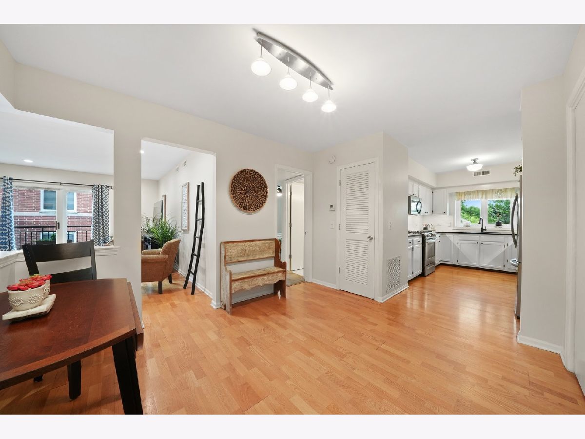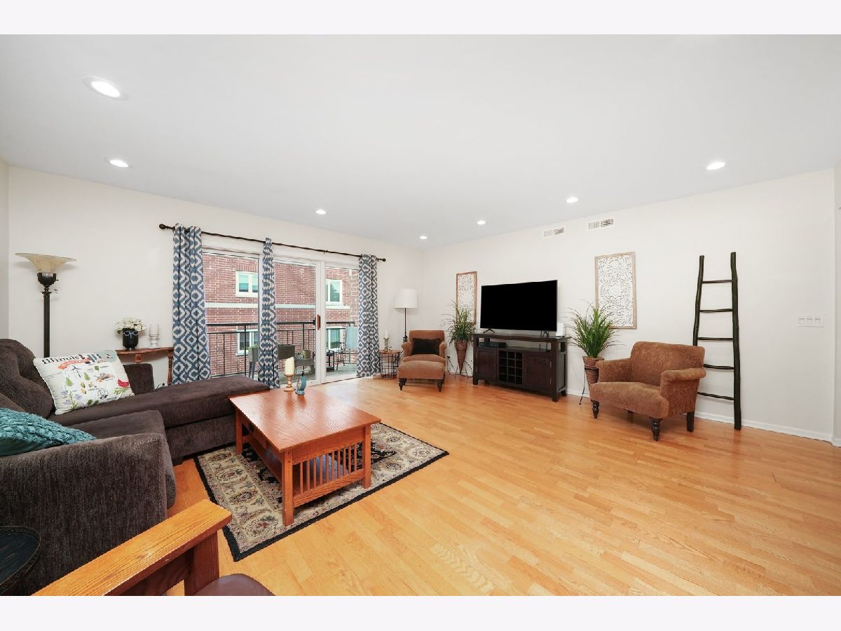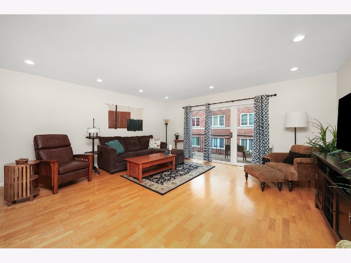 Welcome to River's Edge! This inviting top-floor corner condo offers 1,754 sq. ft. of comfortable living space with a smart split floor plan featuring 2 bedrooms and 2 full baths. The spacious main living area is filled with natural light and highlighted by hardwood floors, smooth ceilings with recessed lighting, and newer windows. The kitchen features quartz countertops, stainless steel appliances, and plenty of cabinet space-perfect for everyday meals or entertaining family and friends. Step outside to enjoy a large private balcony, or retreat to the primary suite with a custom Closets by Design closet and private bath with dual sinks and large vanity with new sinks, faucets and quartz countertops. The guest bath includes a beautiful vanity with quartz countertops, new sink and faucet and quality Toto toilet, while the separate laundry room offers a full-size side-by-side washer and dryer plus a utility sink. Additional conveniences include an indoor heated parking space, a private storage room, and a new roof installed in 2020. Assessments cover it all-heat, water, gas, parking, common insurance, TV/cable, internet, exterior maintenance, lawn care, scavenger, and snow removal, making life here both comfortable and convenient. Set in a friendly, well-maintained elevator building next to the scenic trails of LaBagh Woods, and close to the Nature Center, North Park University, and Northeastern Illinois University, this location also offers easy access to public transportation and I-90/94.