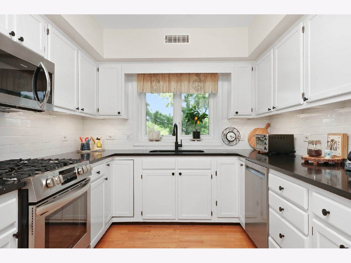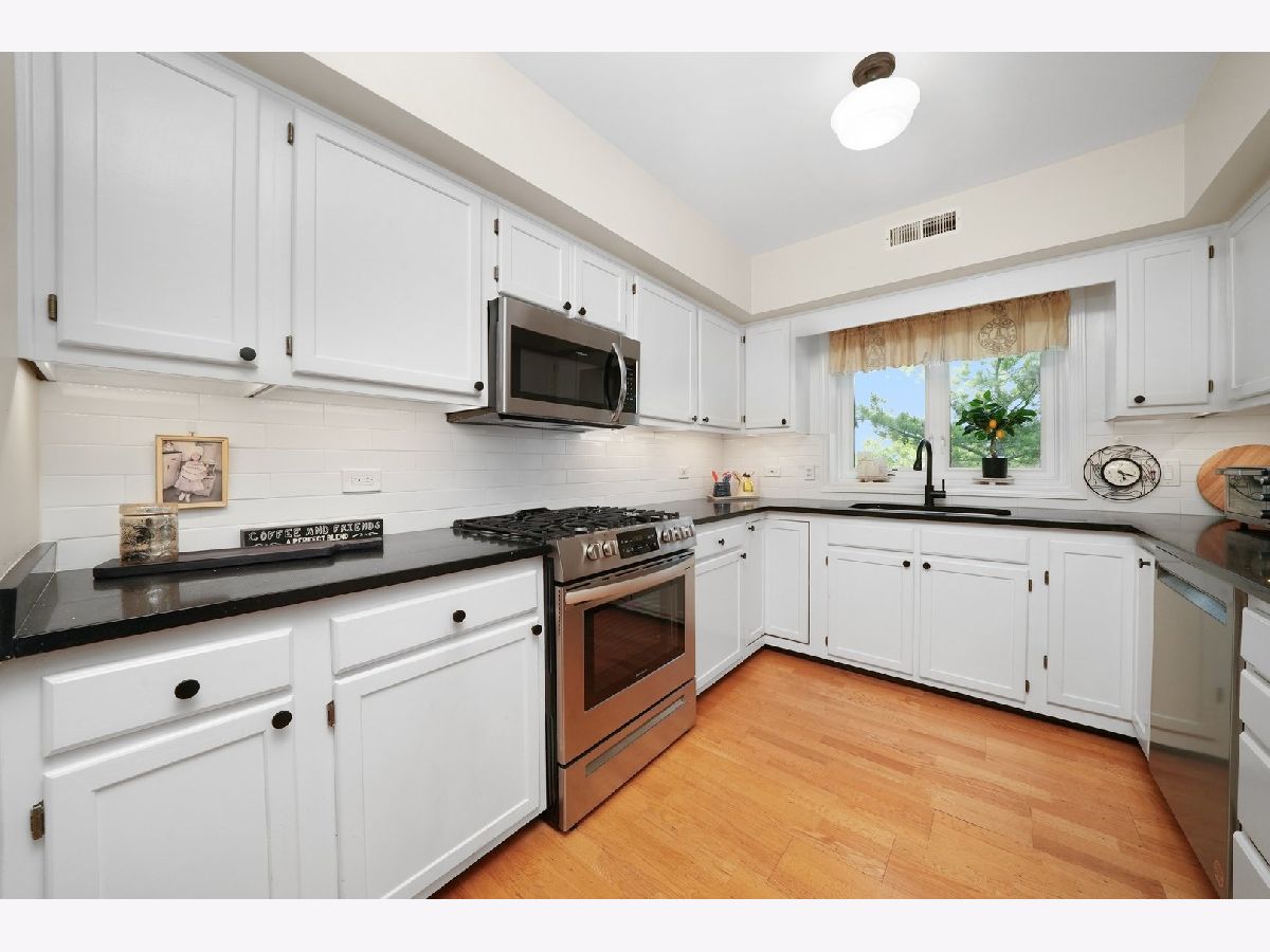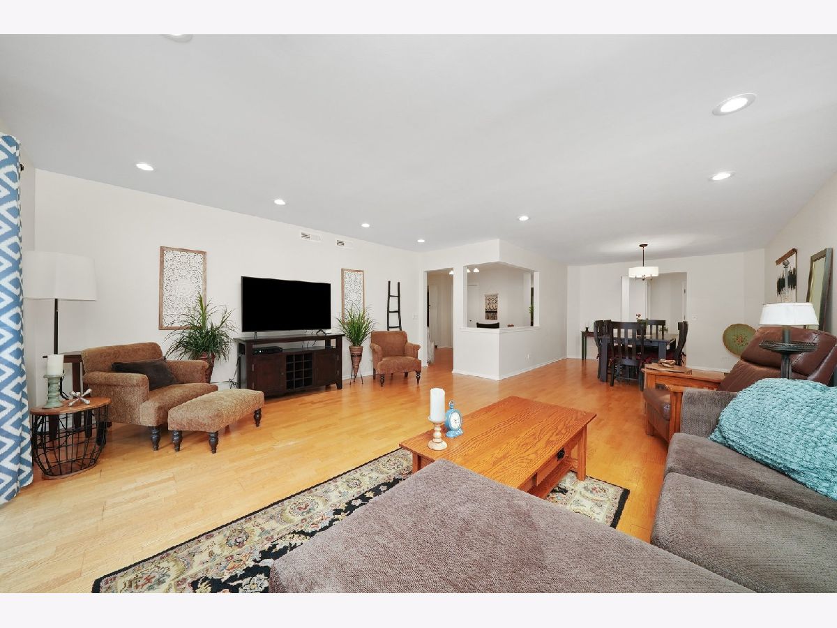 Welcome to River's Edge! This inviting top-floor corner condo offers 1,754 sq. ft. of comfortable living space with a smart split floor plan featuring 2 bedrooms and 2 full baths. The spacious main living area is filled with natural light and highlighted by hardwood floors, smooth ceilings with recessed lighting, and newer windows. The kitchen features quartz countertops, stainless steel appliances, and plenty of cabinet space-perfect for everyday meals or entertaining family and friends. Step outside to enjoy a large private balcony, or retreat to the primary suite with a custom Closets by Design closet and private bath with dual sinks and large vanity with new sinks, faucets and quartz countertops. The guest bath includes a beautiful vanity with quartz countertops, new sink and faucet and quality Toto toilet, while the separate laundry room offers a full-size side-by-side washer and dryer plus a utility sink. Additional conveniences include an indoor heated parking space, a private storage room, and a new roof installed in 2020. Assessments cover it all-heat, water, gas, parking, common insurance, TV/cable, internet, exterior maintenance, lawn care, scavenger, and snow removal, making life here both comfortable and convenient. Set in a friendly, well-maintained elevator building next to the scenic trails of LaBagh Woods, and close to the Nature Center, North Park University, and Northeastern Illinois University, this location also offers easy access to public transportation and I-90/94.