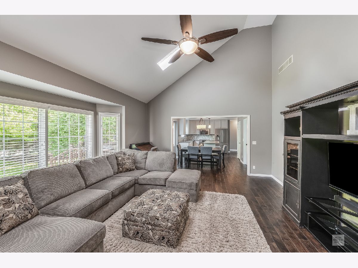 Welcome to this MAGNIFICENT High Meadow home that will mesmerize you with perfection, the moment you enter through the light filled and open foyer! ~ Newly installed HARDSCAPES PREMIUM Five Inch Plank HARDWOOD Flooring greets you with attributes of popular rustic and distressed grains, and portrays a neutral ambiance throughout the first floor that flows up to the second floor hallway. ~ SPECTACULAR Kitchen is updated with gleaming QUARTZ Counters, Tile Backsplash, MOEN Faucet, FRIGIDAIRE Professional Series (Fingerprint Free) SS Appliances, in addition to a BOSCH 5 Burner Convection Stove with warming oven, and Microwave with built in convection oven! All white cabinetry is professionally upgraded, along with new hardware, and are a dream with SOFT CLOSE FEATURE! Upper cabinets have been extended to 42 inch height to allow for additional storage, along with a closet pantry. ~ Expansive and inviting Family Room welcomes gatherings with a soaring brick fireplace, skylights, two story vaulted ceiling, and offers views to the MARVELOUS back yard. Updated Oil Rubbed Bronze Door handles and FABULOUS Transitional Light Fixtures are prominent features in this home. ~ FIRST FLOOR FULL BATH has new Ceramic Flooring Tile, PFISTER Vessel Faucet, White Cabinetry with QUARTZ Counter, an ELEGANT Chandelier, and is next to the 5th Bedroom/Office for in law arrangement. ~ Primary Bedroom has Tray Ceiling, Hardwood Flooring including in w-i-c ! The Ensuite with new Cabinetry, Mirrors, MOEN Faucets, and CARRARA MARBLE Counter encompasses a serene experience, as you relax in the whirlpool tub! ~ FANTASTIC Finished Basement has Half Bath, Rec Area, Kitchenette/Bar with slate flooring, granite bar tile, two refrigerators and dishwasher! ~ The owners have METICULOUSLY maintained this IMPECCABLE Home! Freshly painted grey tones are in the entire home and accented with crisp white trim and doors. Located on an INTERIOR street that has east/west exposure and newer concrete driveway! ~ Spacious and Tranquil Backyard is perfect for Outdoor Entertaining, Bird Watching enthusiasts, and offers a tremendous Deck, along with professional Landscaping, Paver Walkway, and Irrigation system! ~ This home also has a highly desired TANKLESS NORITZ Hot Water Heater, NEST Thermostat (2018), Sump Pump with battery backup (2018), RING Doorbell (2020), newer Furnace (2016), A/C (2016), Roof (2012), and Kitchen Disposal (2018). THREE CAR Garage has updated CRAFTSMAN door openers (2015)! Nearby Rt. 59, I-55, Riverview Farmstead Forest Preserve, South Pointe park, and various shopping centers. ~ Highly acclaimed Indian Prairie School District 204 - Neuqua Valley HS, Crone Middle School, and Graham Elementary is within walking distance! This Home is the PERFECT ONE you've been waiting for!