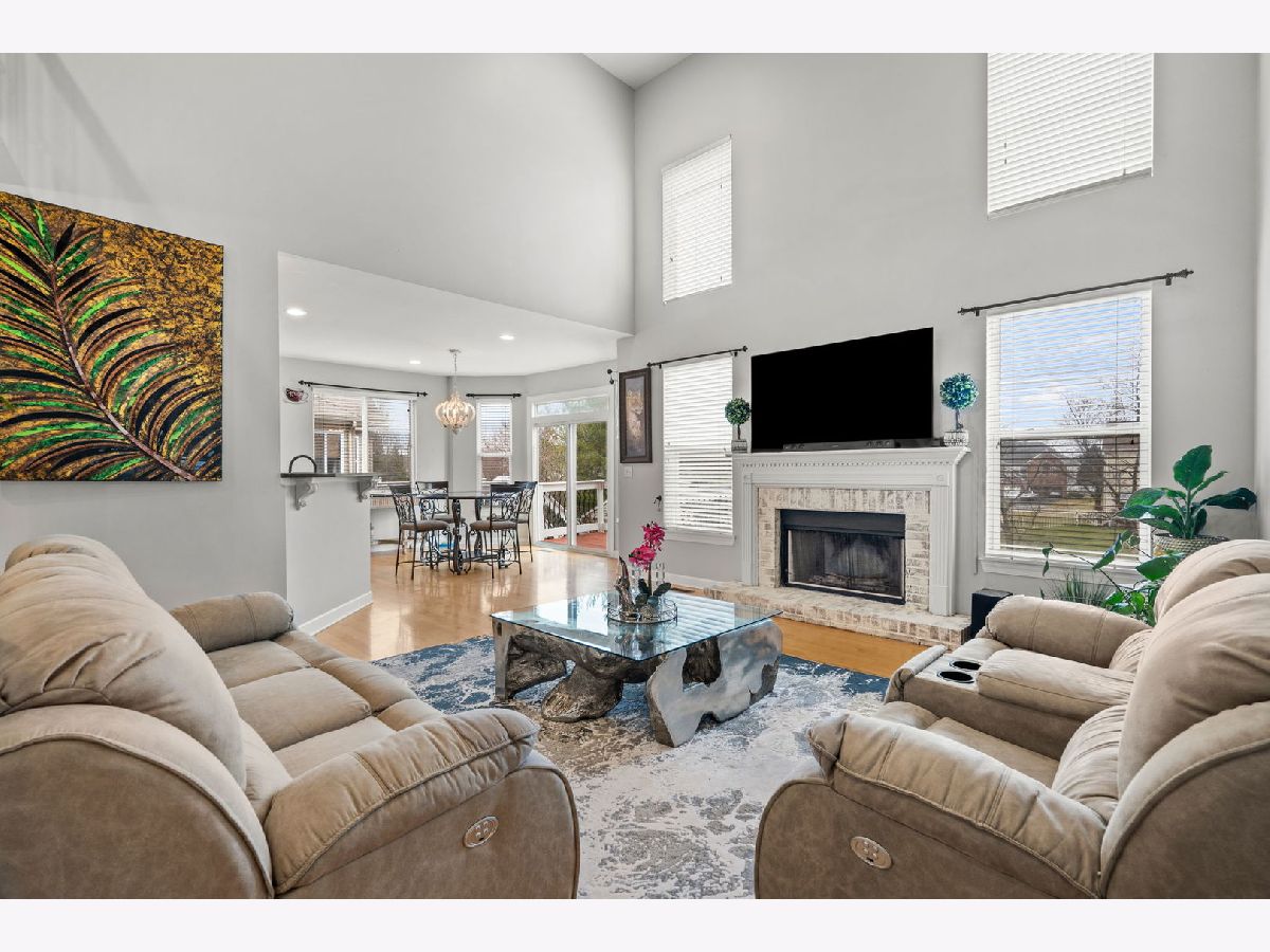 Open floor plan with elegant design and solid maple floors. The 2-story living room and large windows create a grand atmosphere. The kitchen boasts upgraded stainless steel appliances, Quartz countertops, and a new travertine backsplash. A cozy fireplace enhances the family room, while the first floor offers a versatile office/bedroom option. Upstairs, the master suite and three additional bedrooms shine with tons of natural light. The walkout basement is designed for entertainment, with a family room, custom bar, and exercise area. Outdoors, you'll find an inviting space with a kitchenette, built-in grill, and fireplace. A 3-car garage, new central air, and convenient location near I-88 and amenities make this home both practical and luxurious-a truly exceptional living experience.
